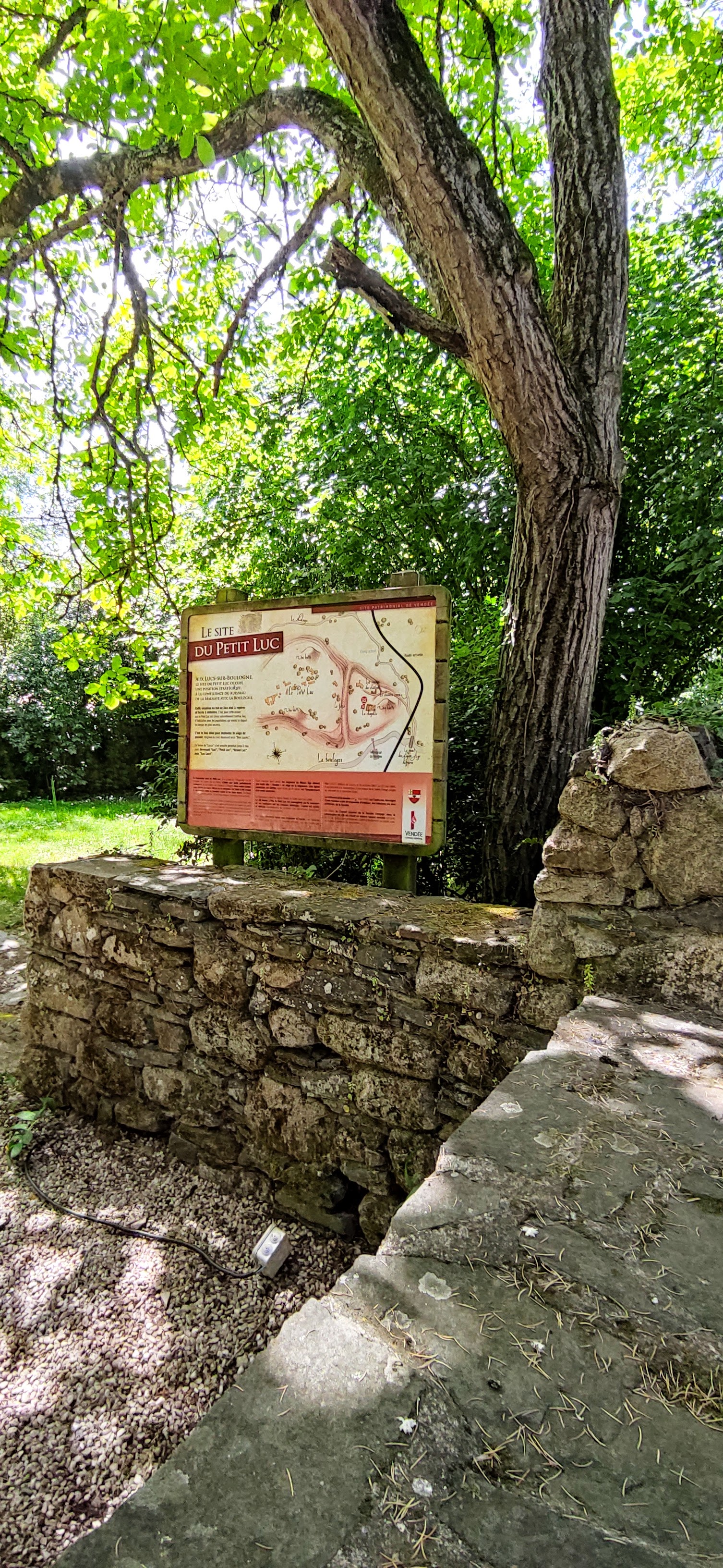 Colonne de Notre Dame du Petit Luc, qui se situe à côté de la Chapelle du Petit Luc. Celle-ci a été édifiée en lieu et place de l'église Notre-Dame du Petit Luc, détruite par les colonnes infernales lors du massacre du 28 février 1794, durant les Guerres de Vendée. Des plaques commémoratives listent les noms des 564 victimes à l'intérieur de la chapelle. Ce qu'on sait moins, c'est qu'il y a aussi à coté les ruines d'un château médiévale (aussi des mottes féodales), juste un pan de mur entouré de clôtures, qui continue de tomber en ruines dans l'indifférence totale.