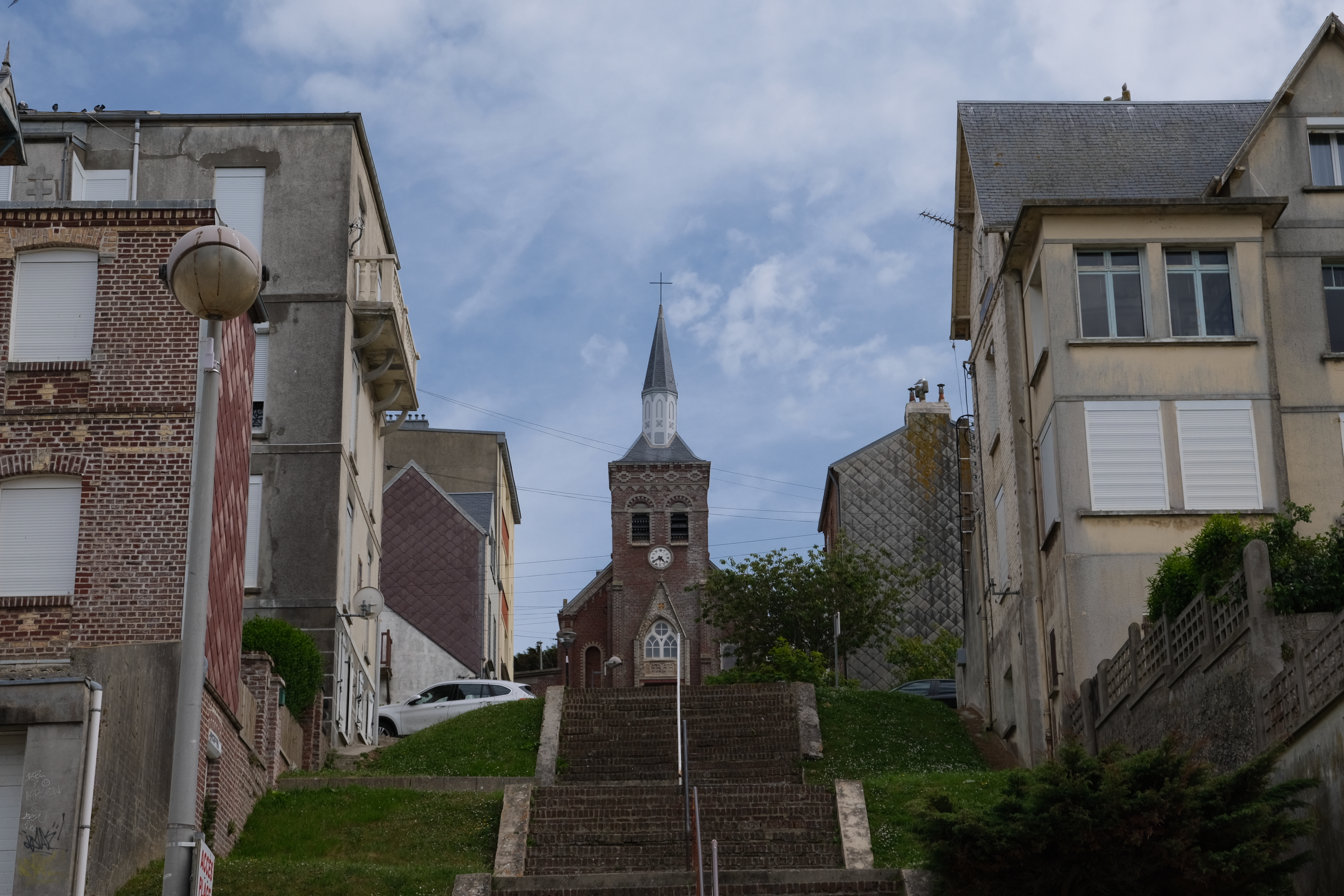 Petite Chapelle Notre Dame d'Onival à voir. Achevée au début du XXe siècle, cette église est construite avec les briques rouges typiques de la région. La chapelle a été construite en 1886 à l'occasion de la fondation de la station balnéaire d'Onival-les-Bains à la fin du XIXème siècle par un homme d'affaires entreprenant. Considérée par les chroniqueurs laïques comme une ville d'opéra-comique, l'église Saint-Pierre d'Ault était trop éloignée. L'idée de construire notre propre chapelle est née. La construction de la chapelle débuta en 1897 grâce à des dons privés. Depuis le perron, il offre un aperçu du quartier et une vue imprenable sur la plage, la baie et l'arrière-pays d'Onival. Lorsque je visite la station balnéaire, la visite de cette chapelle en fait toujours partie.