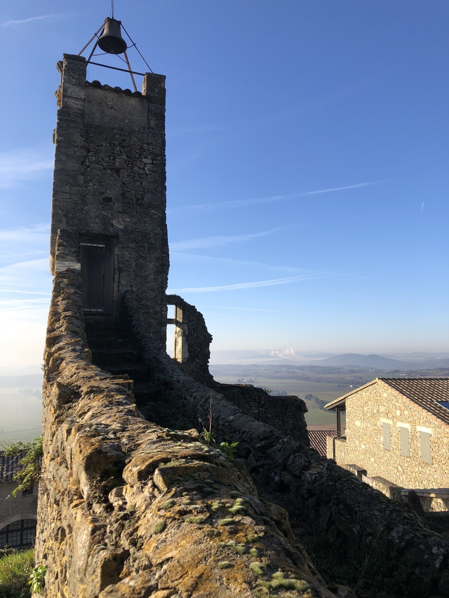 superbe vue, petit village accroché sur sa colline et dominant la plaine. Un endroit à découvrir.