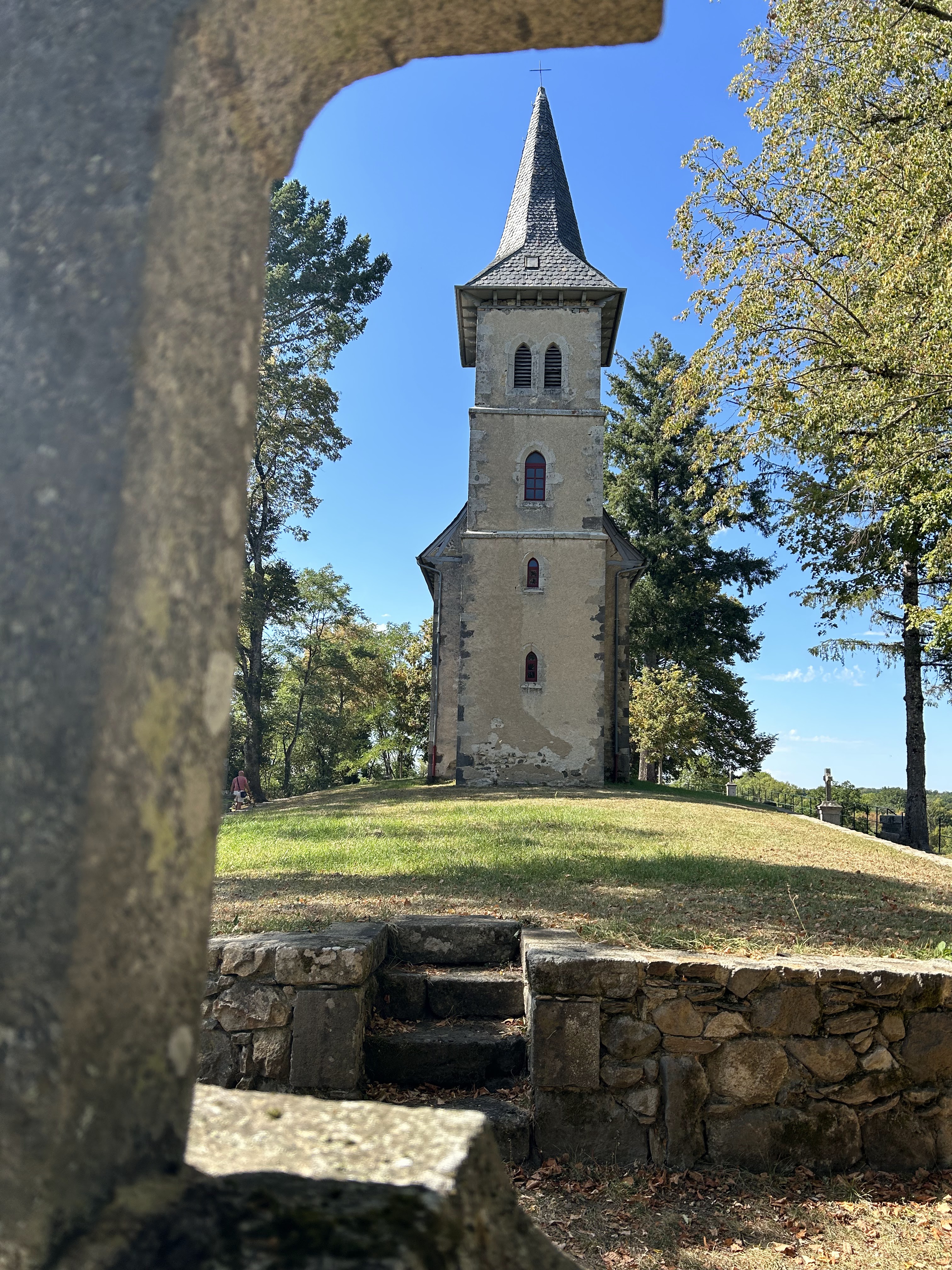 N’hésitez pas à soulever le loqueteau de la grille pour emprunter l’allée chemin de croix jusqu’à la petite chapelle. Un point de vue sur tout le Massif Central vous attends, avec une table d’orientation. L’endroit est magnifique, magique. Hélas pour moi, la porte de La Chapelle était close.