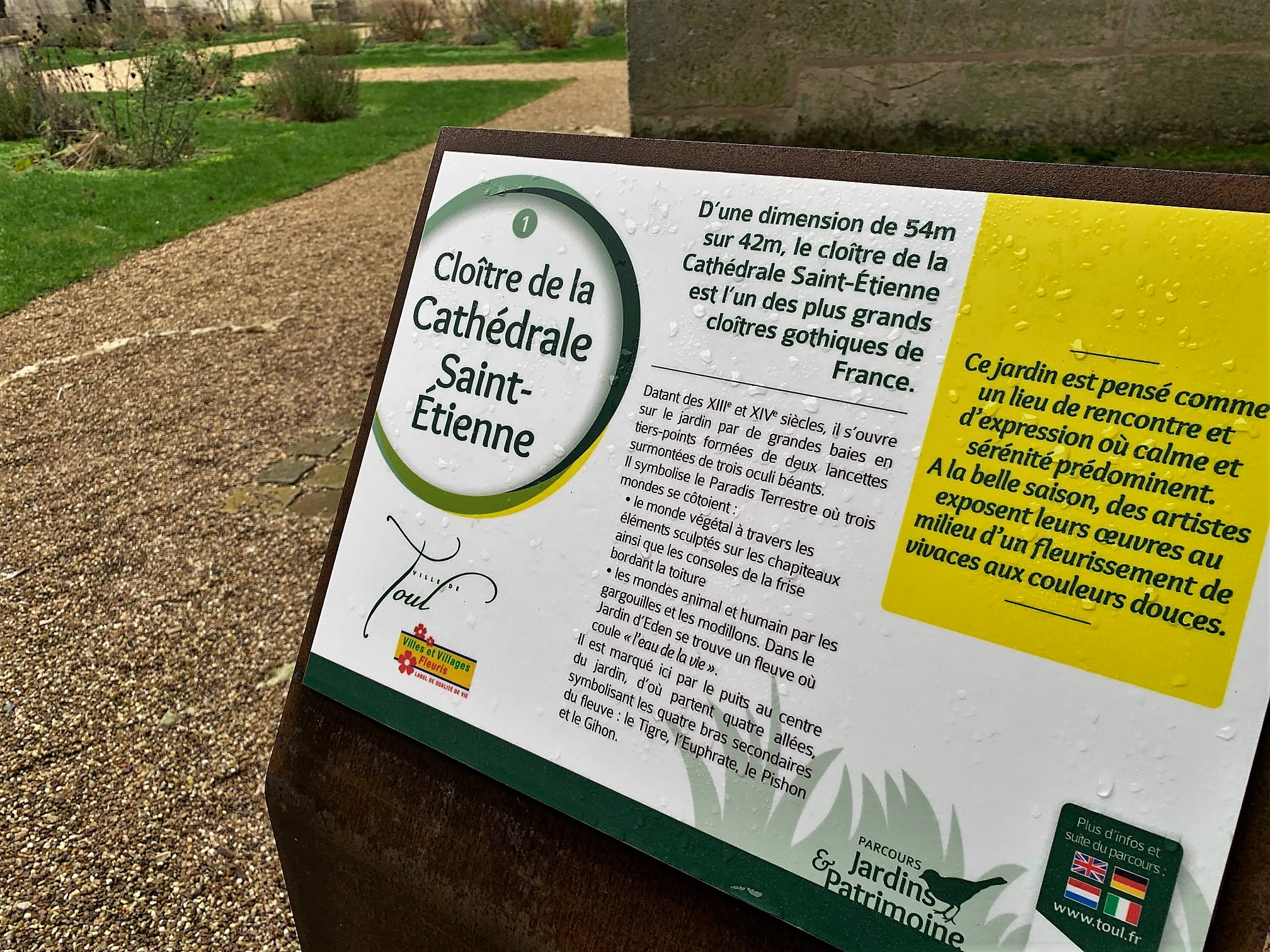 C'est l'endroit le plus accueillant de la cathédrale, les collatéraux de cette dernière sont équipés de filets pour éviter que des morceaux de plafond tombent sur les visiteurs. La façade flamboyante en impose, le reste de l'édifice, s'il mérite d'importantes restaurations, montre, à l'évidence, un manque cruel d'entretien. Le cloître gothique est de dimensions exceptionnelles et apparaît en bon état. Vous pouvez y acheter quelques flacons de l'AOC côtes de Toul pour participer à la restauration du mobilier liturgique de la cathédrale.