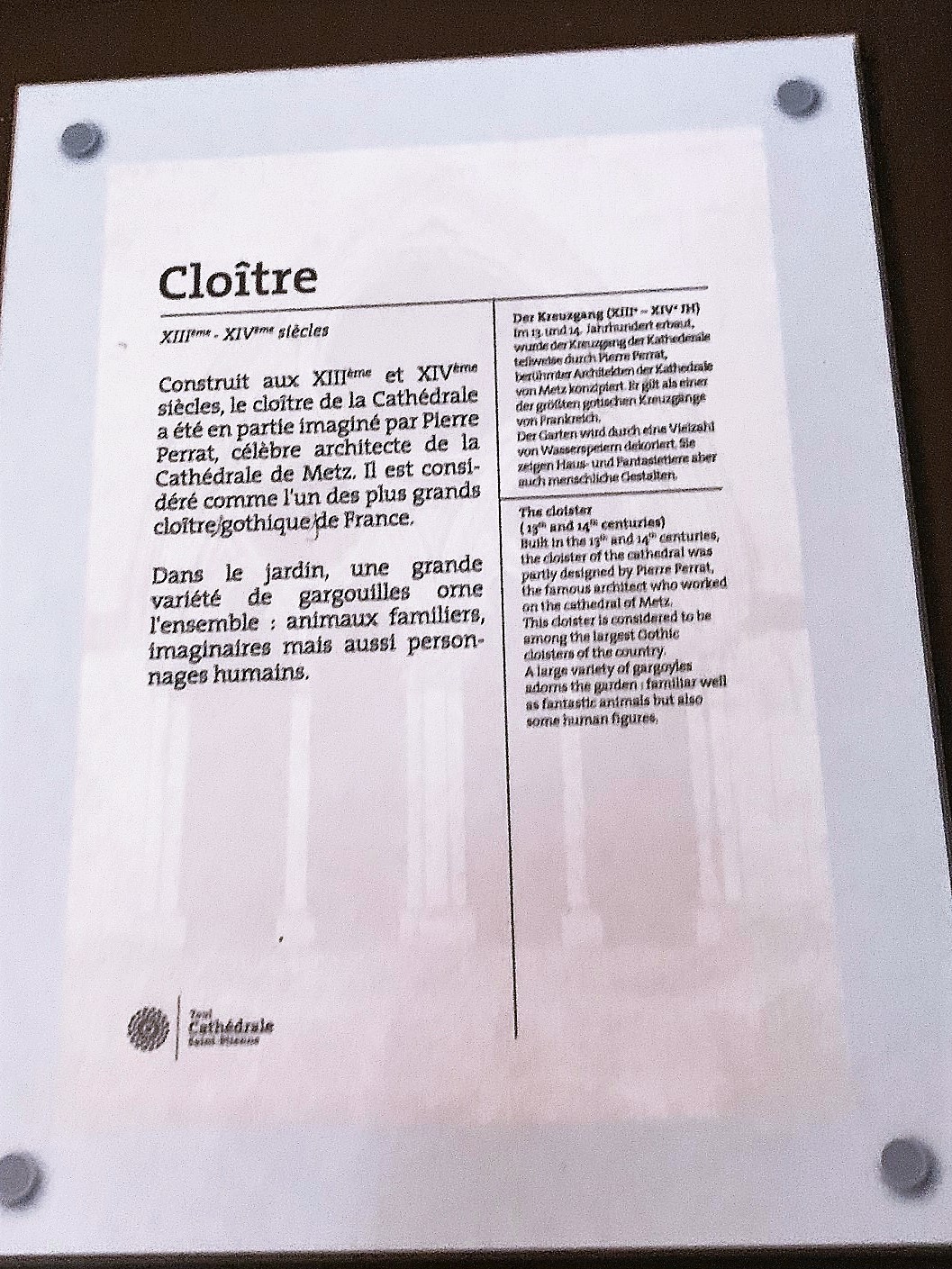 Endroit très paisible en sortant de la cathédrale. On y fait le tour du jardin et on peut rentrer dans le petit jardin découvrir les plantes. Cet été, il y a dans ce cloître une belle expo sur les 800 ans de la cathédrale.