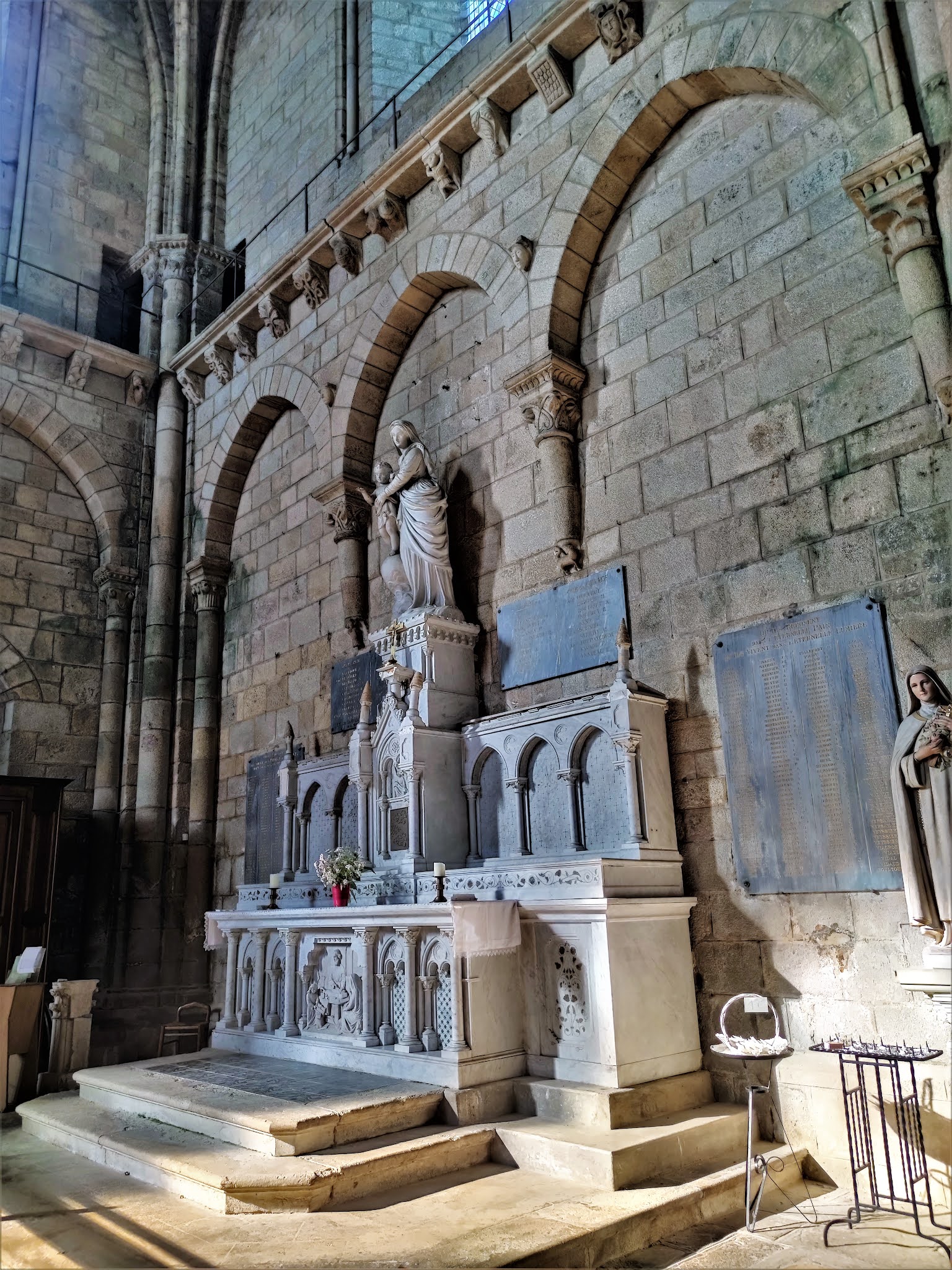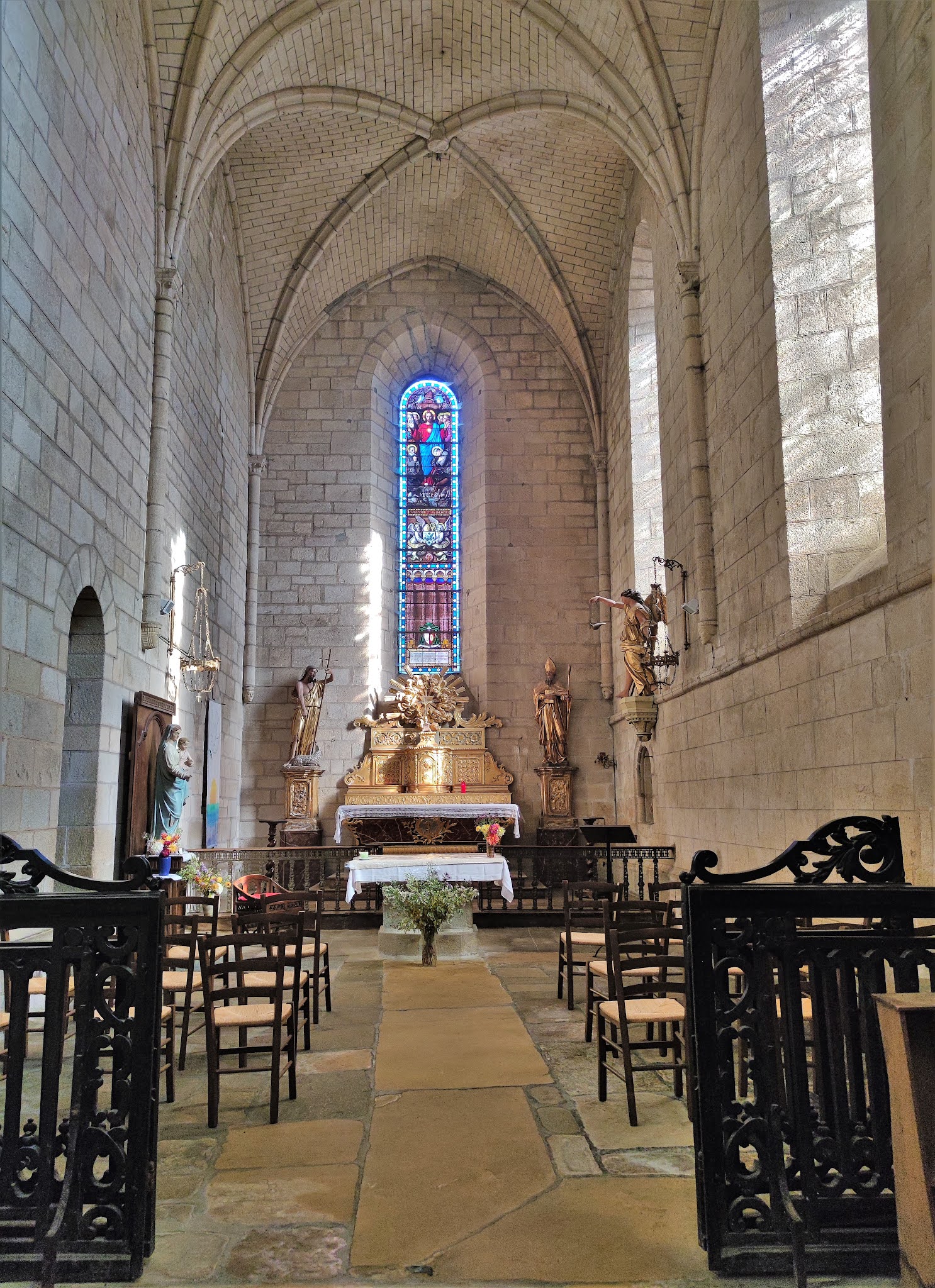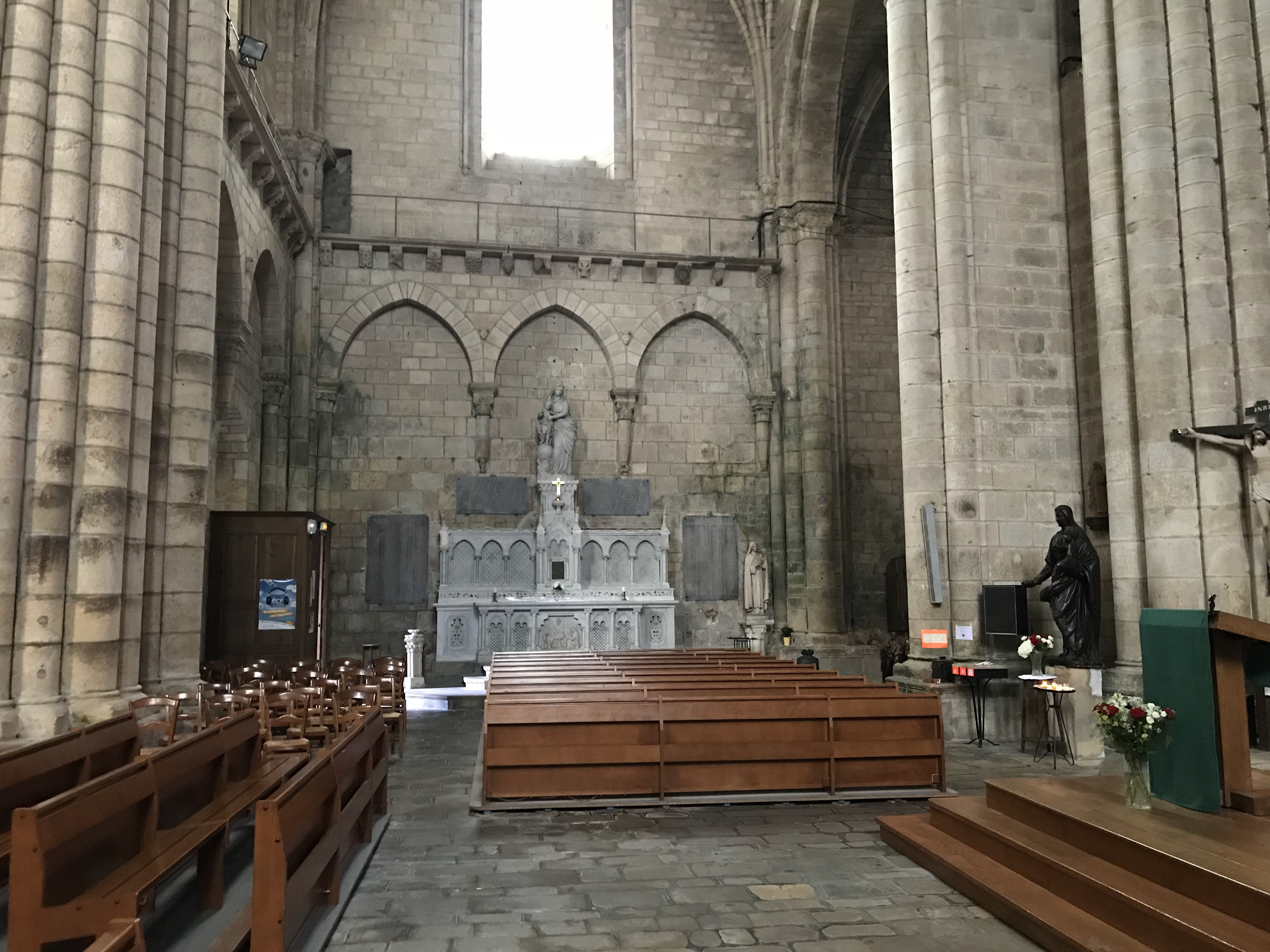 Il y a près d'un an que j y suis allée accompagnant de la famille qui voulait la visiter. Une belle architecture, de beaux vitraux, il y avait de magnifiques statues retirées à cause des vols et dégradations