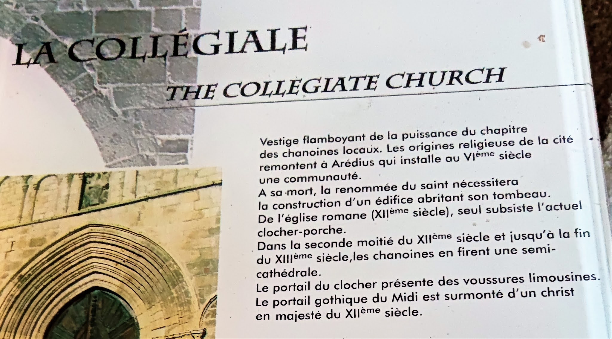 Très jolie collégiale en cours de rénovation à visiter pour y voir le buste d Aredius et la cité médiévale autour