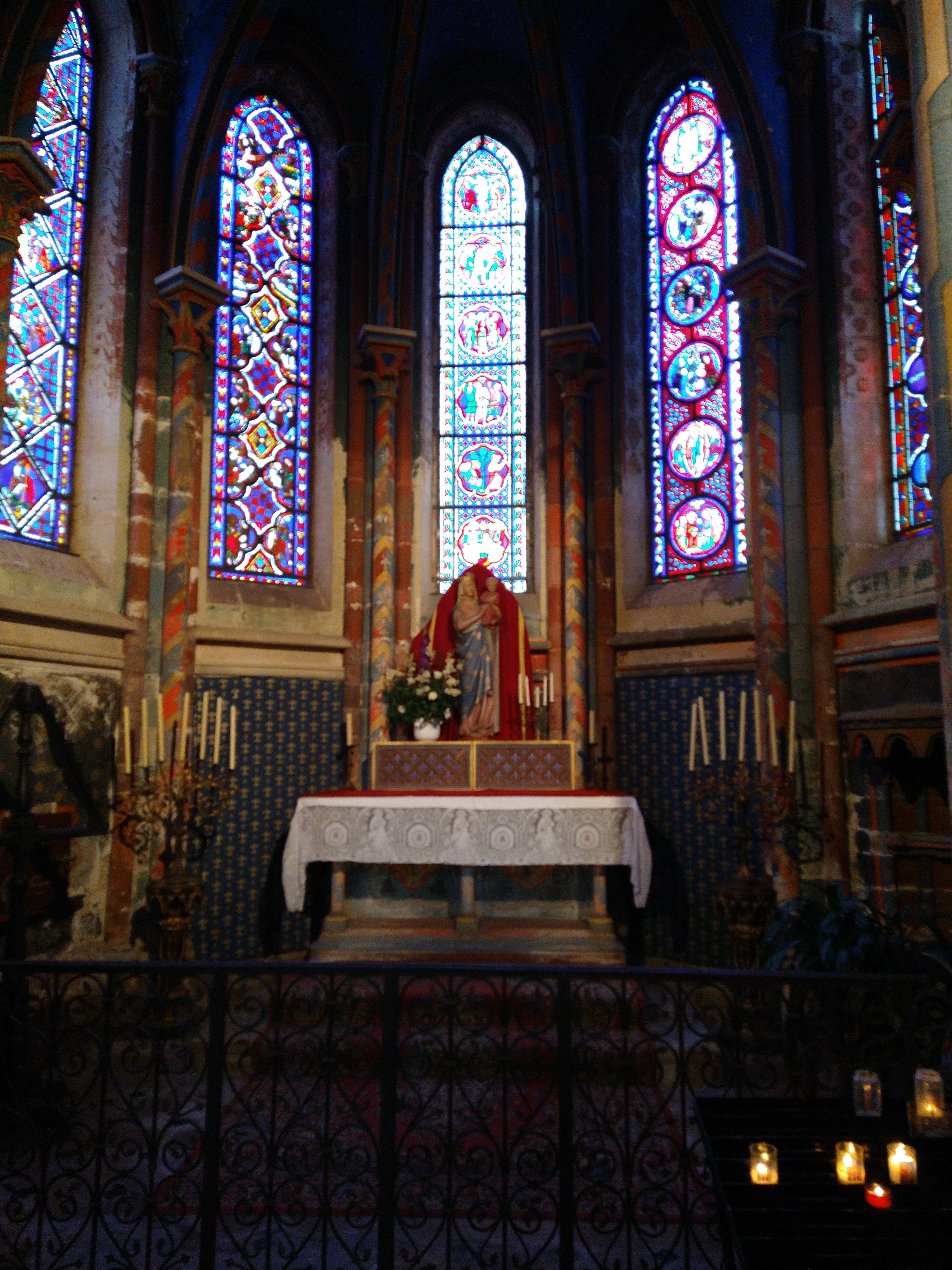 Magnifique, les vitraux via le soleil reflètent au sol dans la collégiale, effet surprenant.