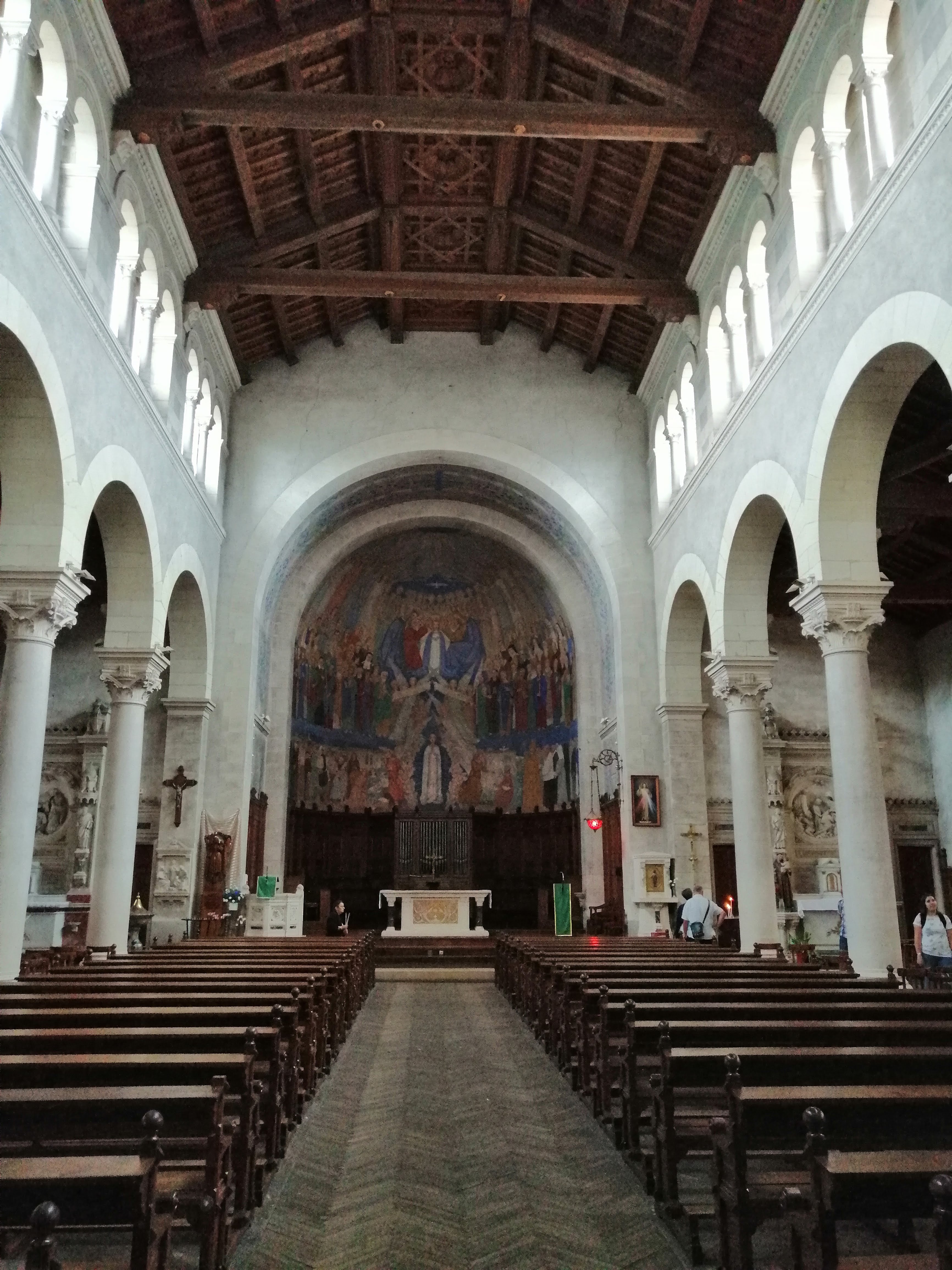 Très belle église d'un style architectural un peu différent de ce qu'on a l'habitude de voir. Il y a aussi une jolie fresque à l'intérieur qui représente des anciens habitants. Sinon l'entourage de l'église est mal non plus avec de beaux cyprès et une œuvre d'art plus bas. Pour prier l'endroit est très calme, il y a des églises où ce n'est plus le cas malheureusement. Bref un beau monument à apprécier dans toute sa splendeur.