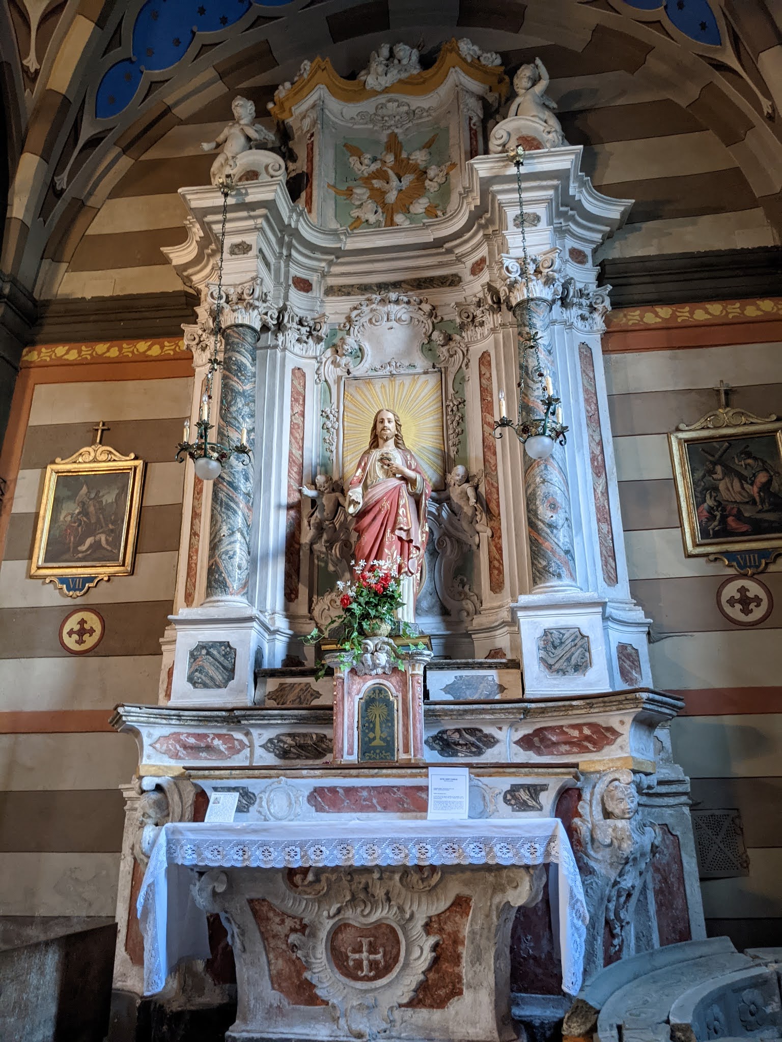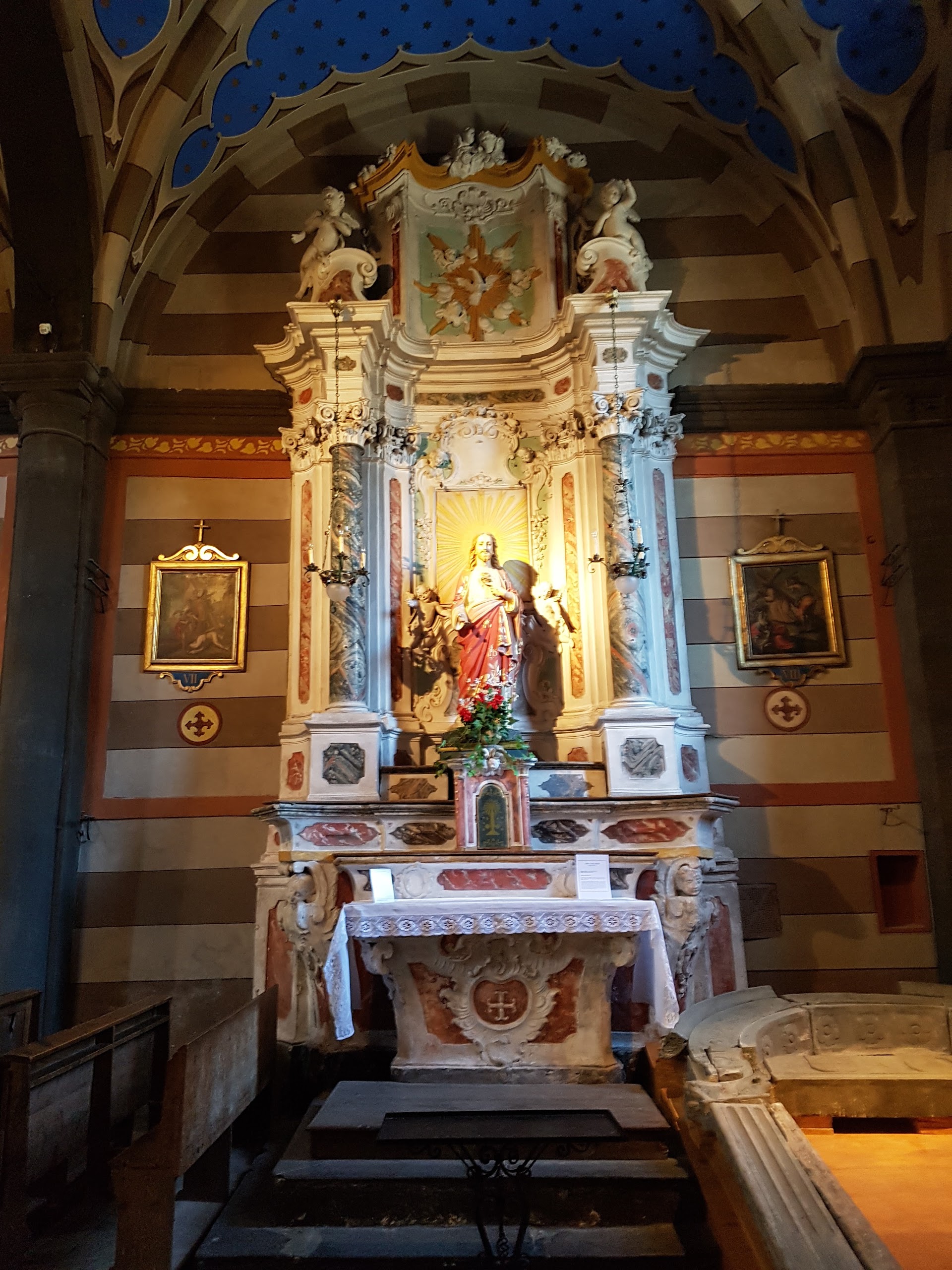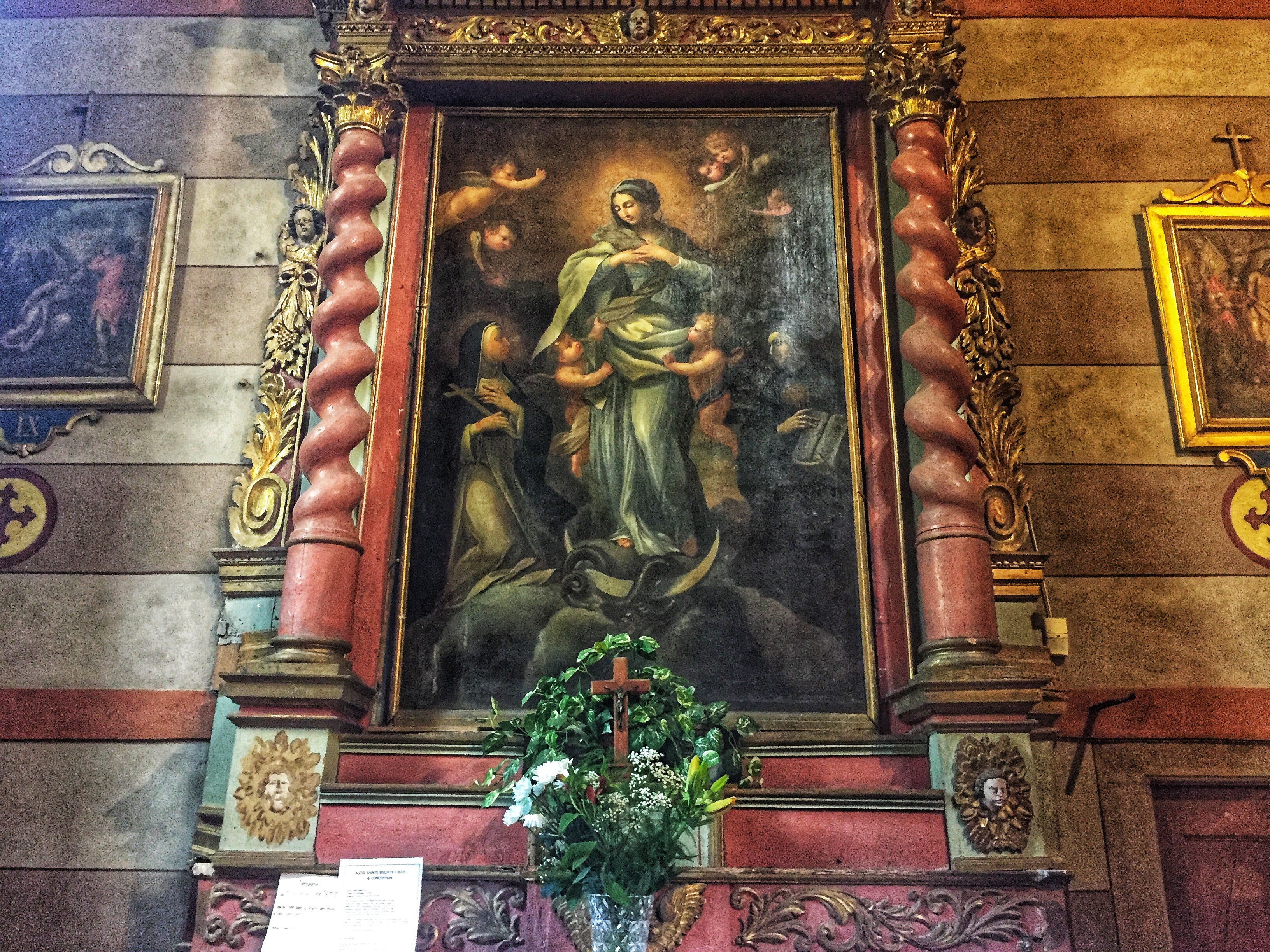 Magnifique église de montagne, ornée de majestueux tableaux.