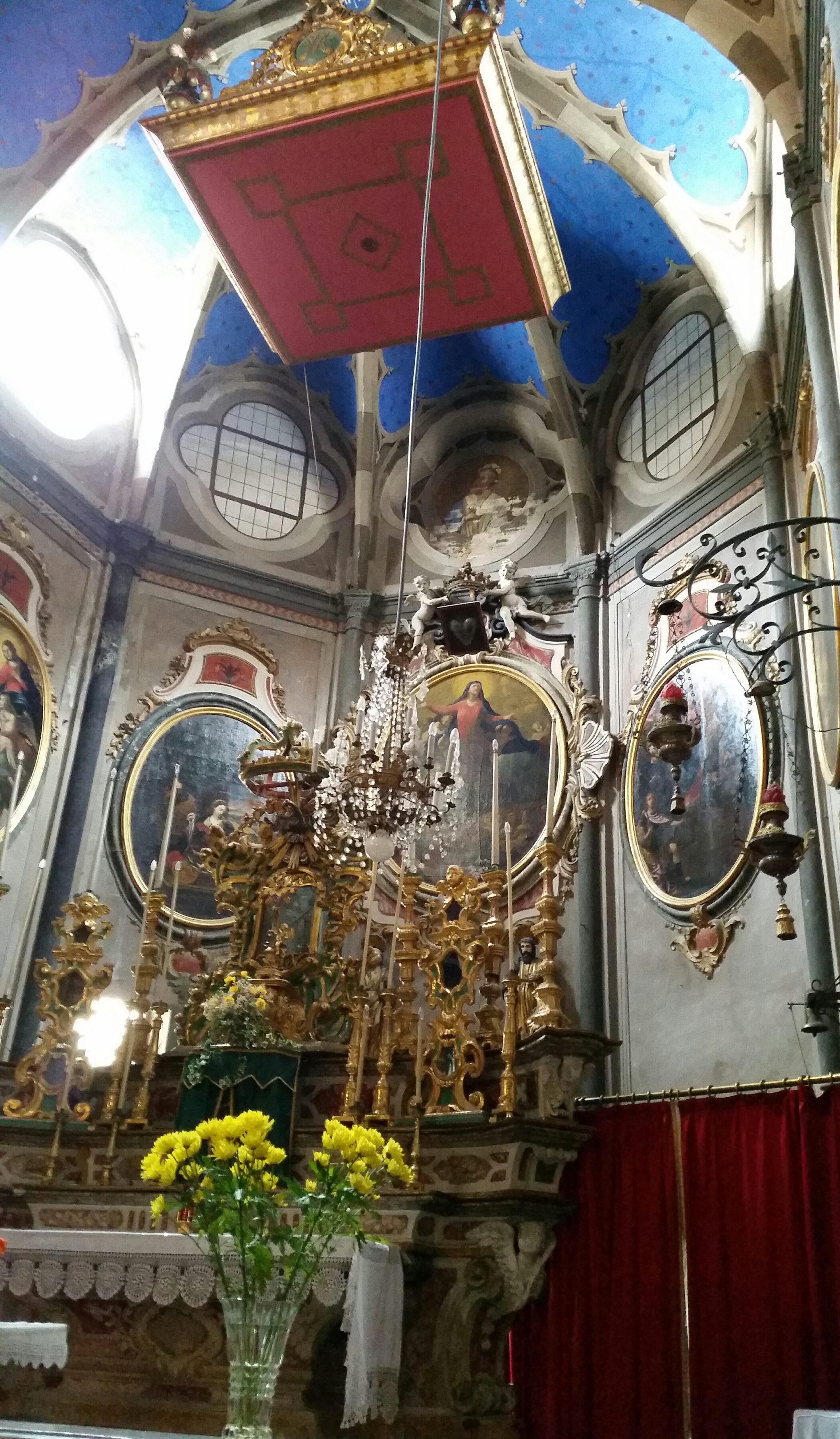 Vraiment une superbe église (de l'intérieur) avec beaucoup d'autels. À voir.