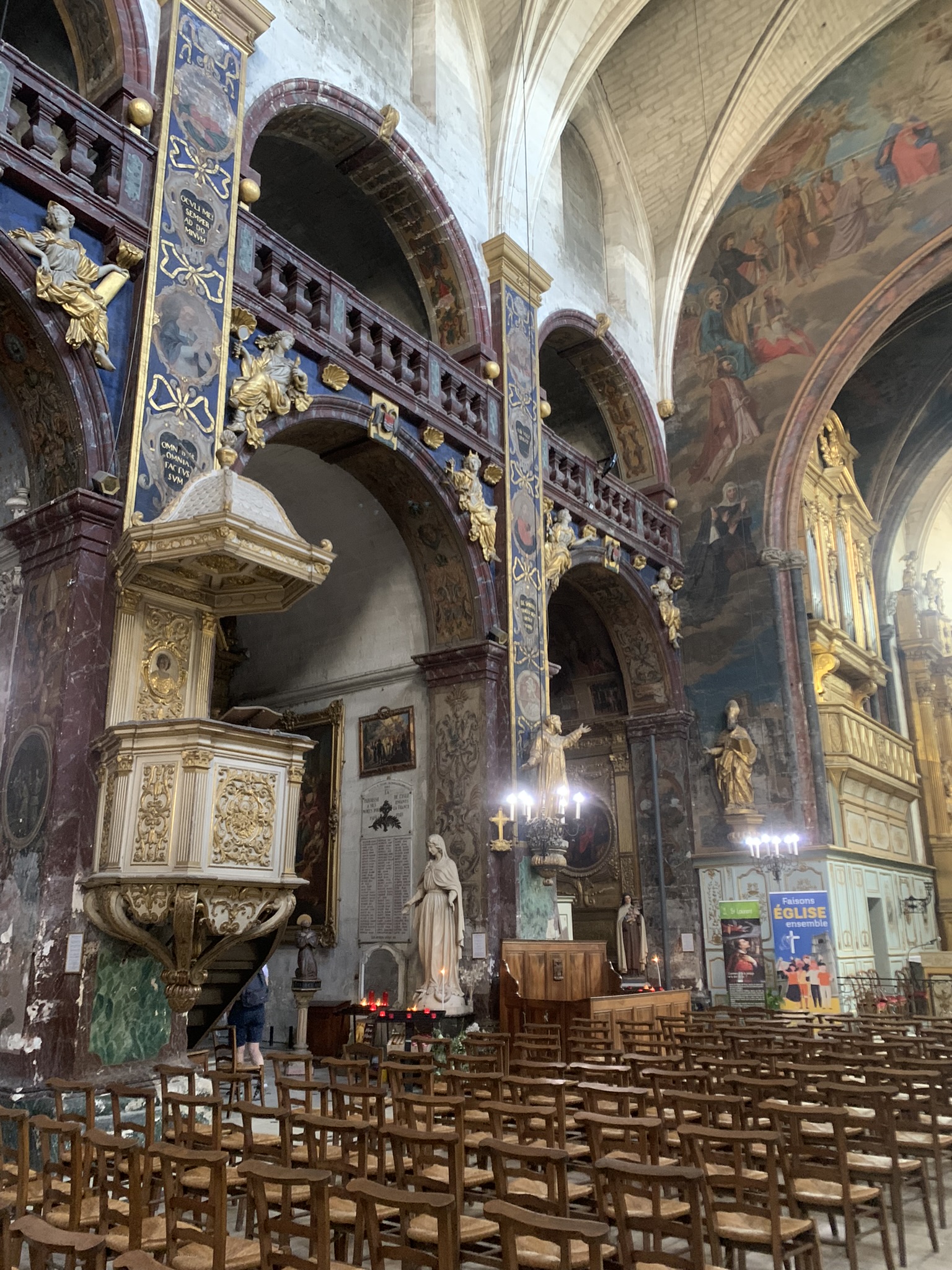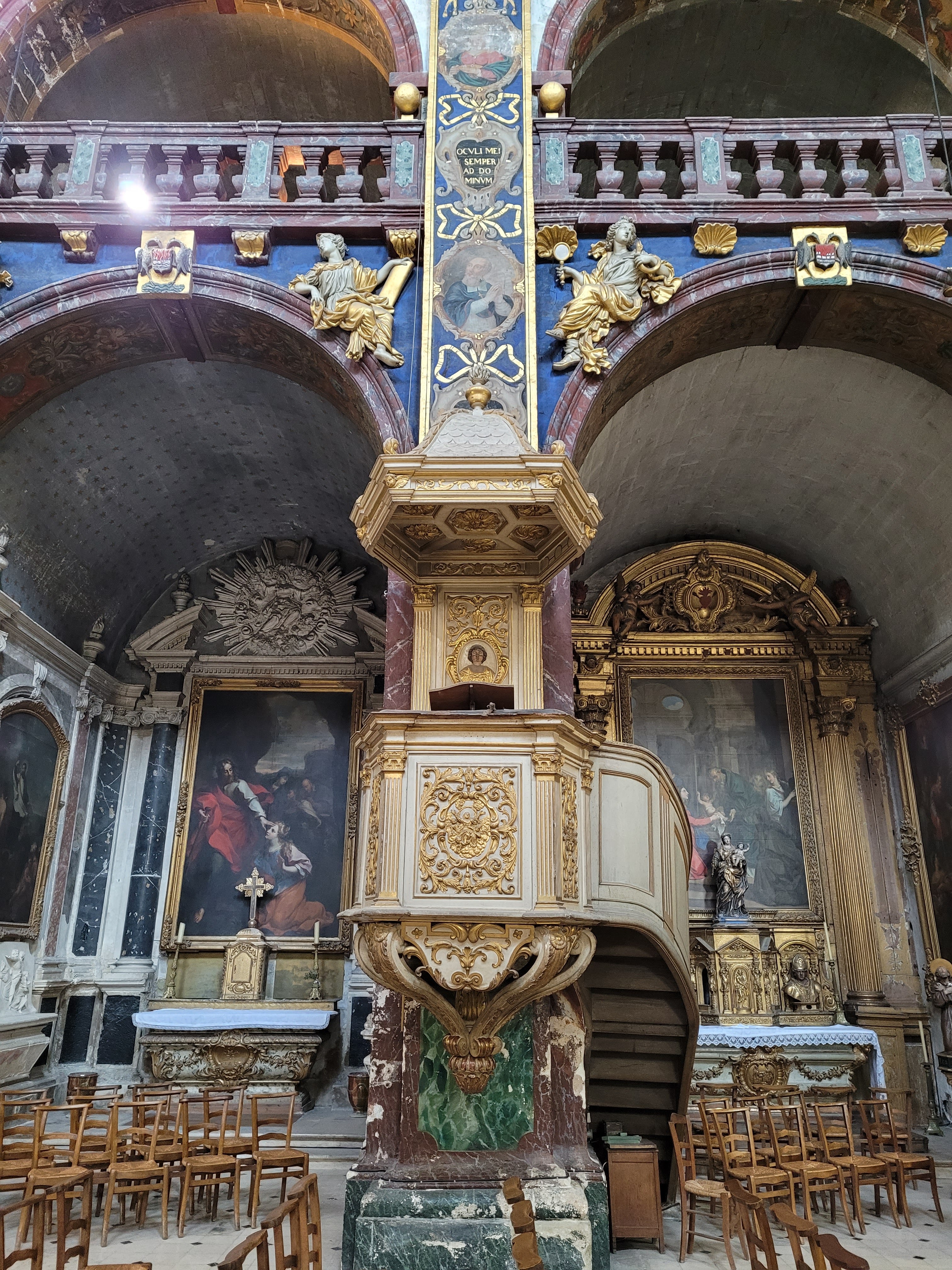 Superbe église baroque, peut-être la plus baroque de France, et surtotu un véritable catalogues des arts décoratifs des XVII et XVIII siècles, et un musée de sculpture habité d'environ 300 personnages !