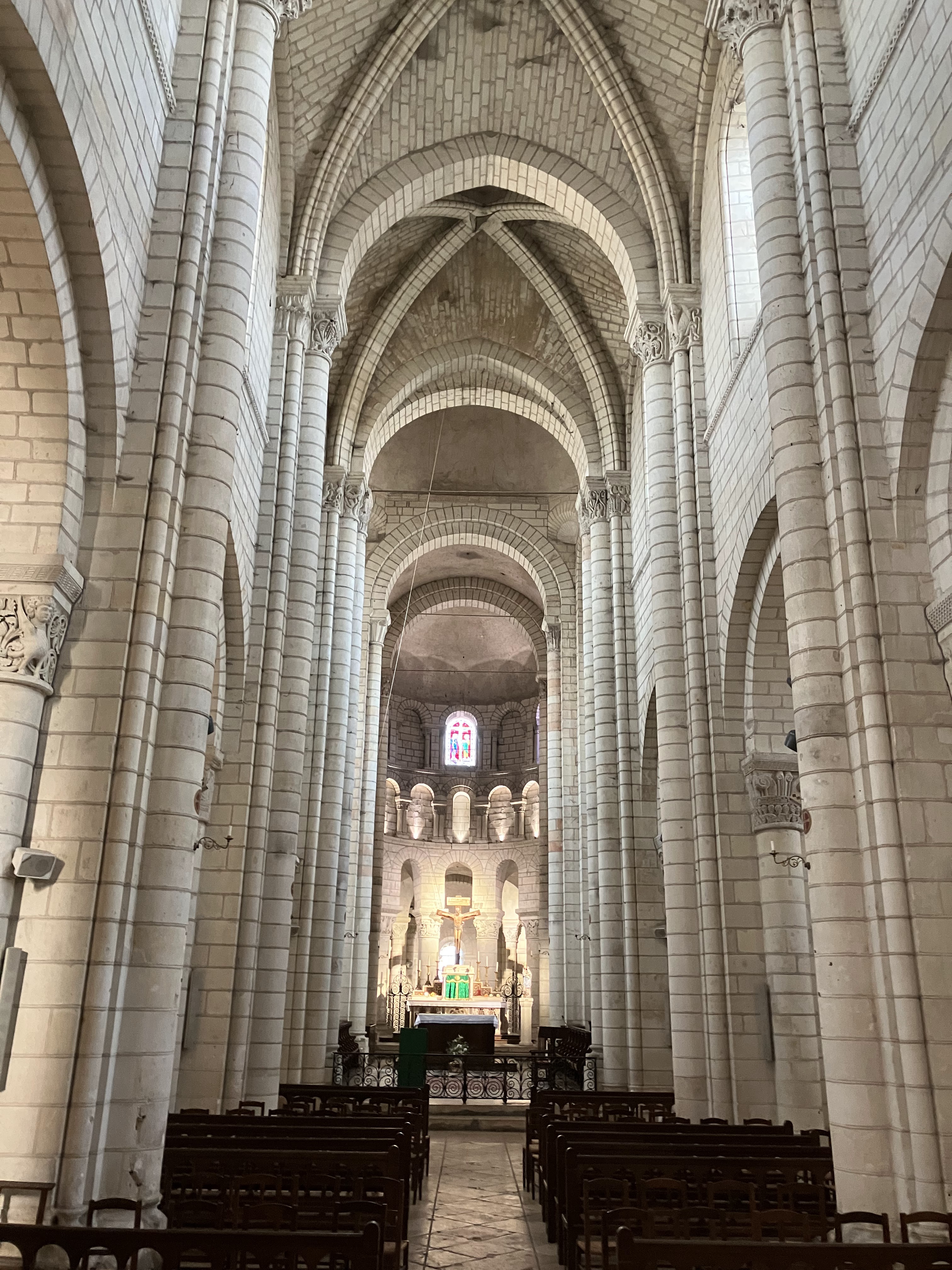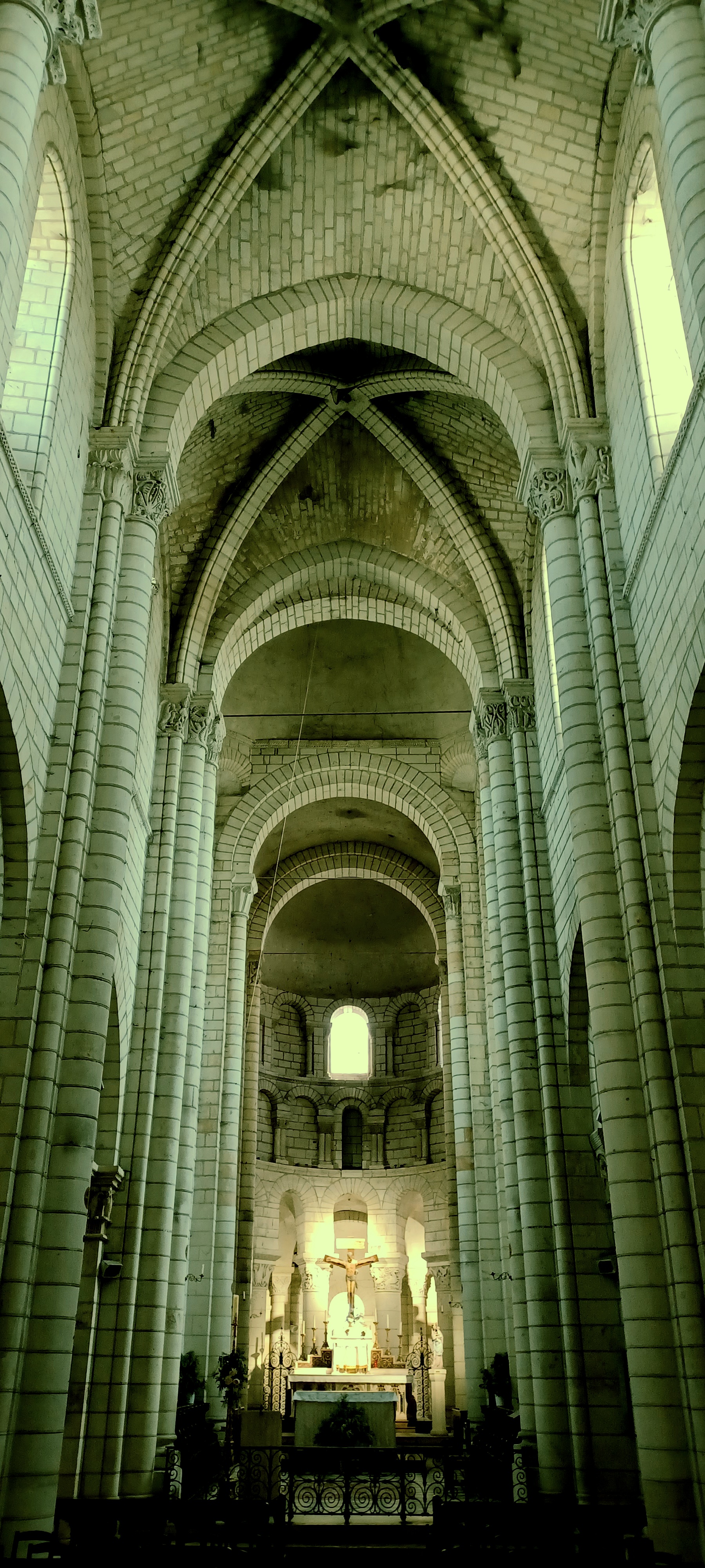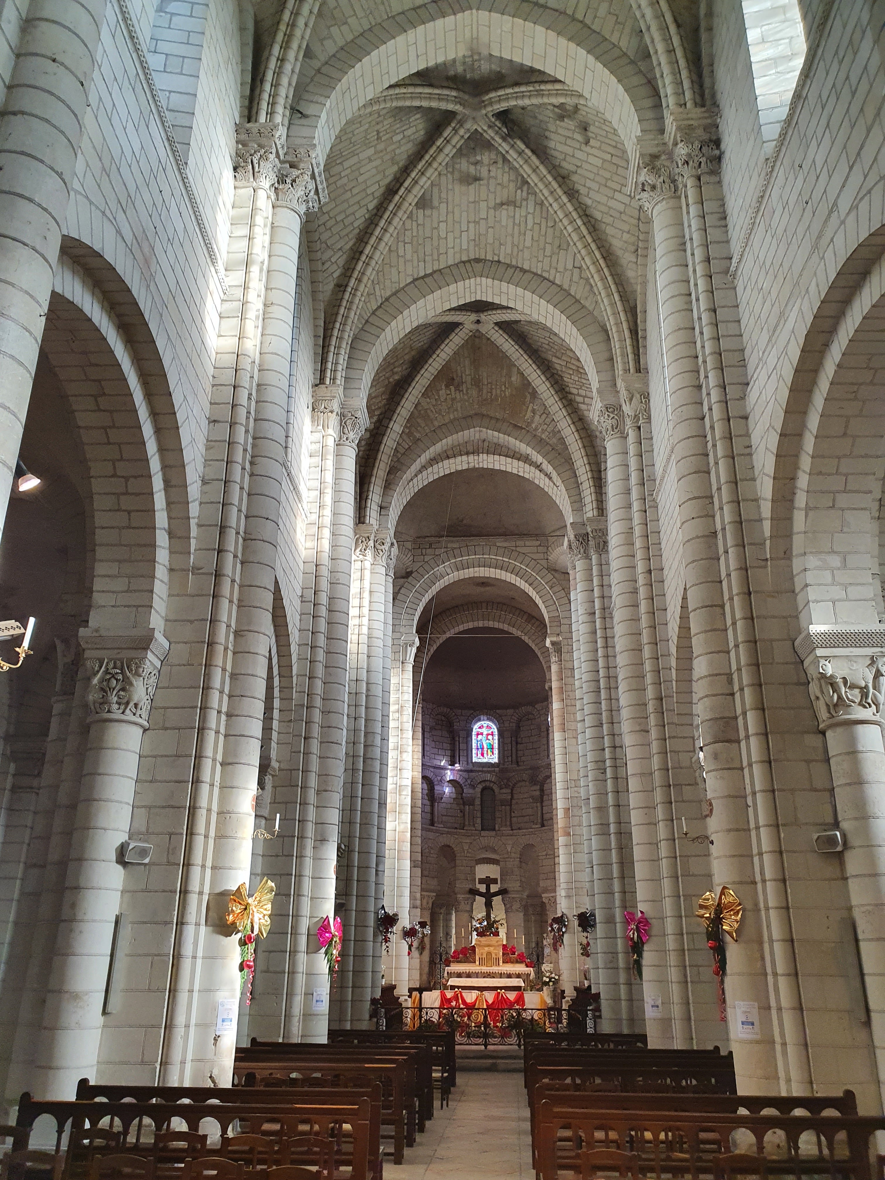 Très, très bel édifice. A ne pas manquer la descente dans la crypte qui présente une série de fresques romanes bien conservées ( qu'on peut découvrir à l'aide d'un audio-guide à déclancher à l'entrée de l'escalier qui y mène) De là, il est possible de gagner la cour du château Renaissance et sa terrasse (ouvertes gratuitement à la visite) qui offrent un large panorama sur la vallée du Cher. Depuis le pont sur la rivière, près du monument Américain ( les rives du Cher ont accueilli pendant la première guerre mondiale l'un des plus importants camp américain en France pour les troupes débarquées à St Nazaire et en transit vers le front) magnifique panorama d'ensemble sur la ville, la collégiale et le château.