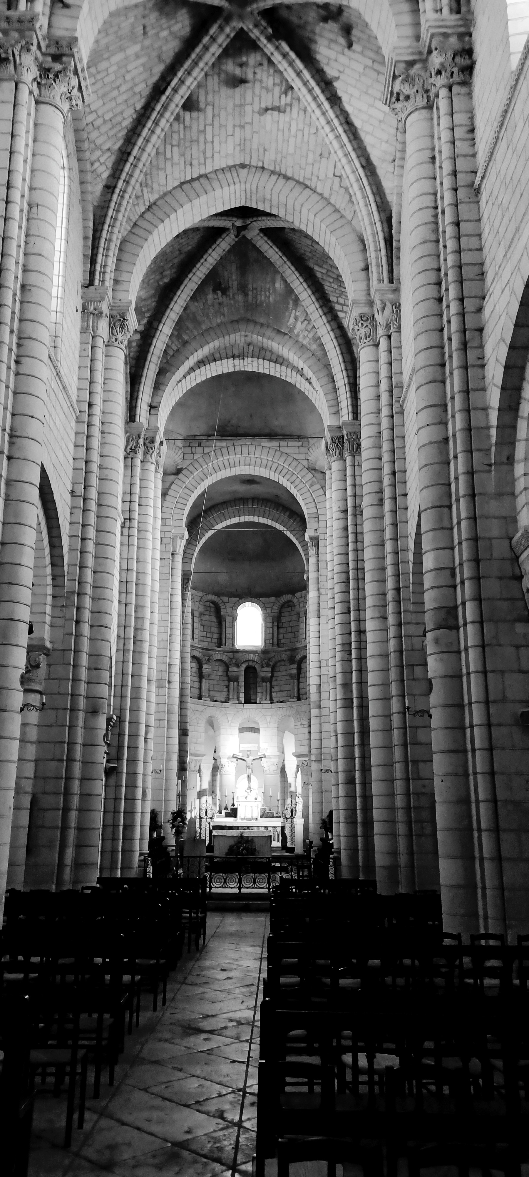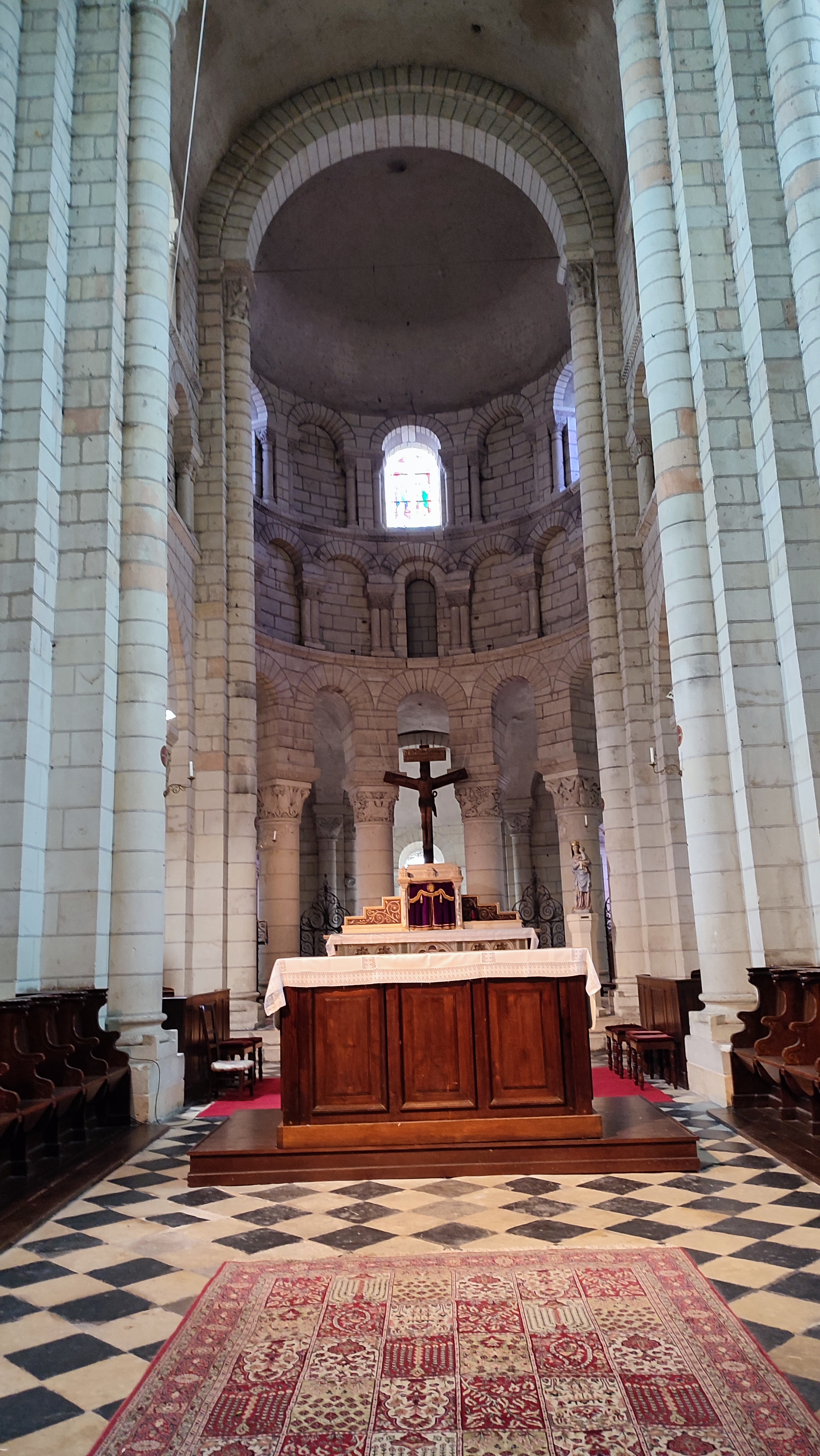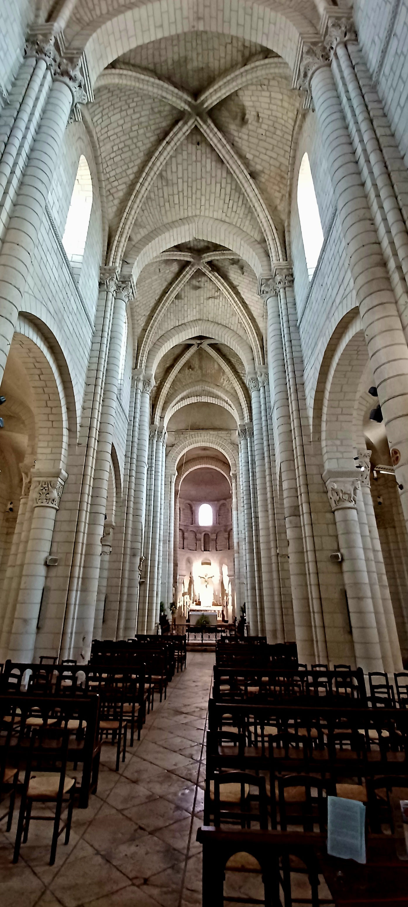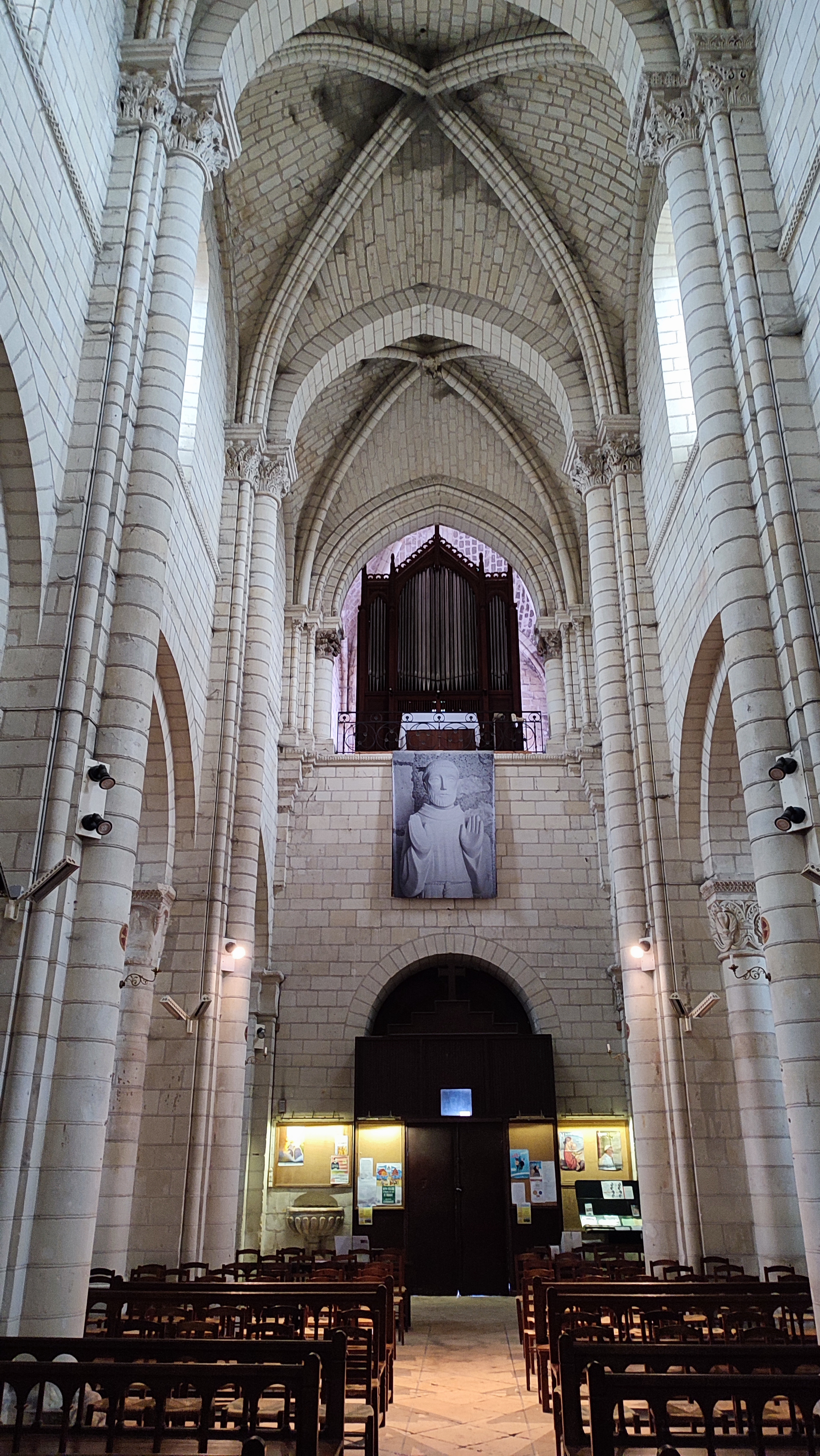 Très, très bel édifice. A ne pas manquer la descente dans la crypte qui présente une série de fresques romanes bien conservées ( qu'on peut découvrir à l'aide d'un audio-guide à déclancher à l'entrée de l'escalier qui y mène) De là, il est possible de gagner la cour du château Renaissance et sa terrasse (ouvertes gratuitement à la visite) qui offrent un large panorama sur la vallée du Cher. Depuis le pont sur la rivière, près du monument Américain ( les rives du Cher ont accueilli pendant la première guerre mondiale l'un des plus importants camp américain en France pour les troupes débarquées à St Nazaire et en transit vers le front) magnifique panorama d'ensemble sur la ville, la collégiale et le château.