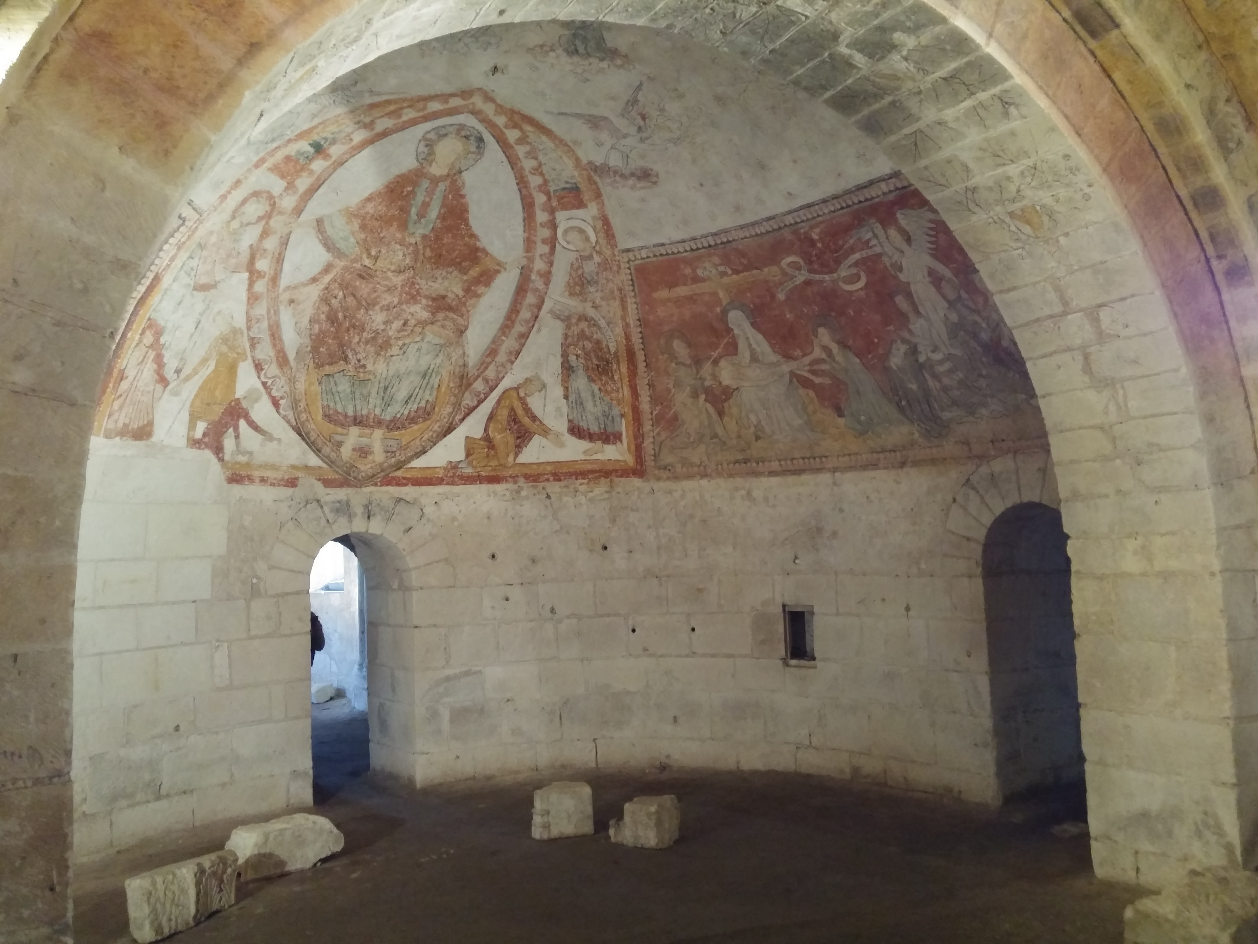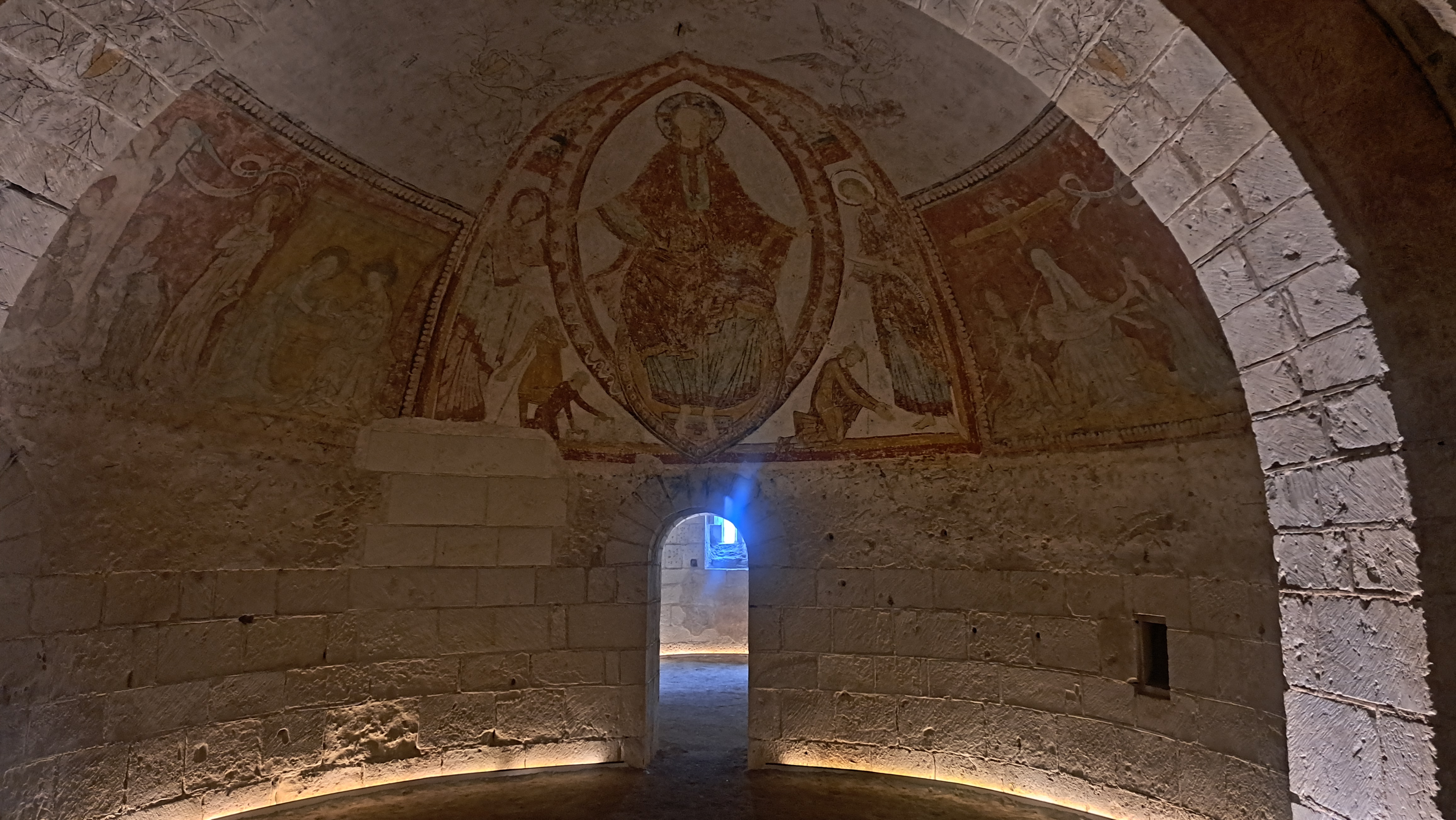 A voir absolument : la crypte avec son bel espace et avec ses magnifiques fresques du 12eme siècle exceptionnellement conservées