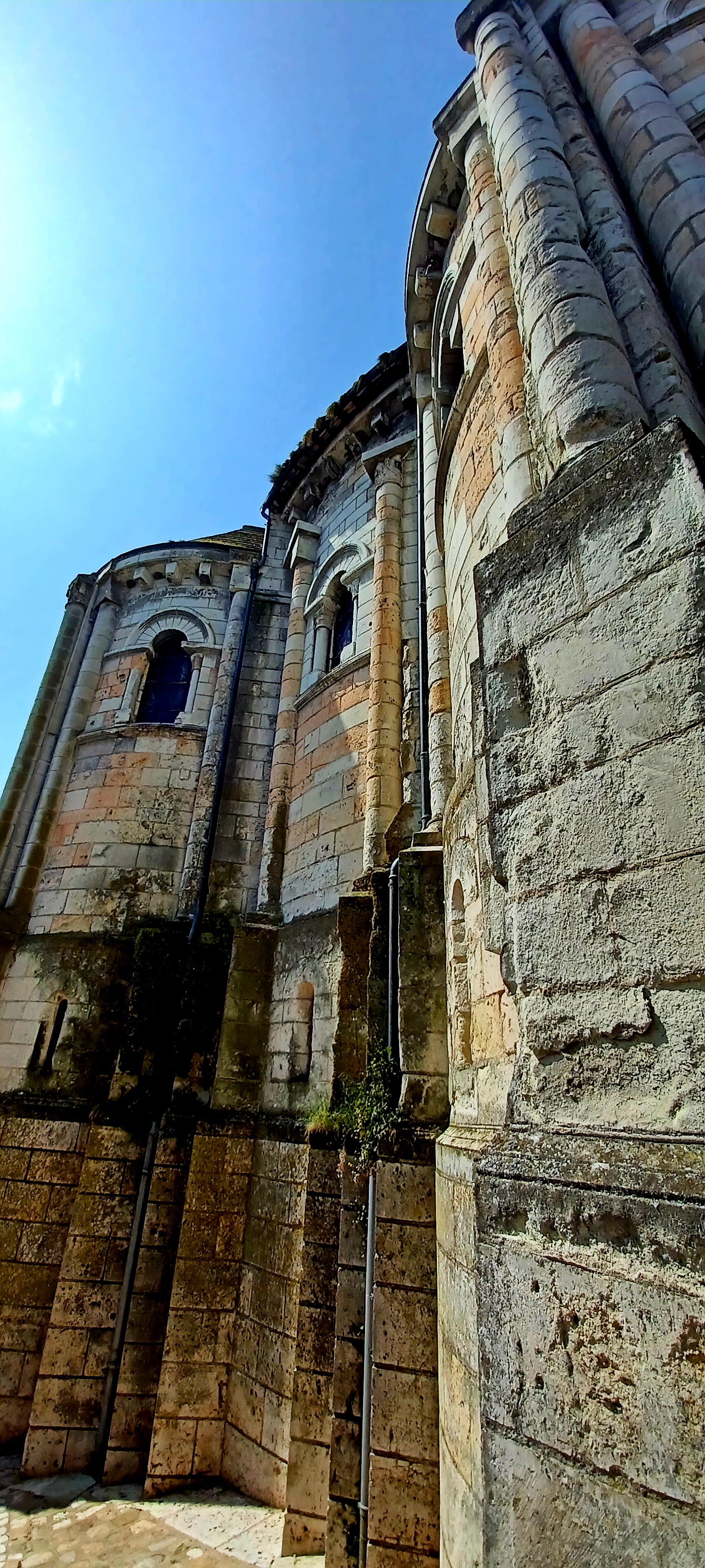 Une église romane fortifiée d’une tour et agrémentée au cours des siècles de quelques remaniements. La Chapelle des miracles du 15ème m’a charmé. Mais le chef-d’œuvre architectural que représente la crypte romane vaut à lui seul la visite. Mille ans que cette «église souterraine» avec déambulatoire, chapelles et peintures murales supporte le poids de la collégiale, et elle se trouve aujourd’hui dans un état remarquable. Il ne faut hésiter à prendre les escaliers pour monter au château dont les extérieurs sont ouverts au public et dont l’emplacement permet d’accéder à de beau panoramas sur la ville et la rivière.