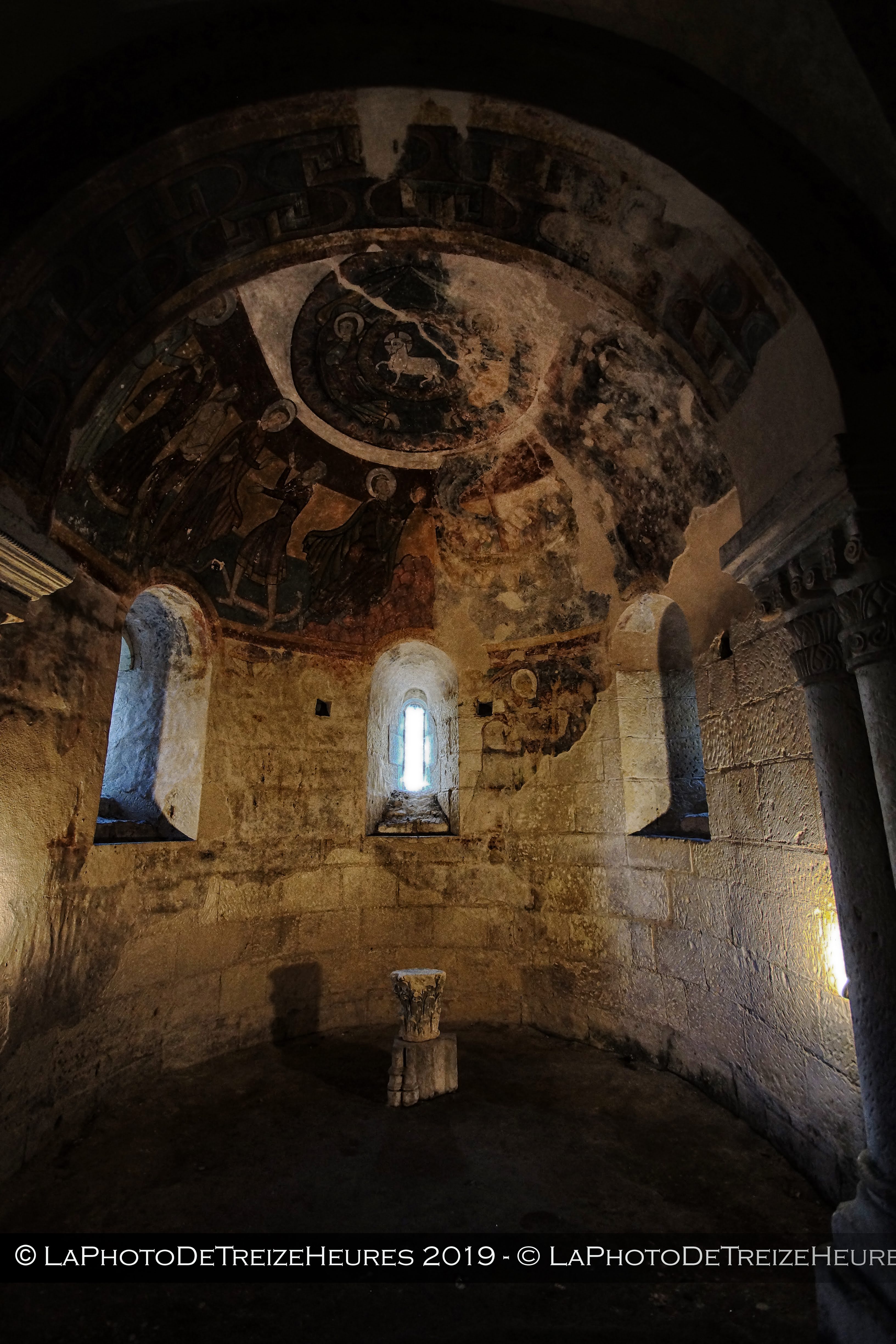 Magnifique église romane avec une crypte avec peintures anciennes encore visible