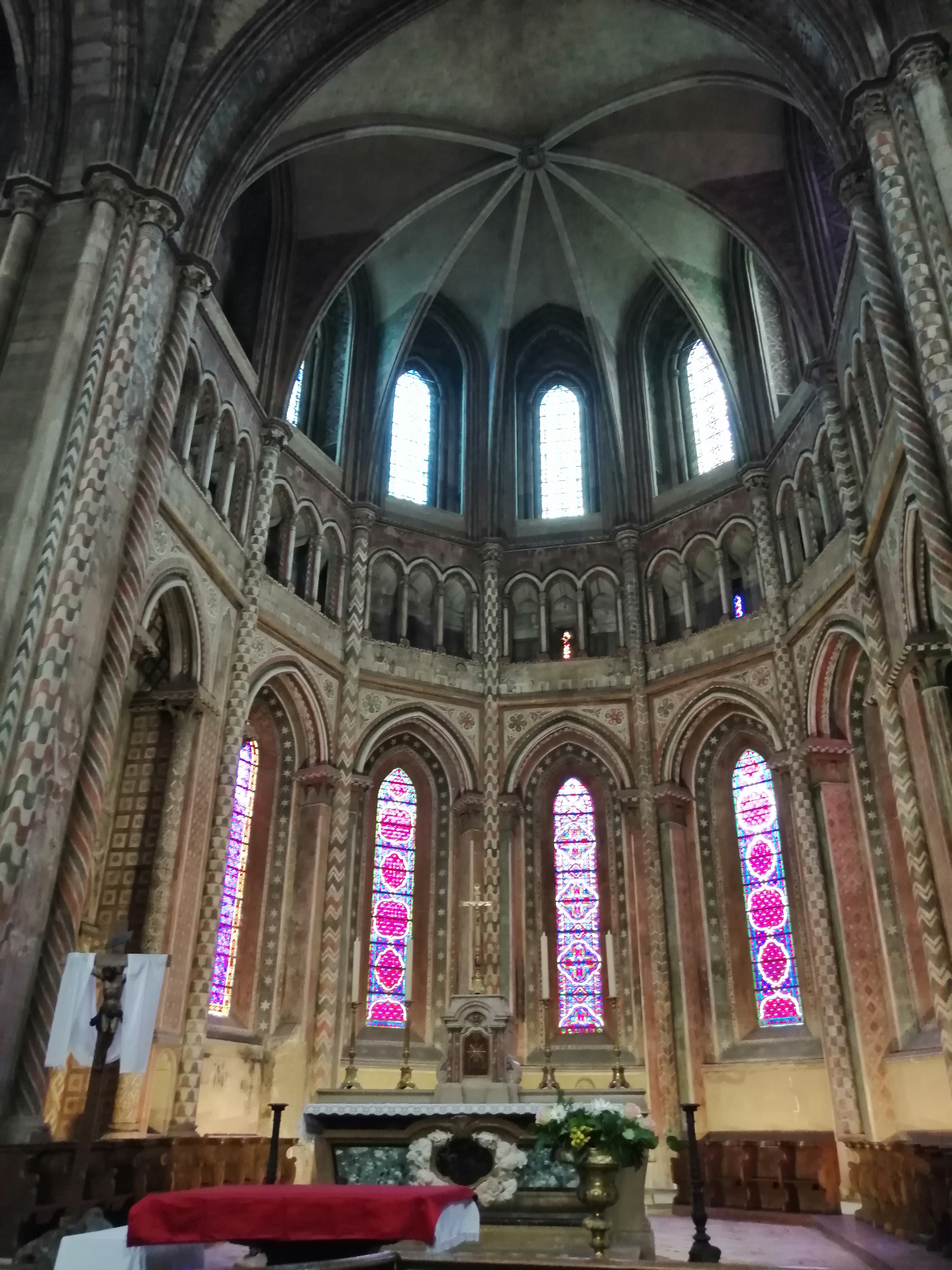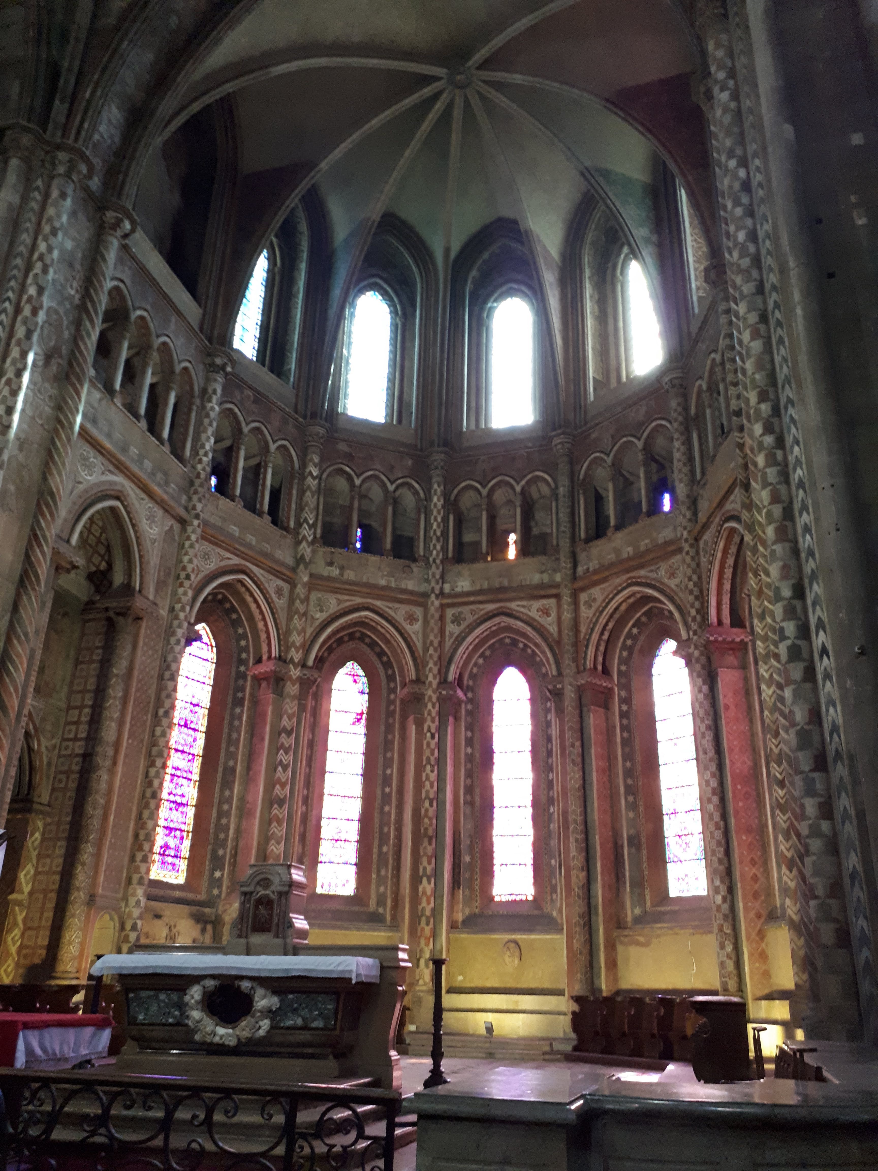 Jolie collégiale , vitraux dans des teintes de rouges , belle petite balade.