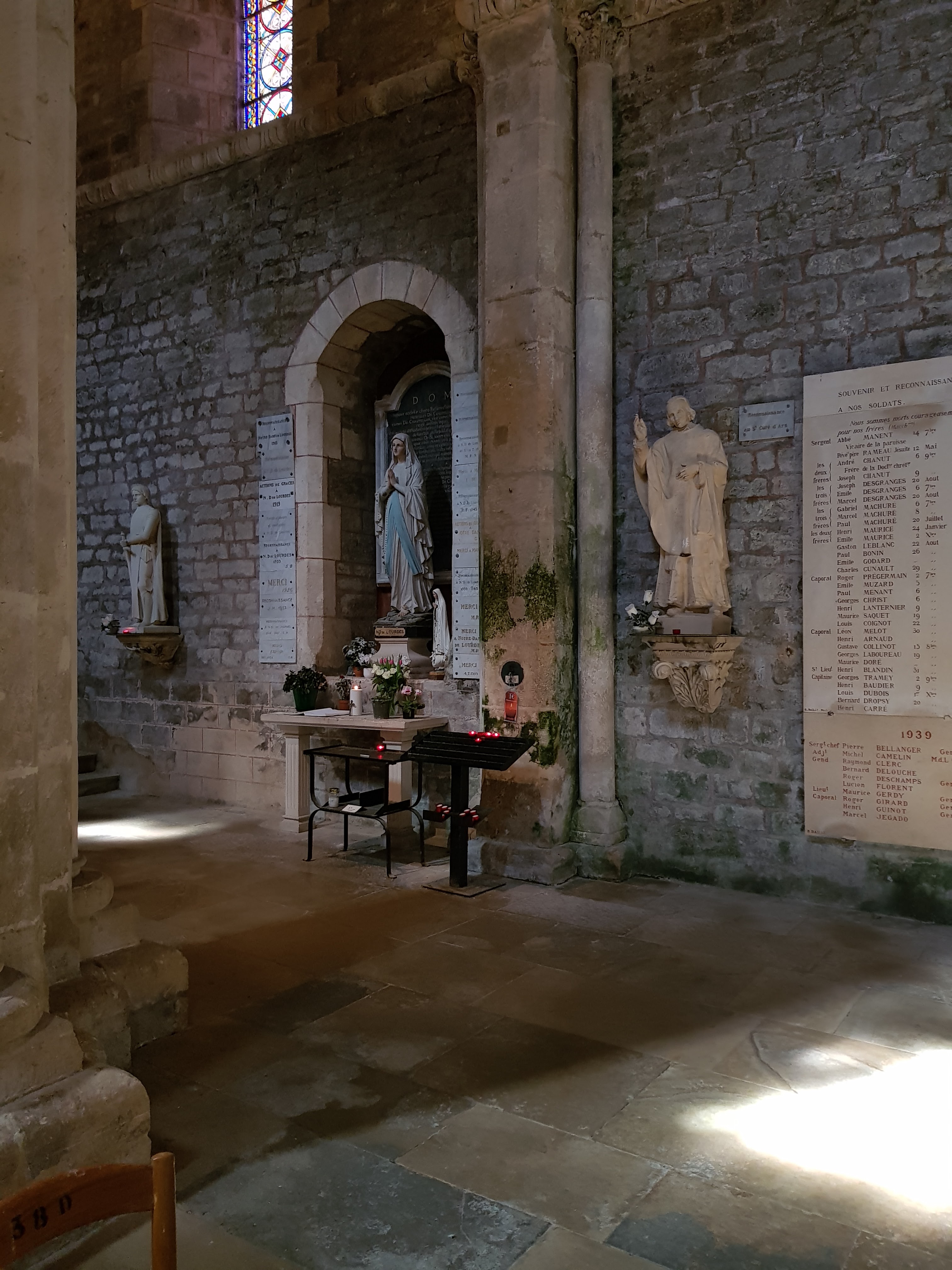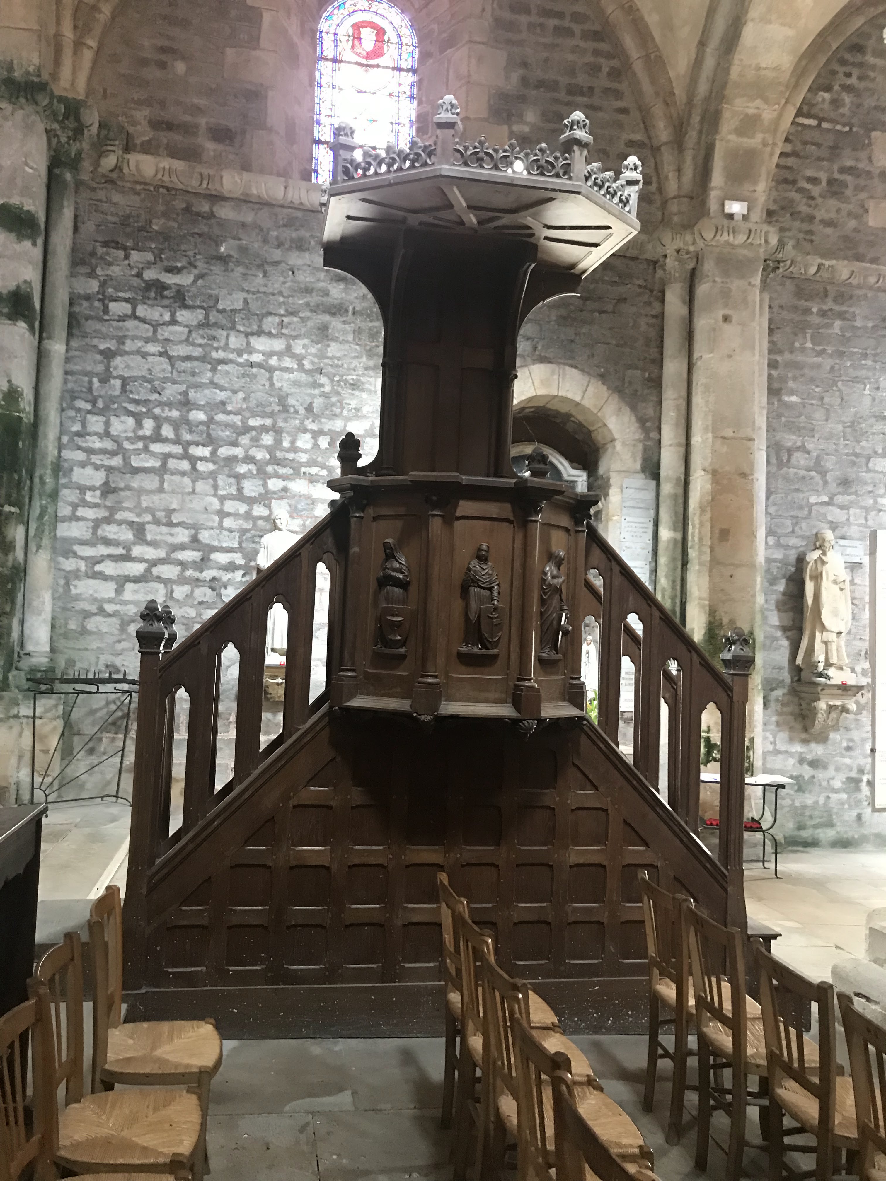 Un peu difficile à trouver. Belle vieille église. Œuvre d’art en pierre. Vitrail. Boiseries. Merveilleux