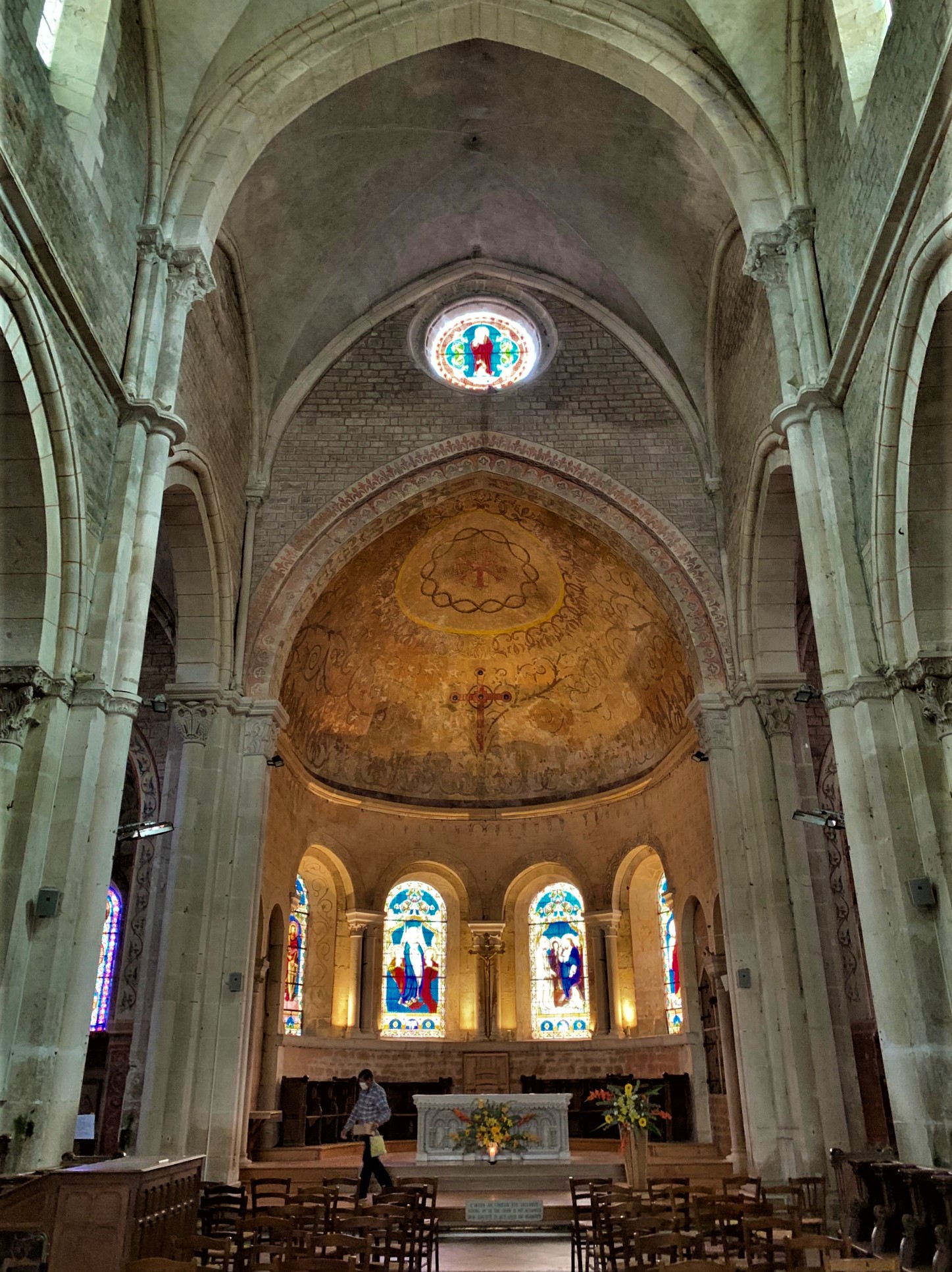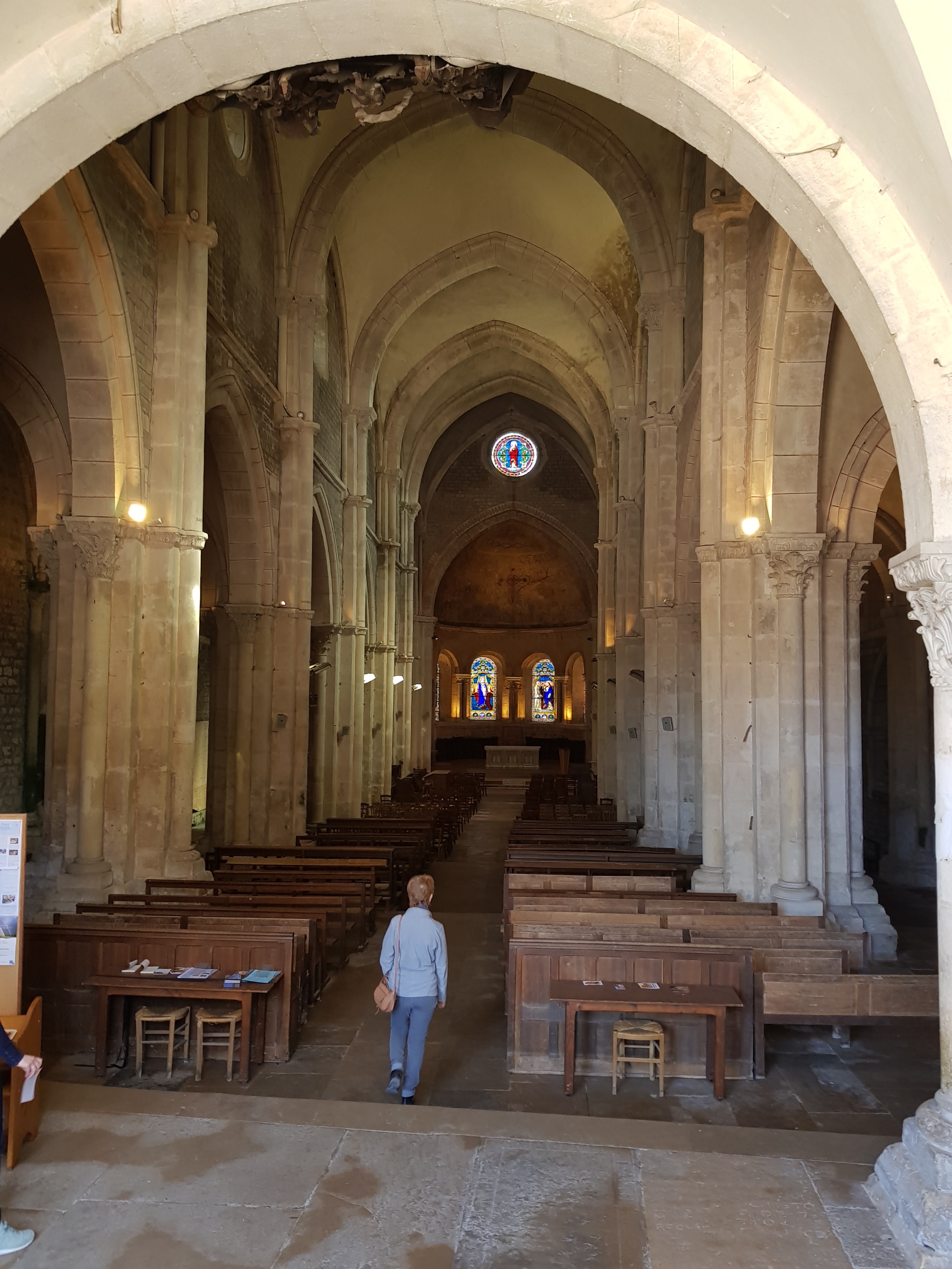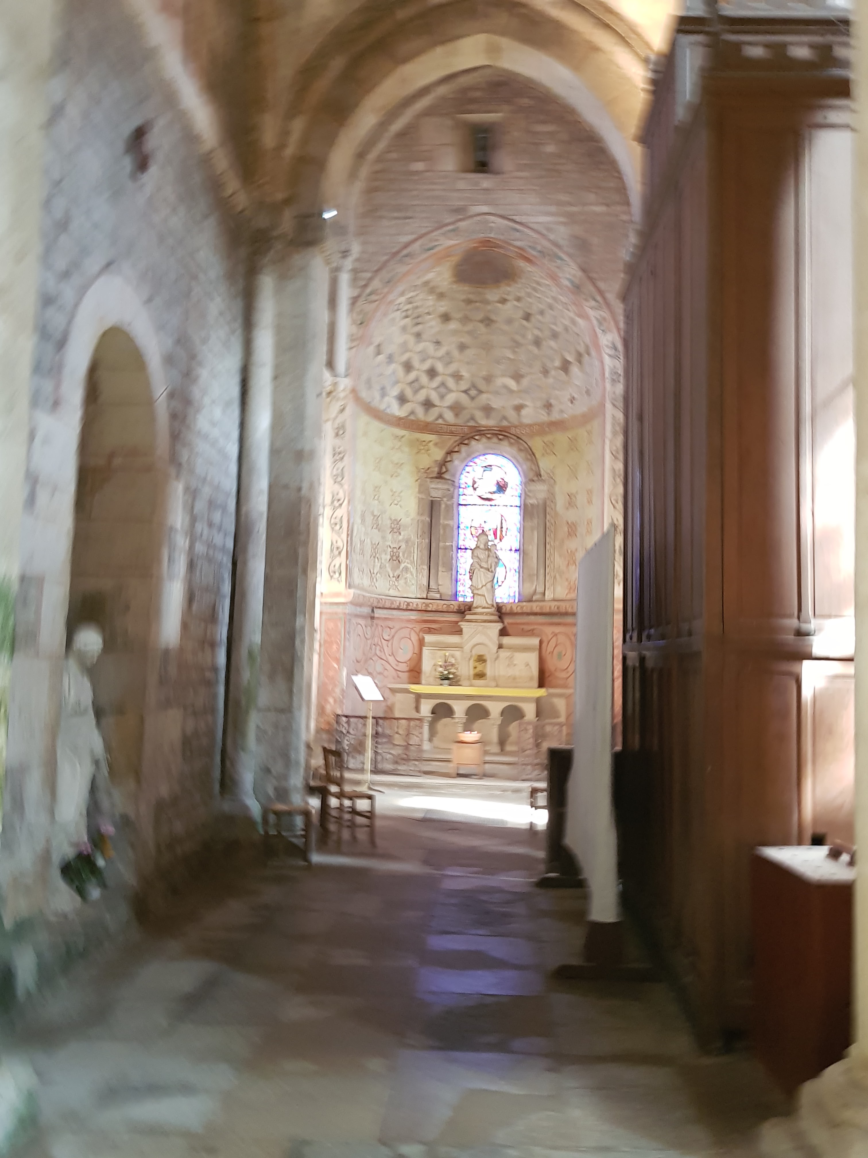 Belle église, manque d explications, originale , on accède au cœur par palier. Beaux vitraux modernes dans le coeur