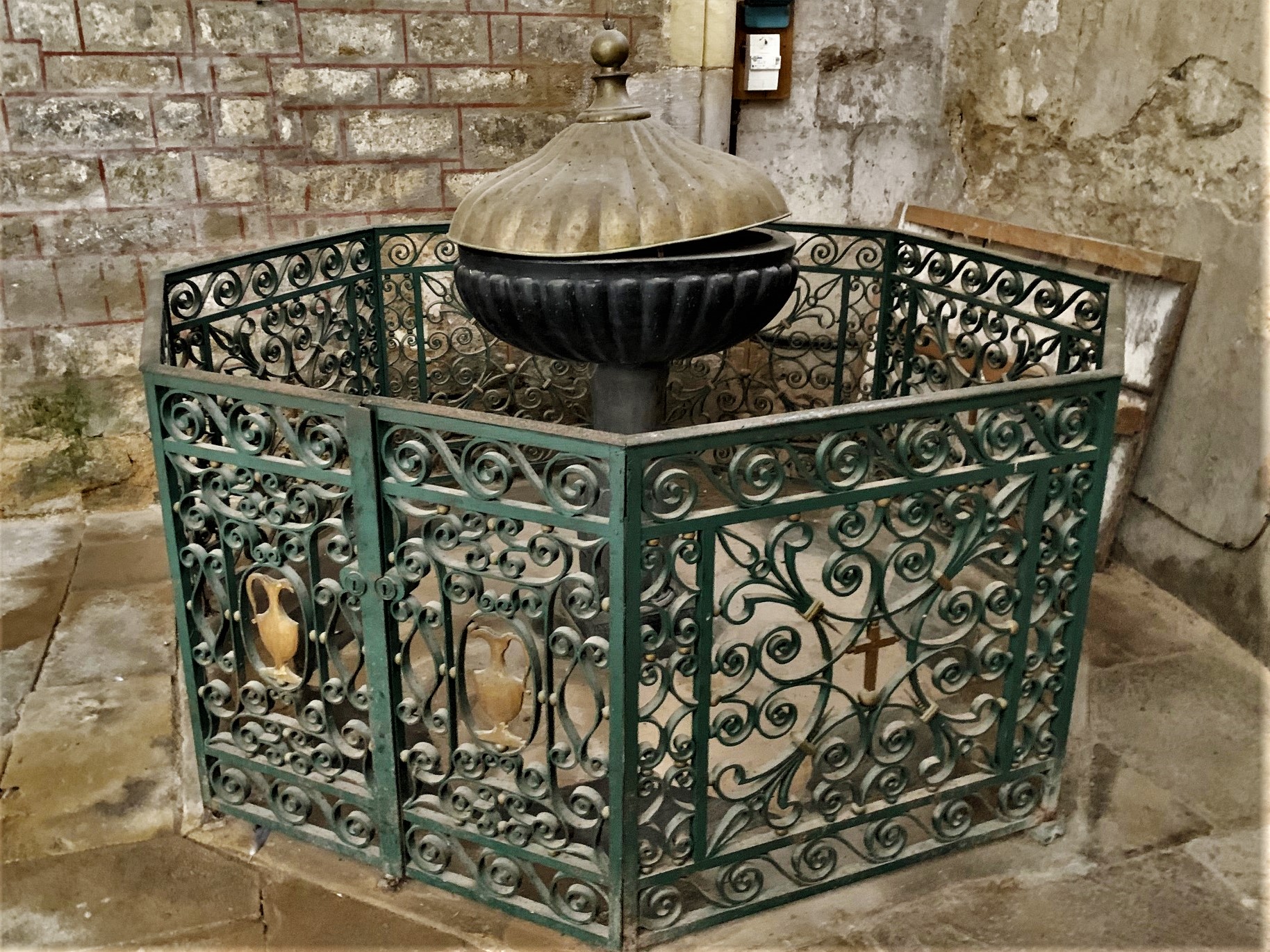 Une belle ornementation extérieure en pierre. C'est dommage qu'on ne puisse pas voir l'intérieur.