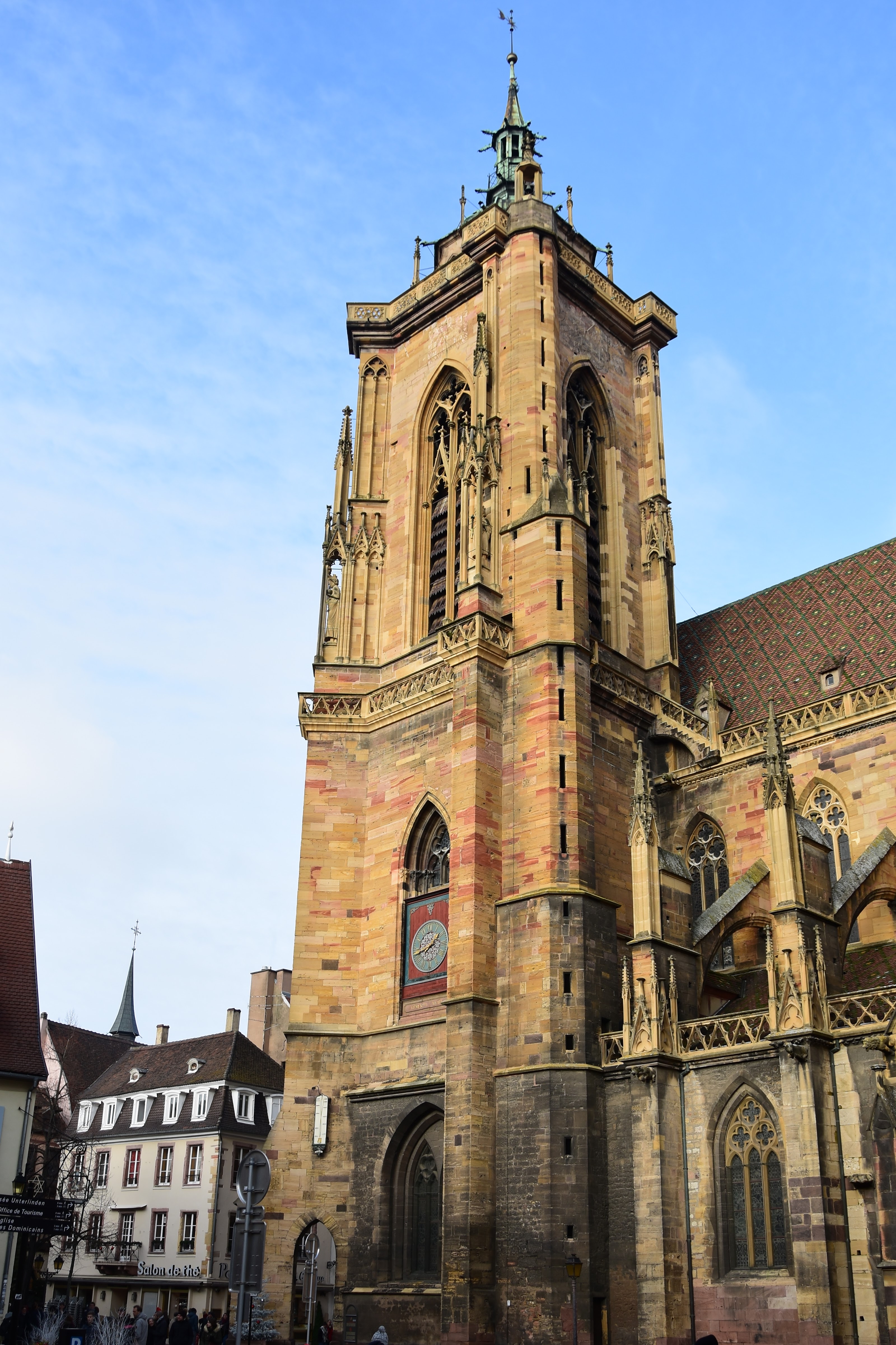 Superbe édifice religieux catholique des treizième et quatorzième siècles en plein cœur de Colmar historique. Un orgue Silbermann assez impressionnant et une mosaïque de couleurs de roches, entre les grès vosgien rose et rouge aux calcaires jaunes de Rouffach.