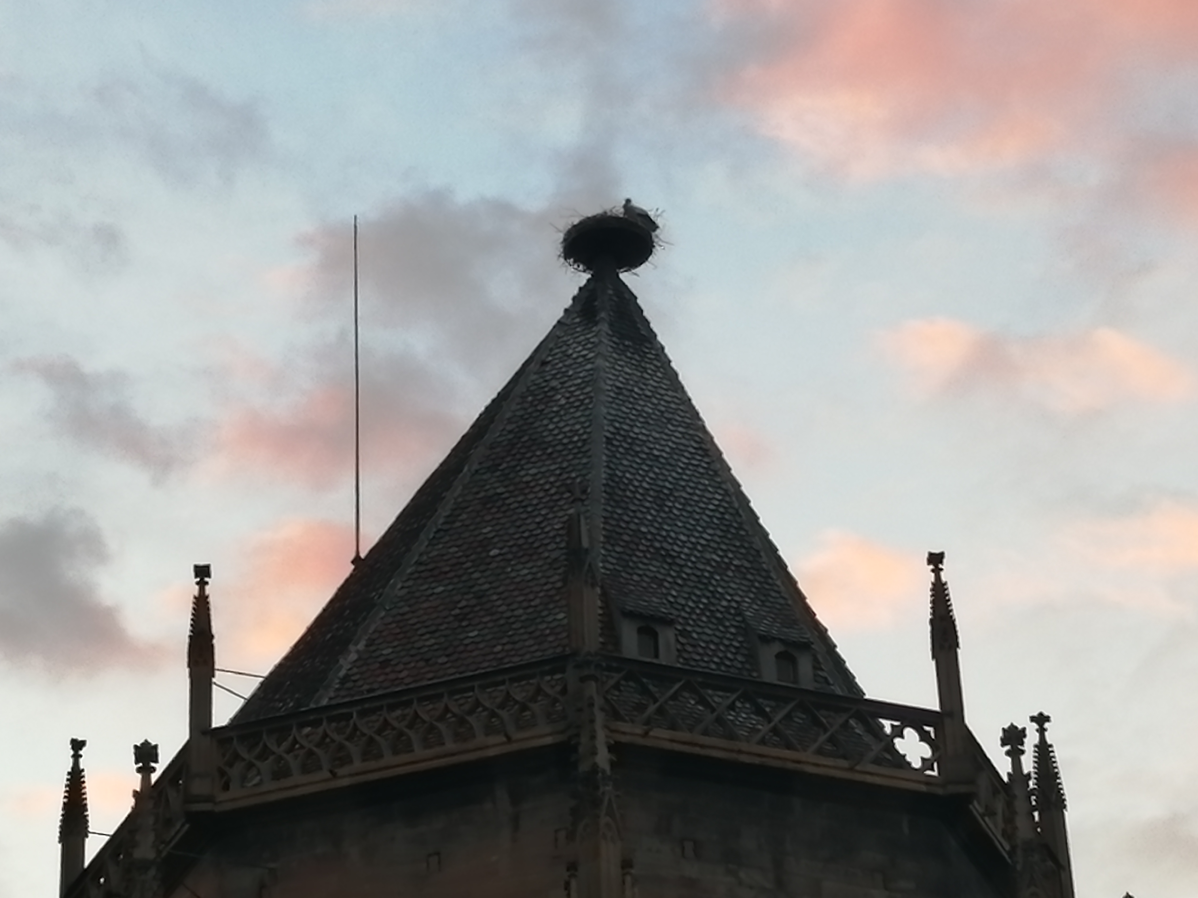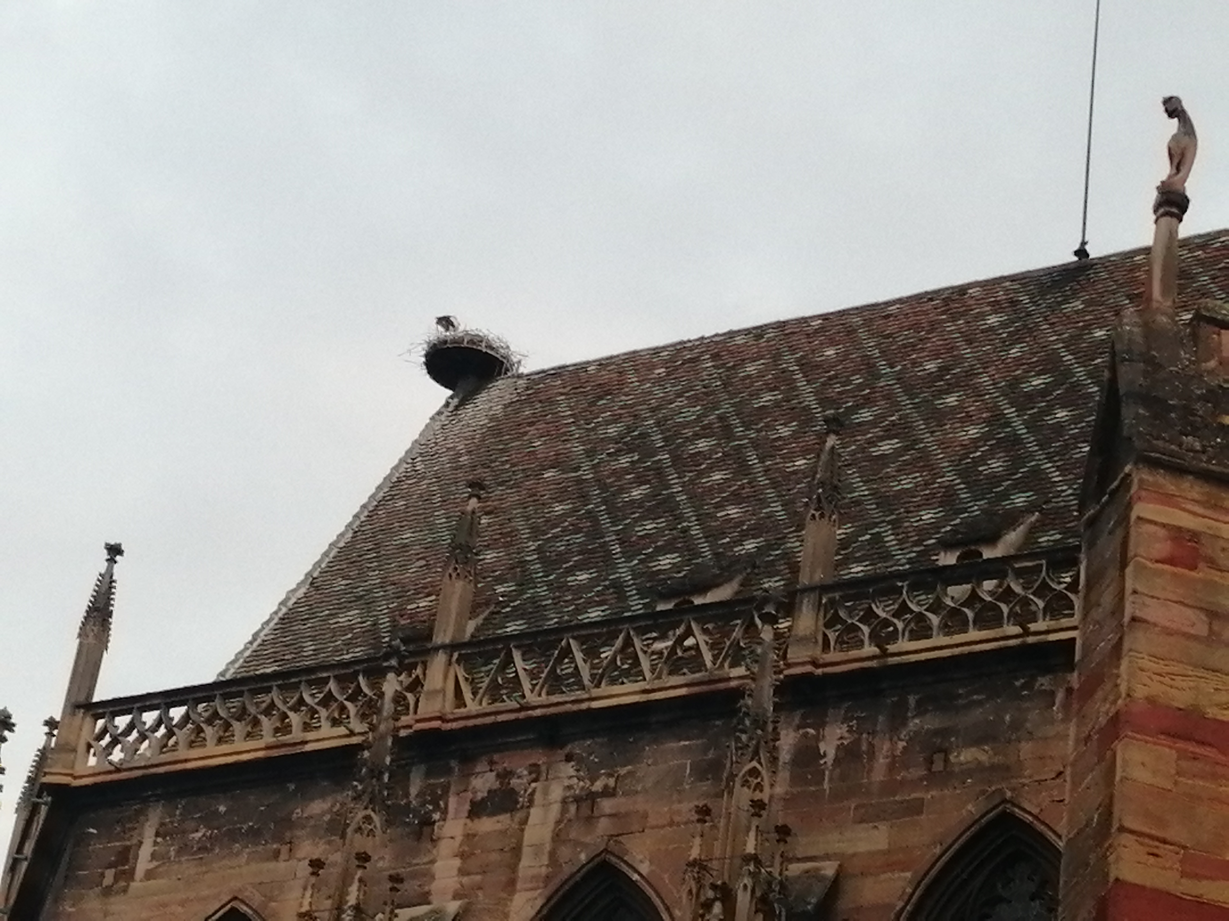 Bâtiment impressionnant. Même les cigognes s'y sentent à l'aise et ont installé leur nid sur le toit. Une cathédrale à Colmar qui vaut le détour