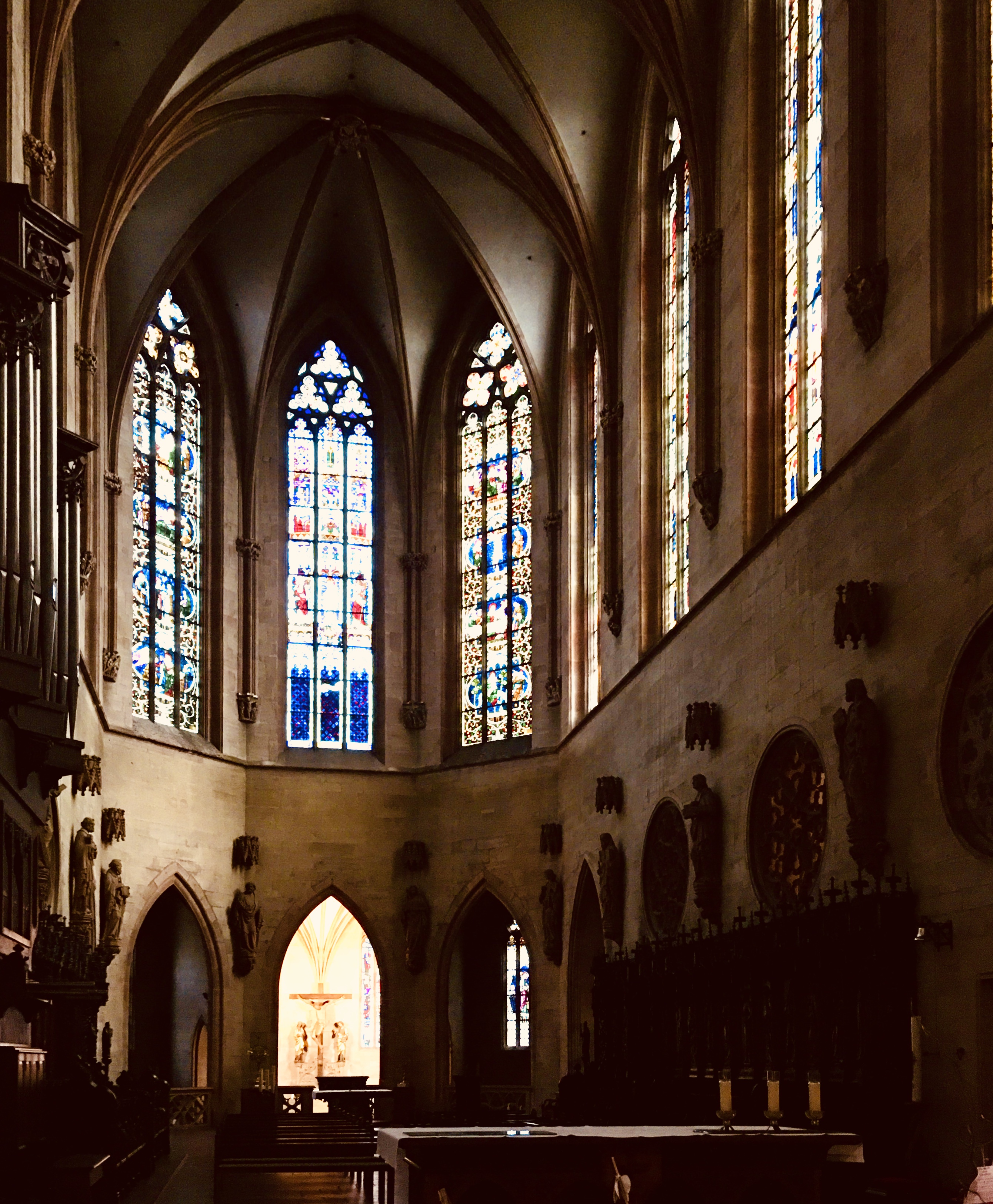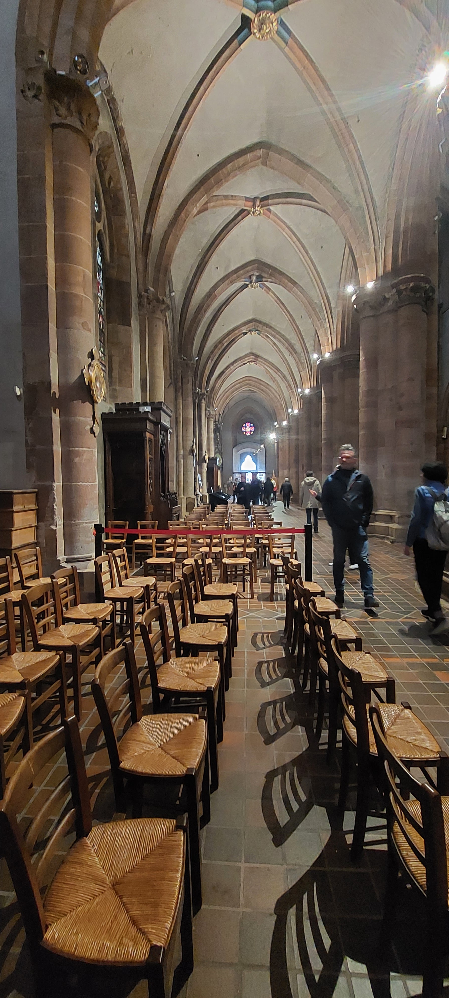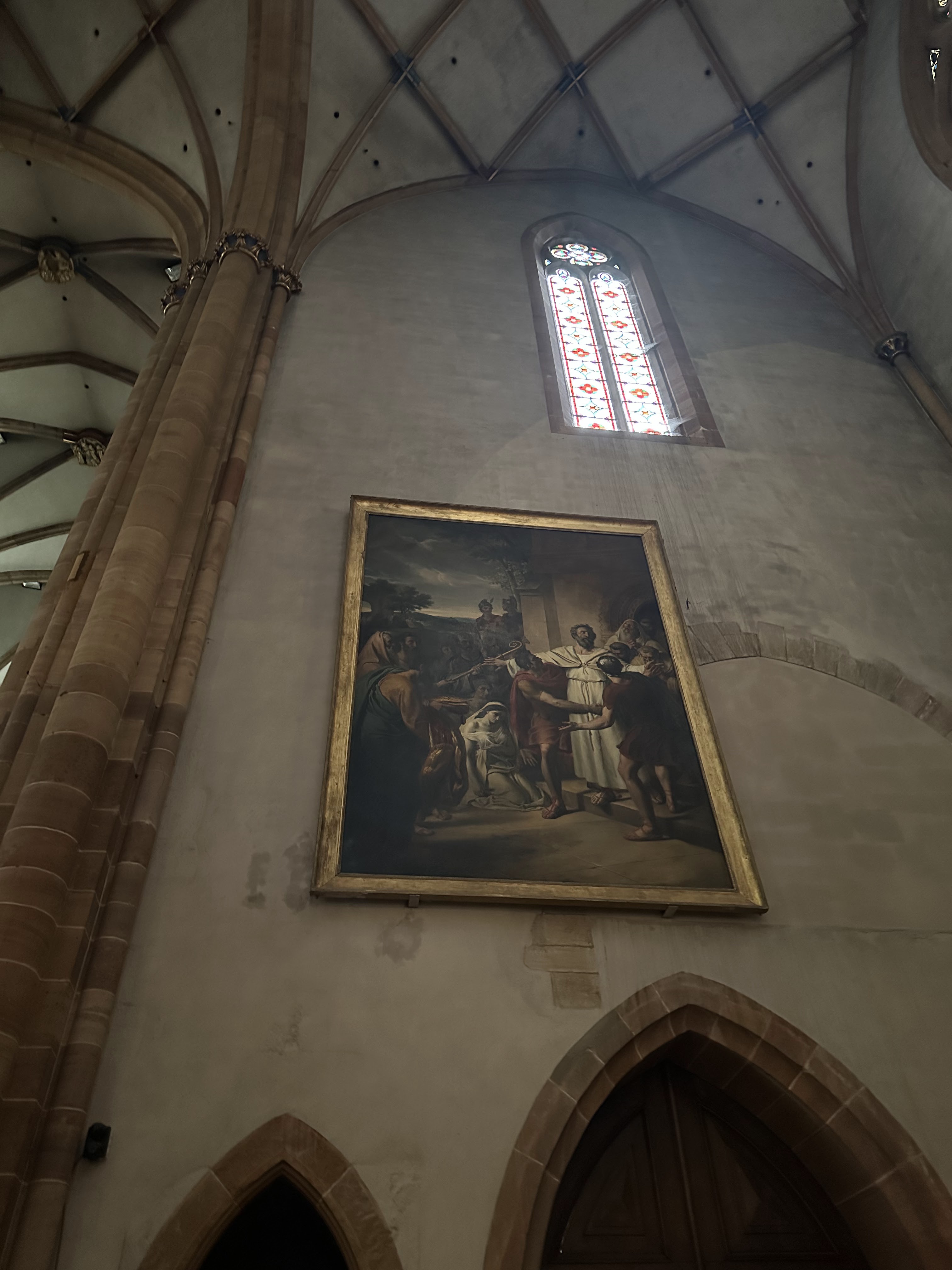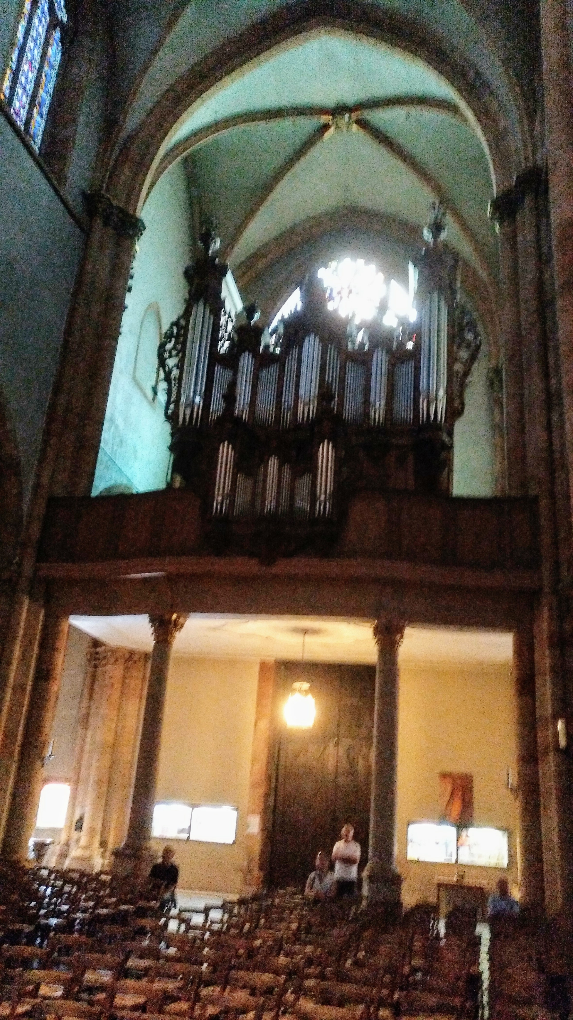Grande vieille église. Beau et impressionnant de l’extérieur, un peu plus simple à l’intérieur. Deux orgues, de beaux vitraux. Un lieu de réflexion. Et deux cigognes nichent et claquent sur le toit.