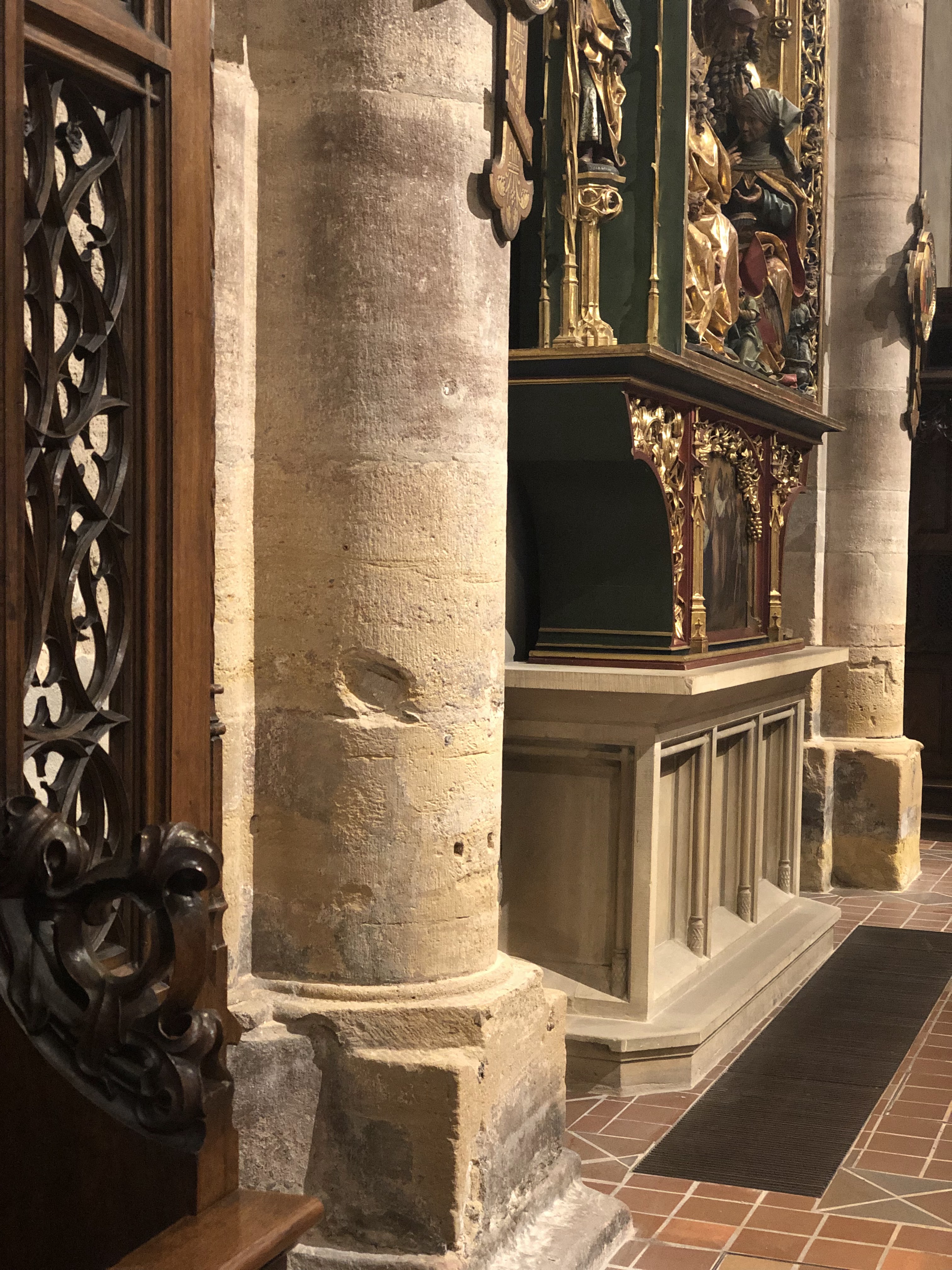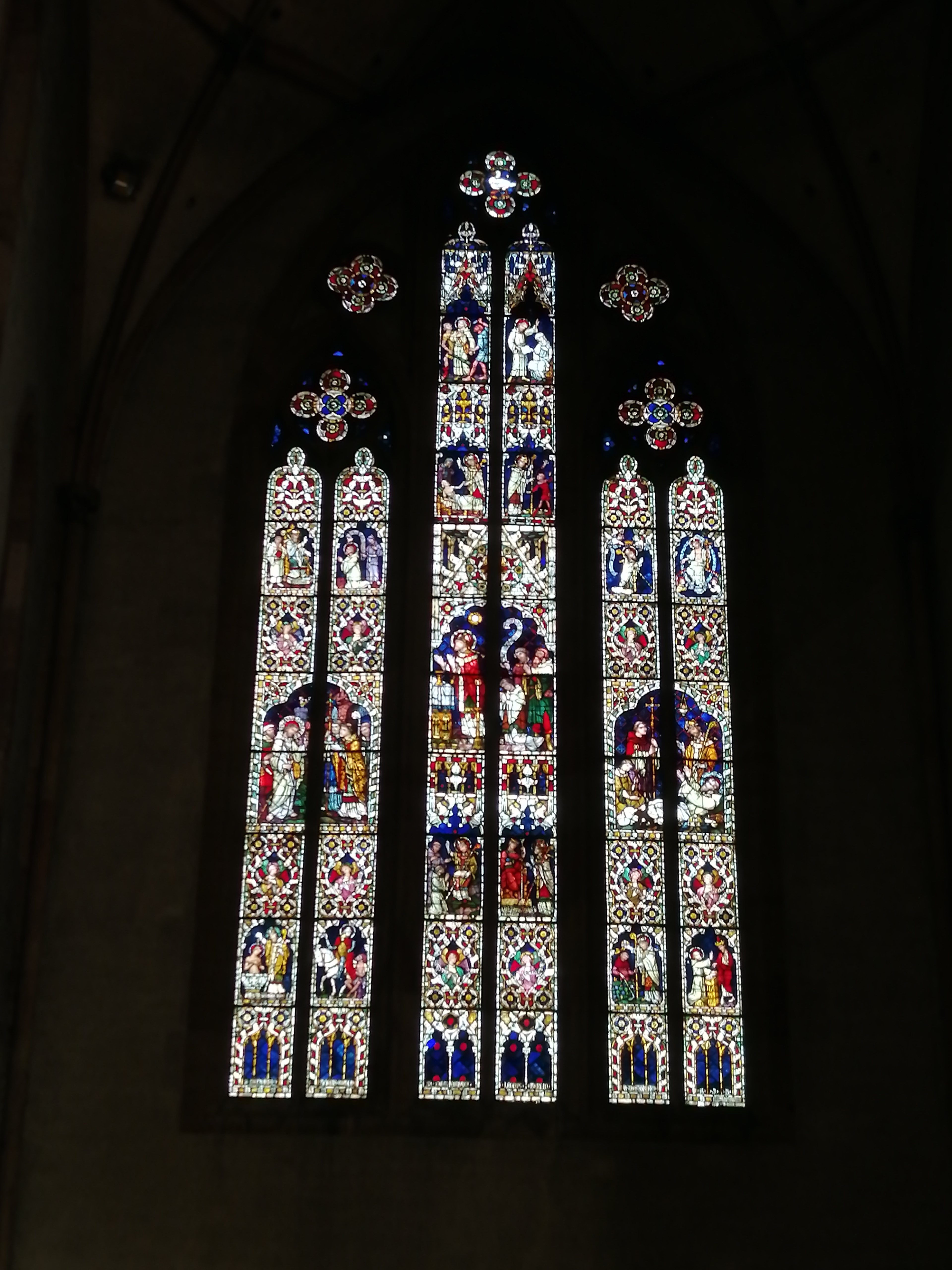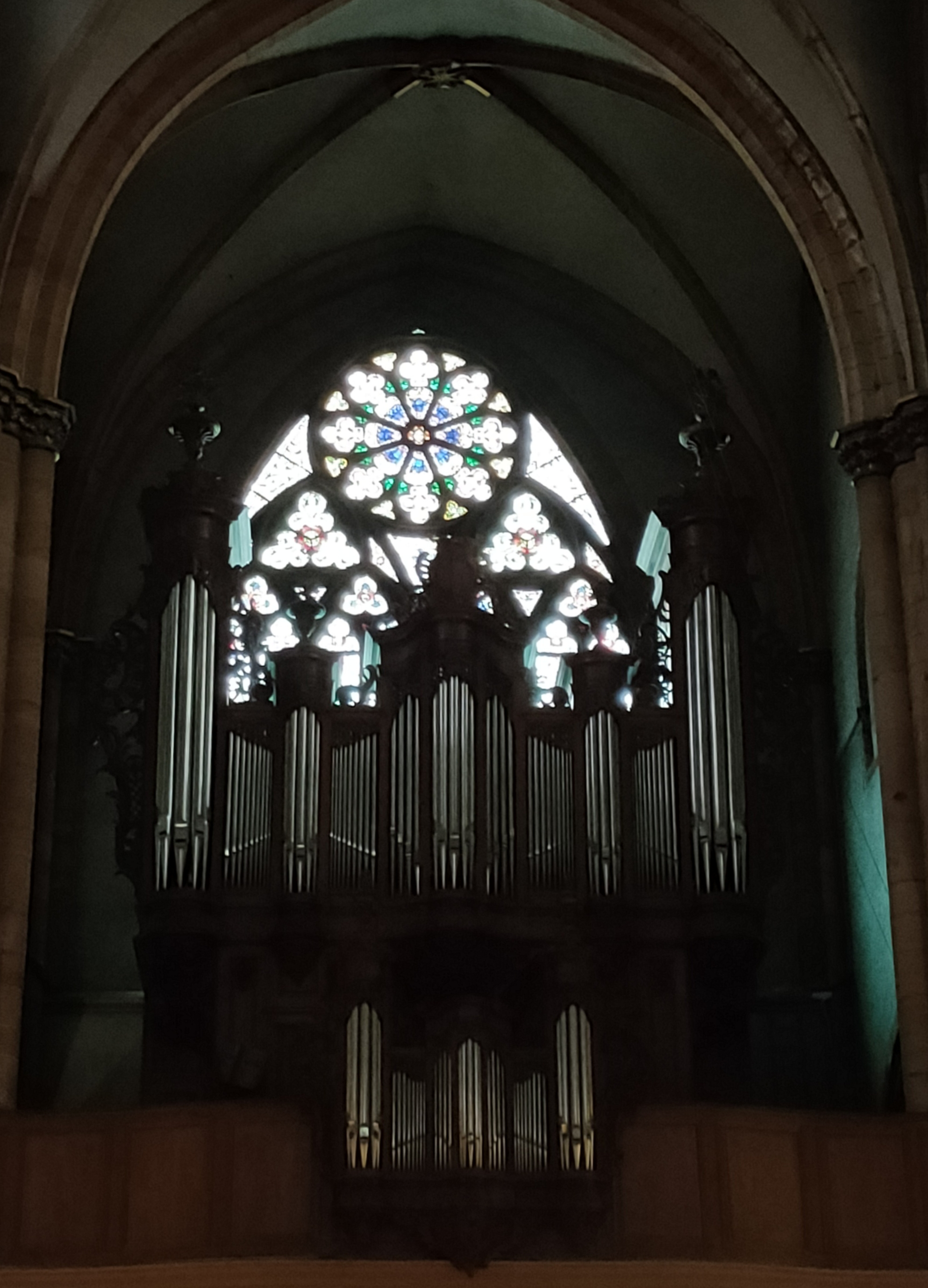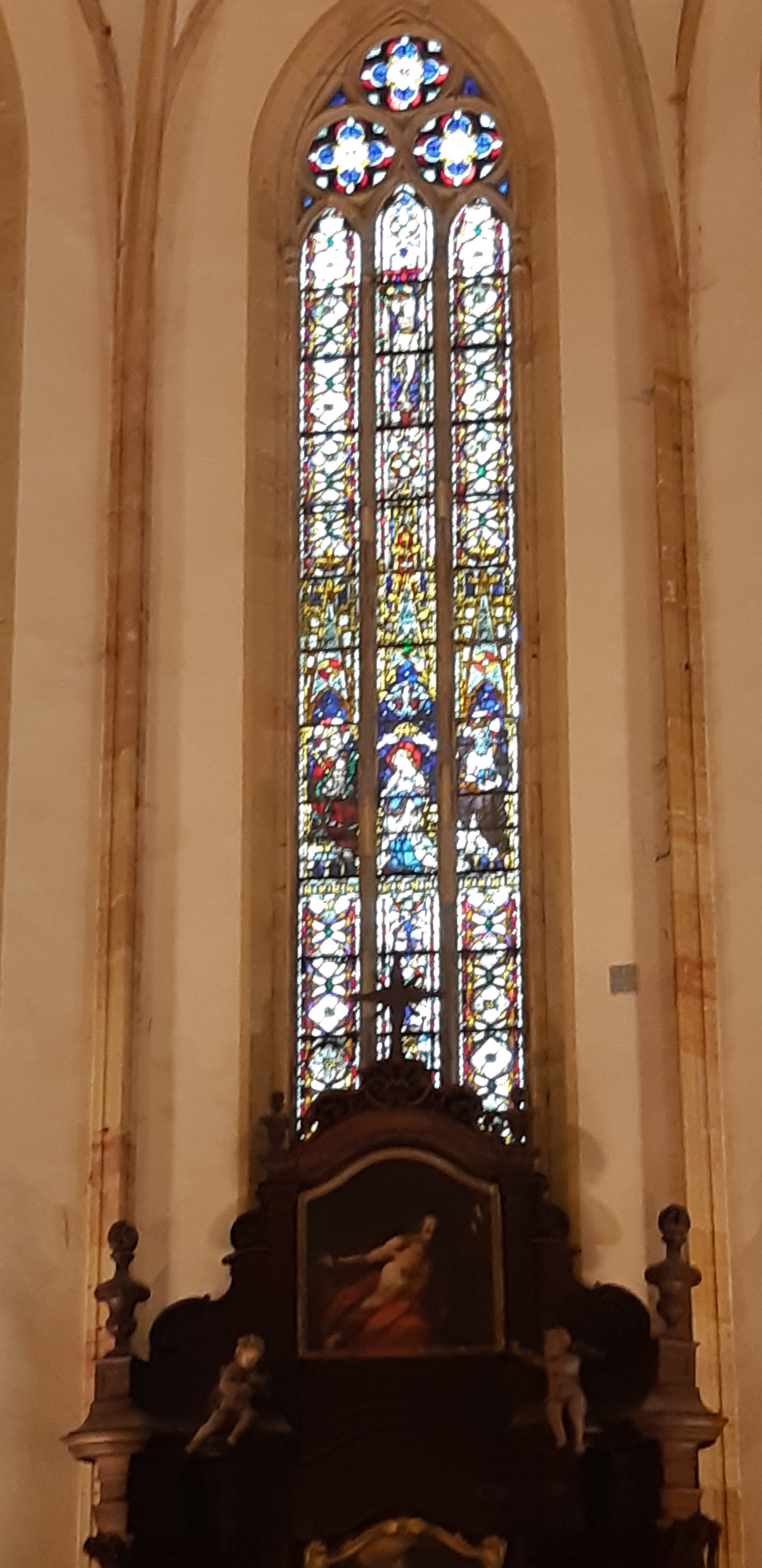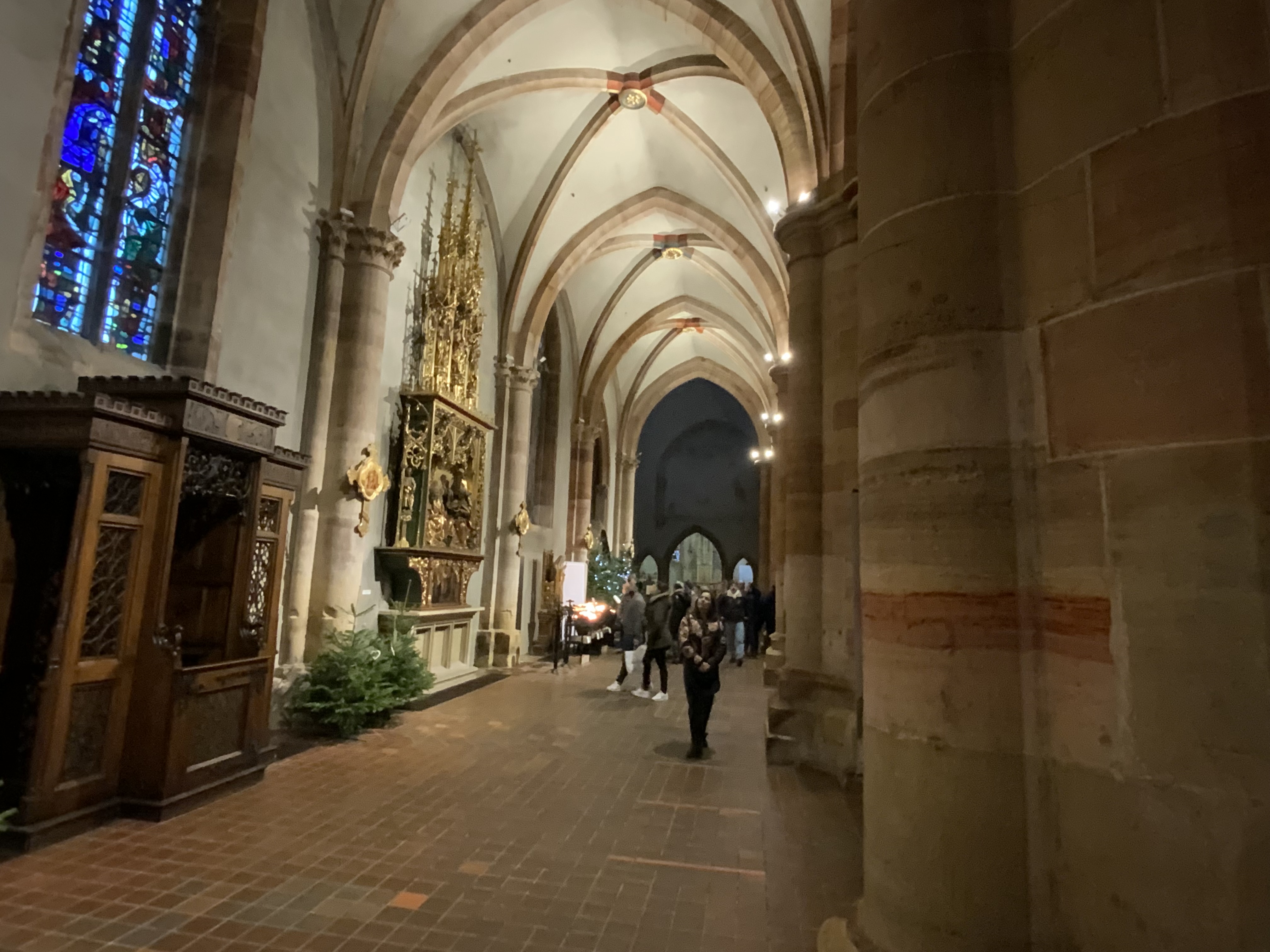 Grande vieille église. Beau et impressionnant de l’extérieur, un peu plus simple à l’intérieur. Deux orgues, de beaux vitraux. Un lieu de réflexion. Et deux cigognes nichent et claquent sur le toit.