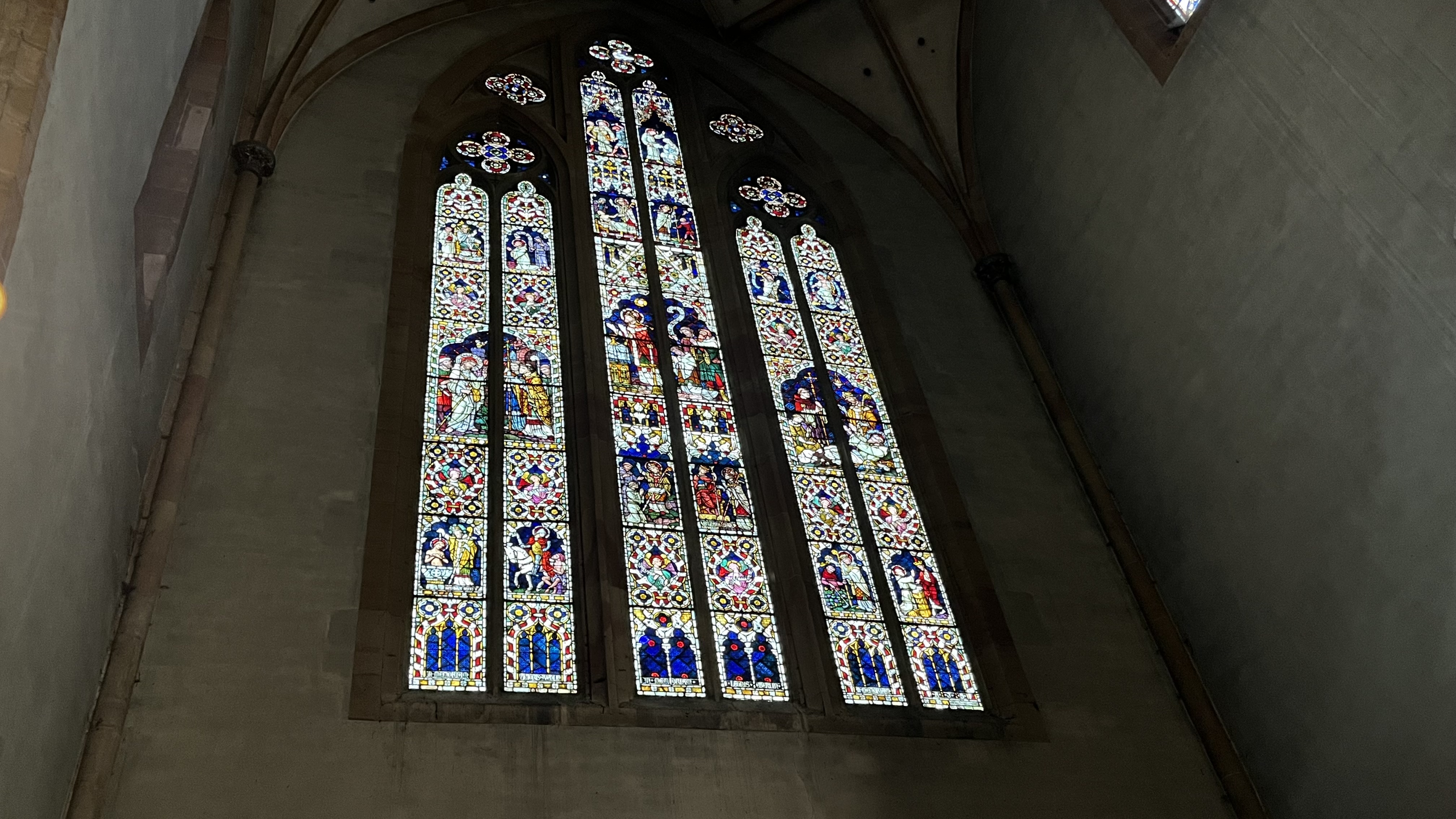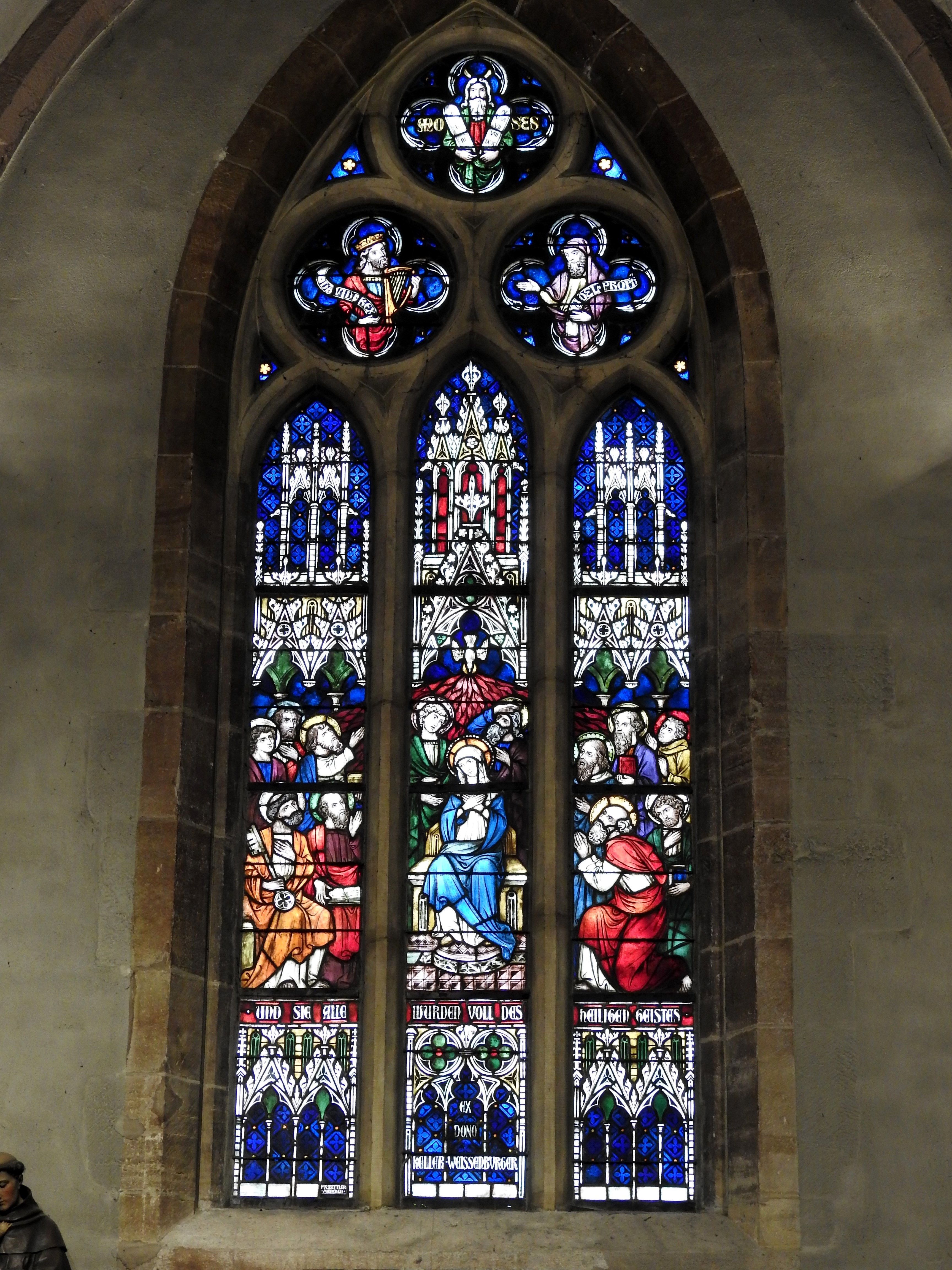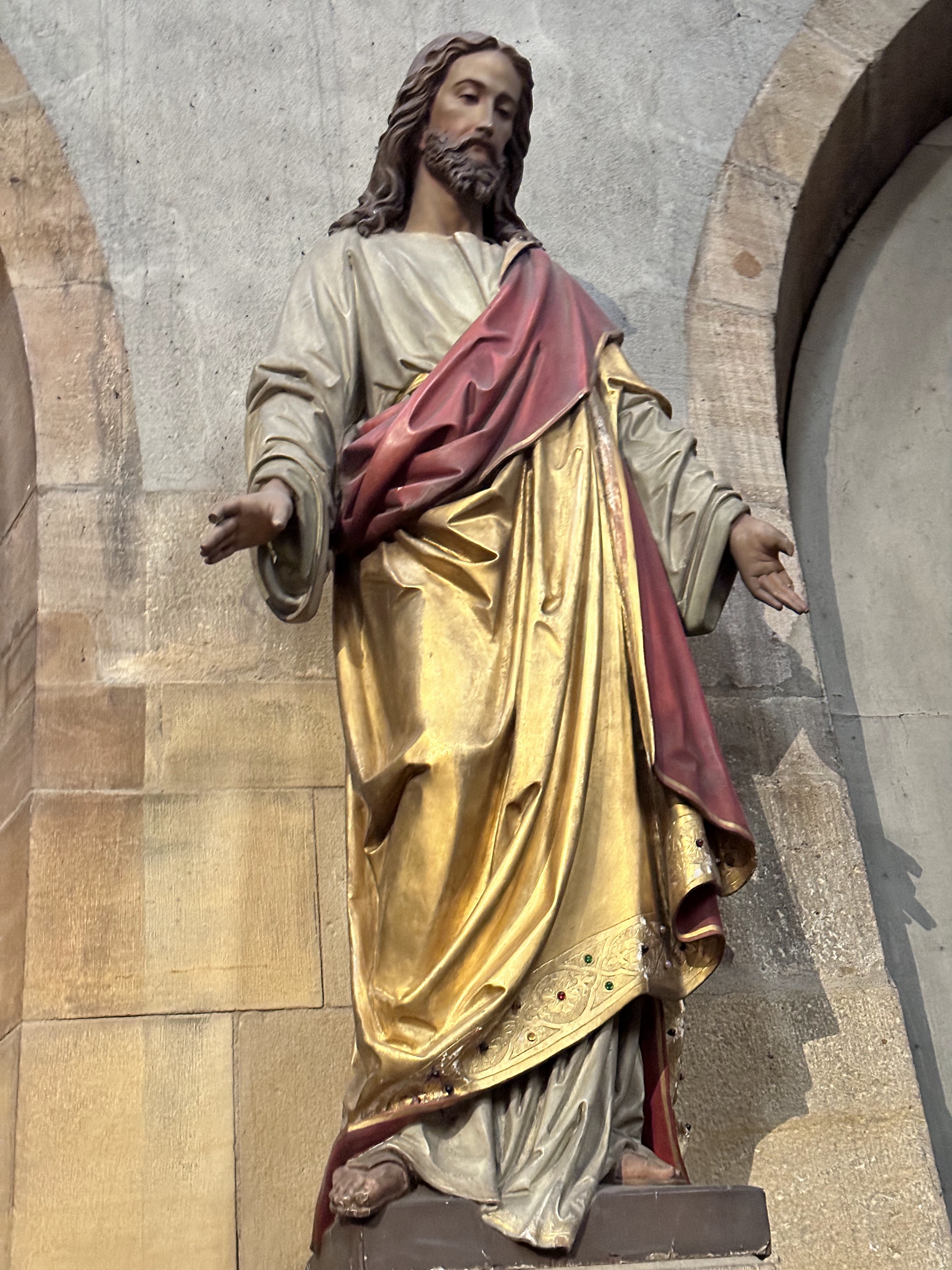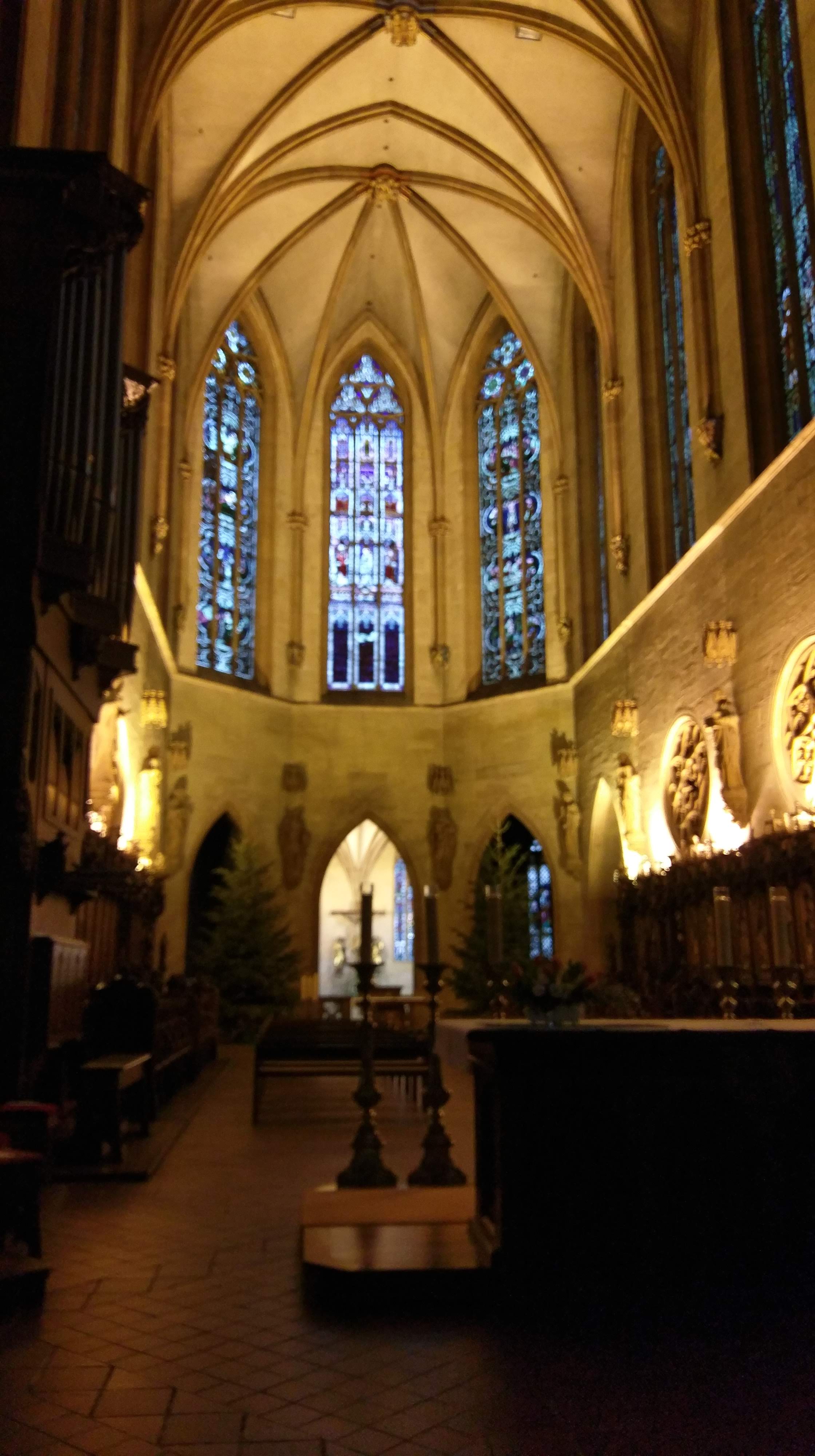 Grande vieille église. Beau et impressionnant de l’extérieur, un peu plus simple à l’intérieur. Deux orgues, de beaux vitraux. Un lieu de réflexion. Et deux cigognes nichent et claquent sur le toit.