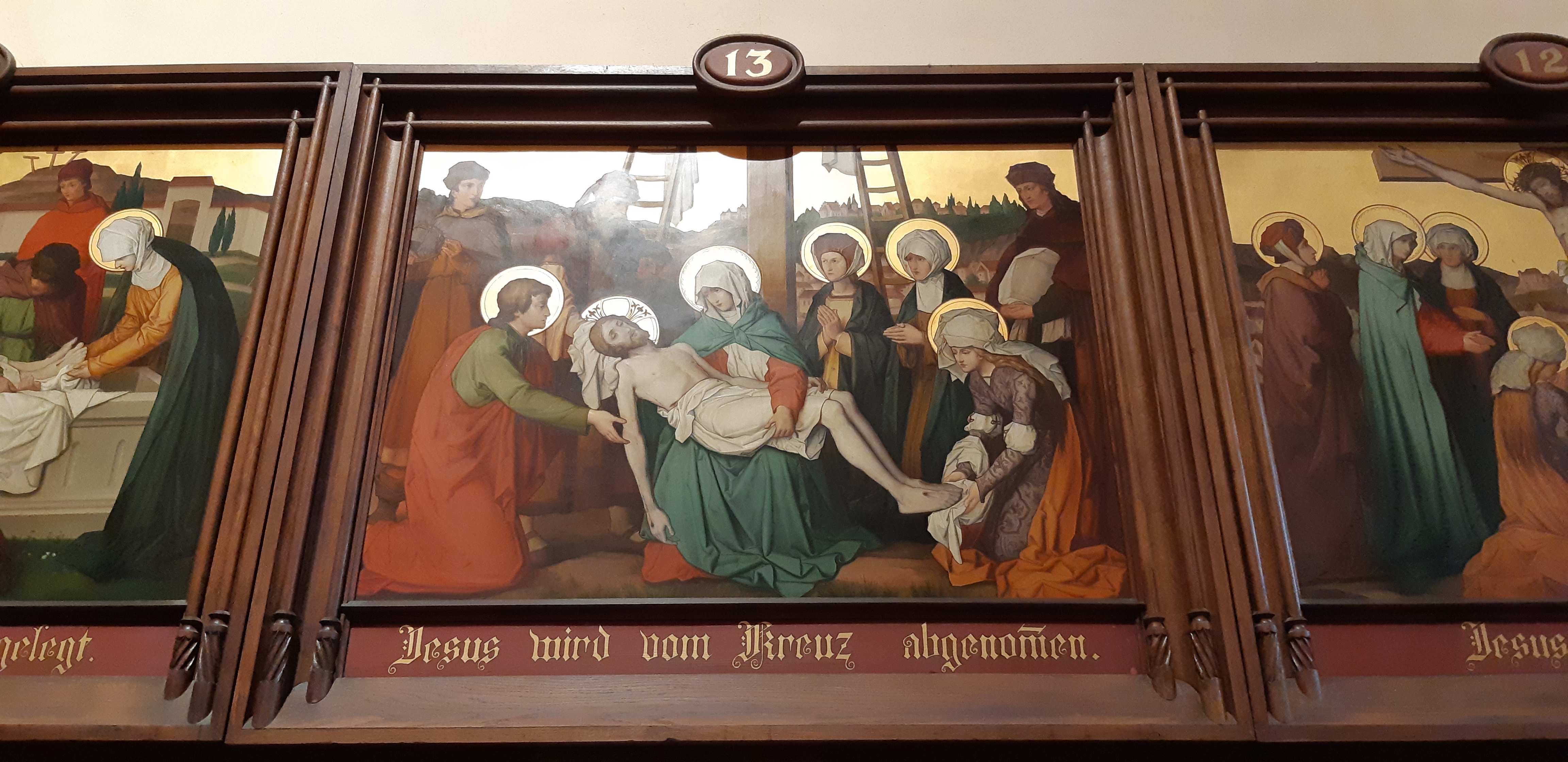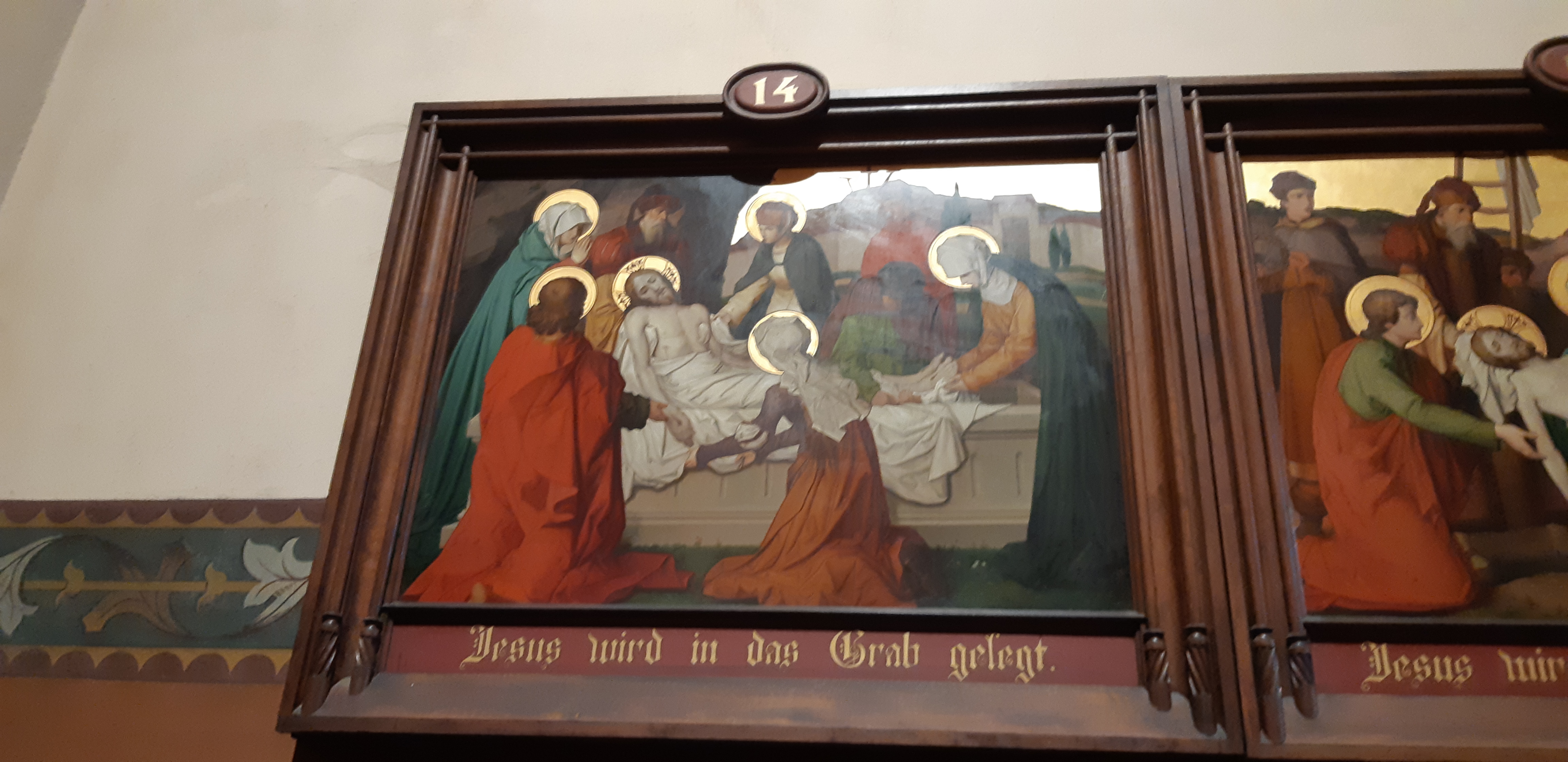 Le point fort d'une chaude journée d'été est l'environnement frais et calme pour les petits enfants. Oui, vous avez bien lu, car l'église dispose d'un coin lecture avec des histoires adaptées aux enfants sur la vie et l'œuvre de Jésus. Une excellente idée, même si je suis moi-même fondamentalement critique à l’égard de l’Église.