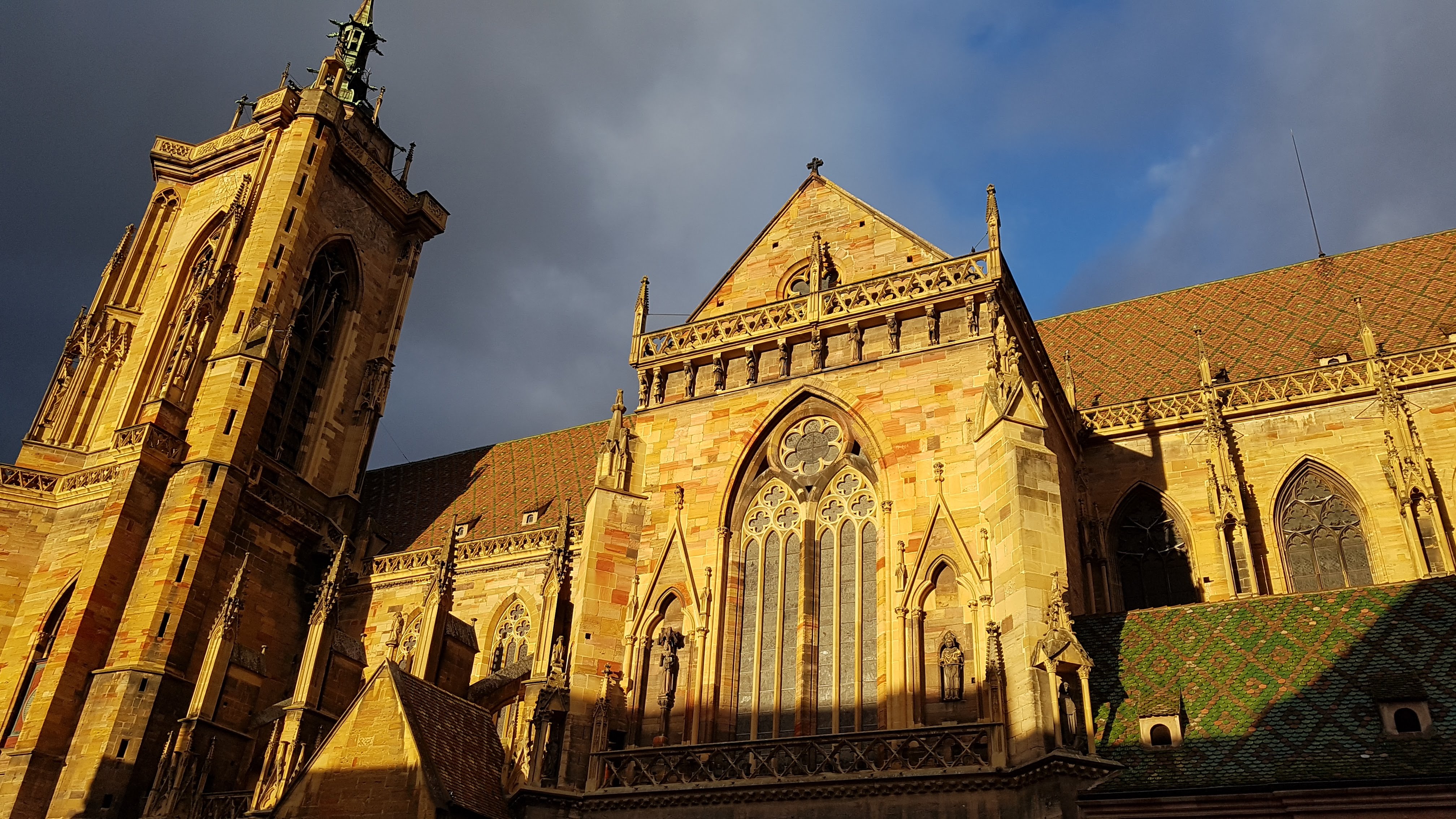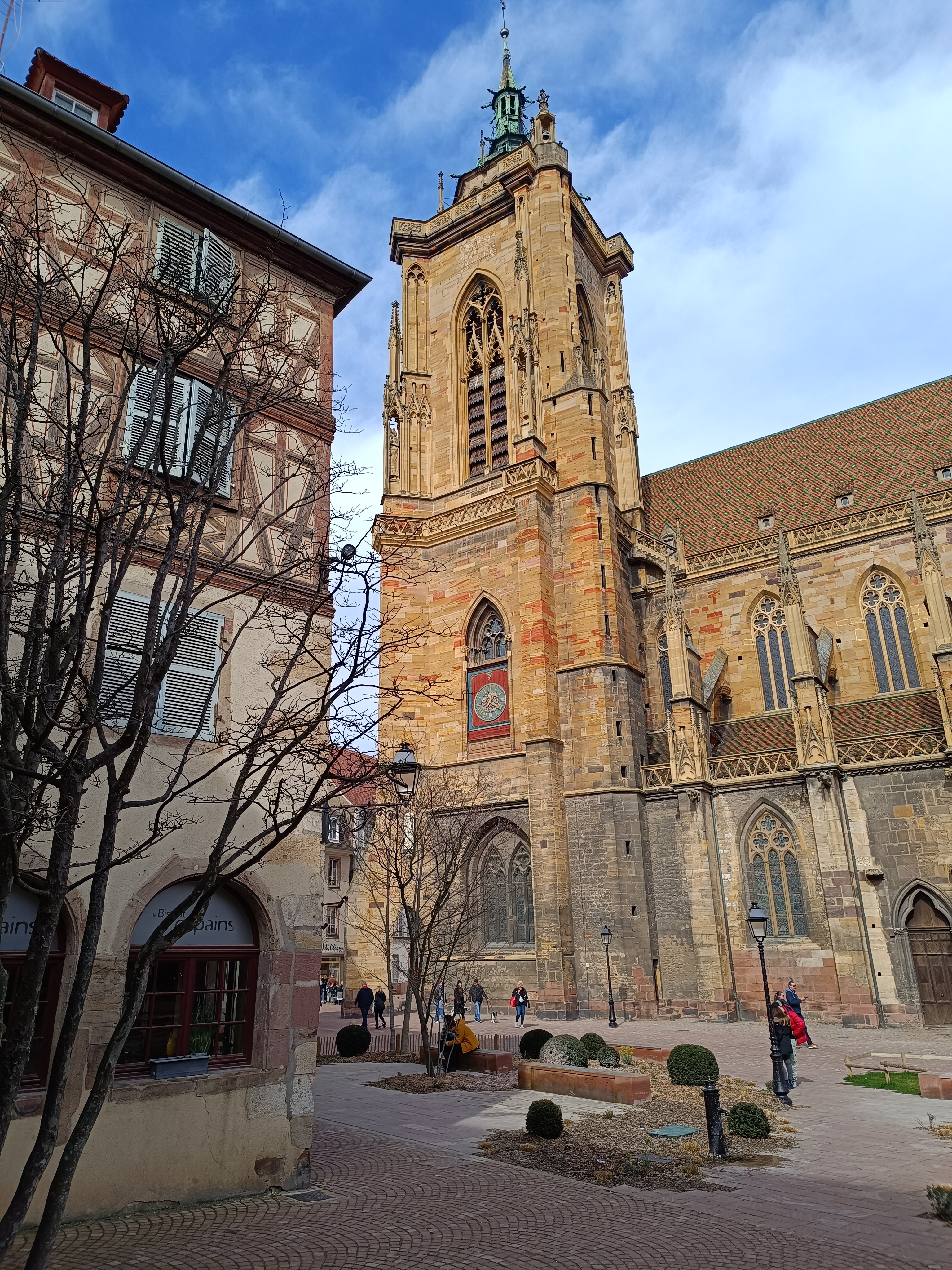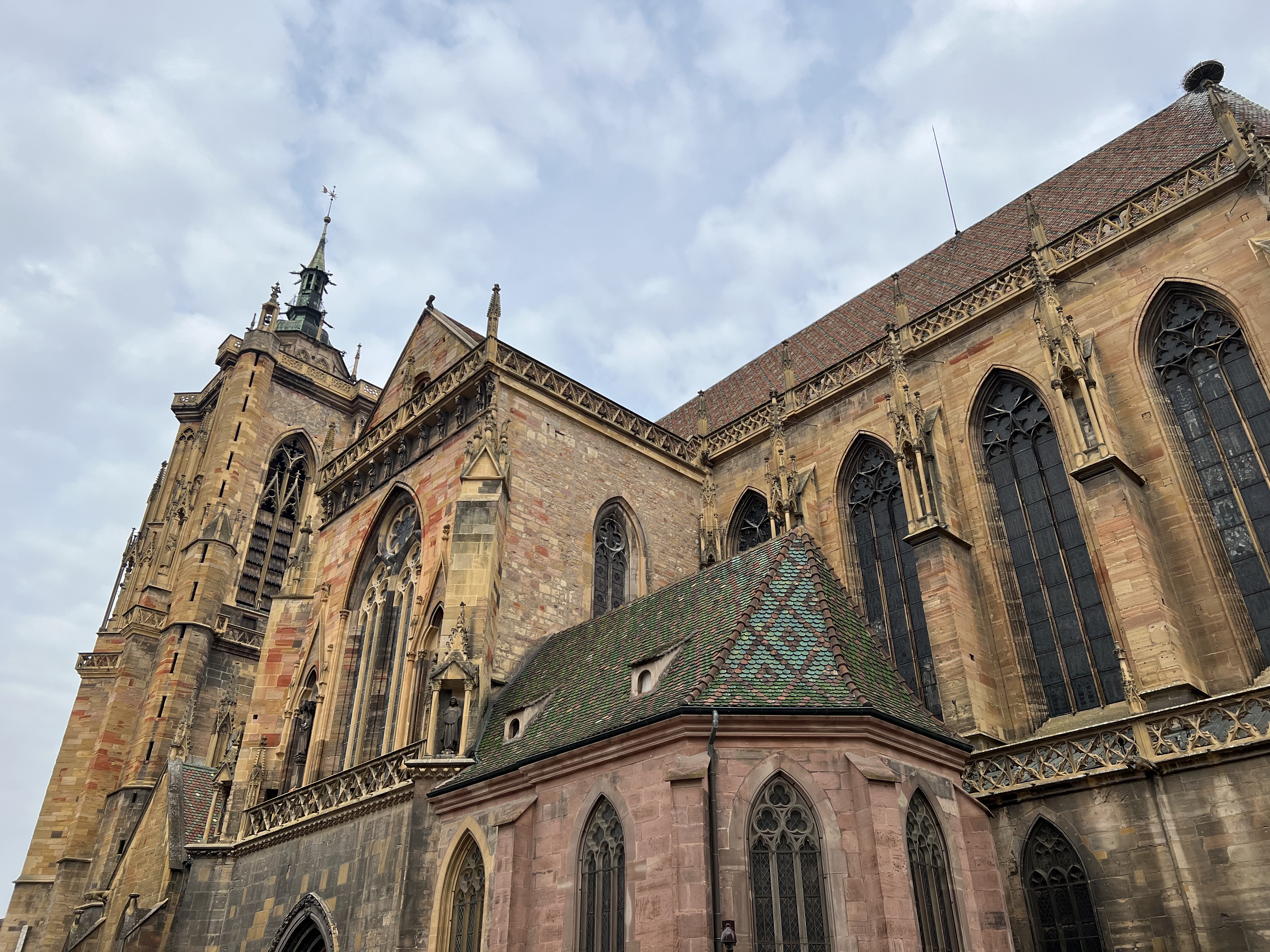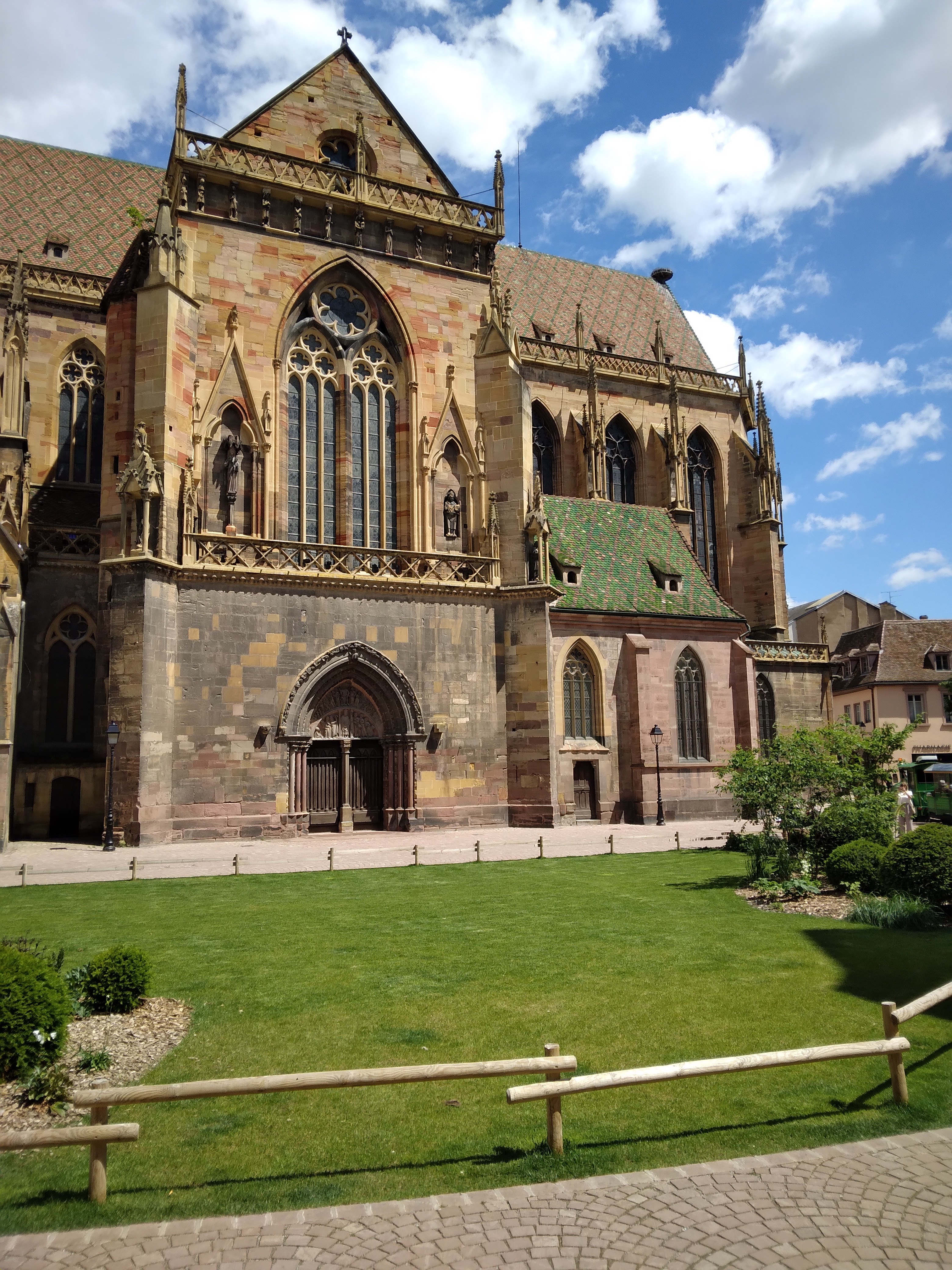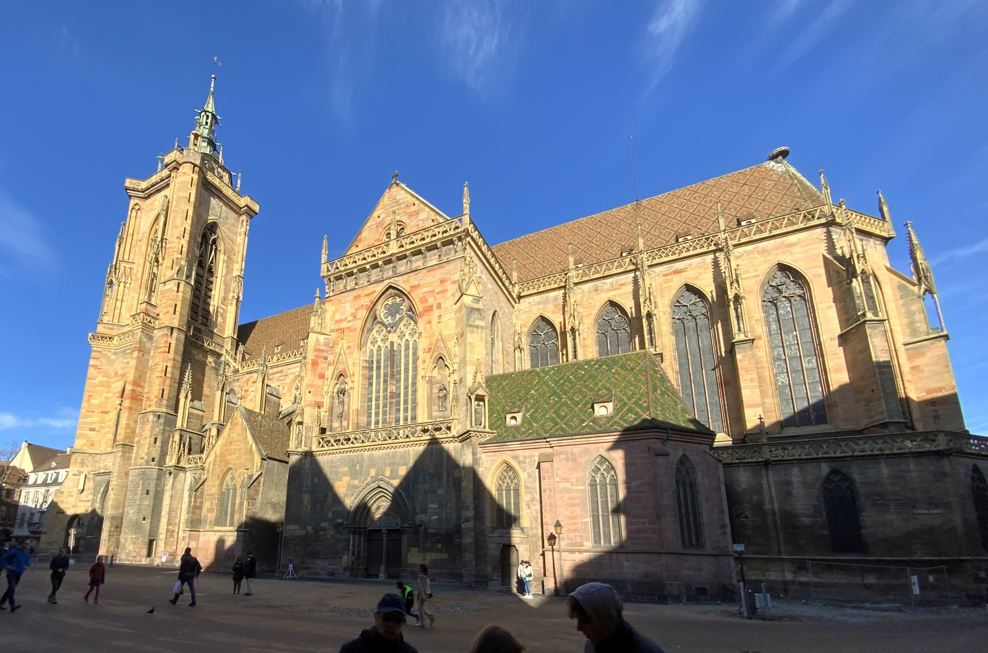Une cathédrale assez jolie, qui ne verse pas dans l’ostensible. Une toiture originale, verte, et un édifice en plein cœur du quartier médiéval de Colmar.