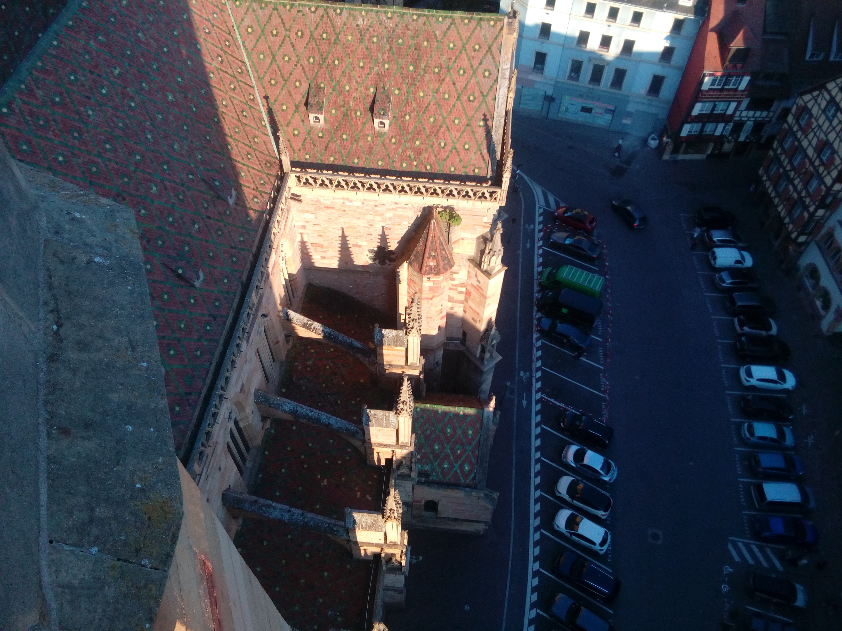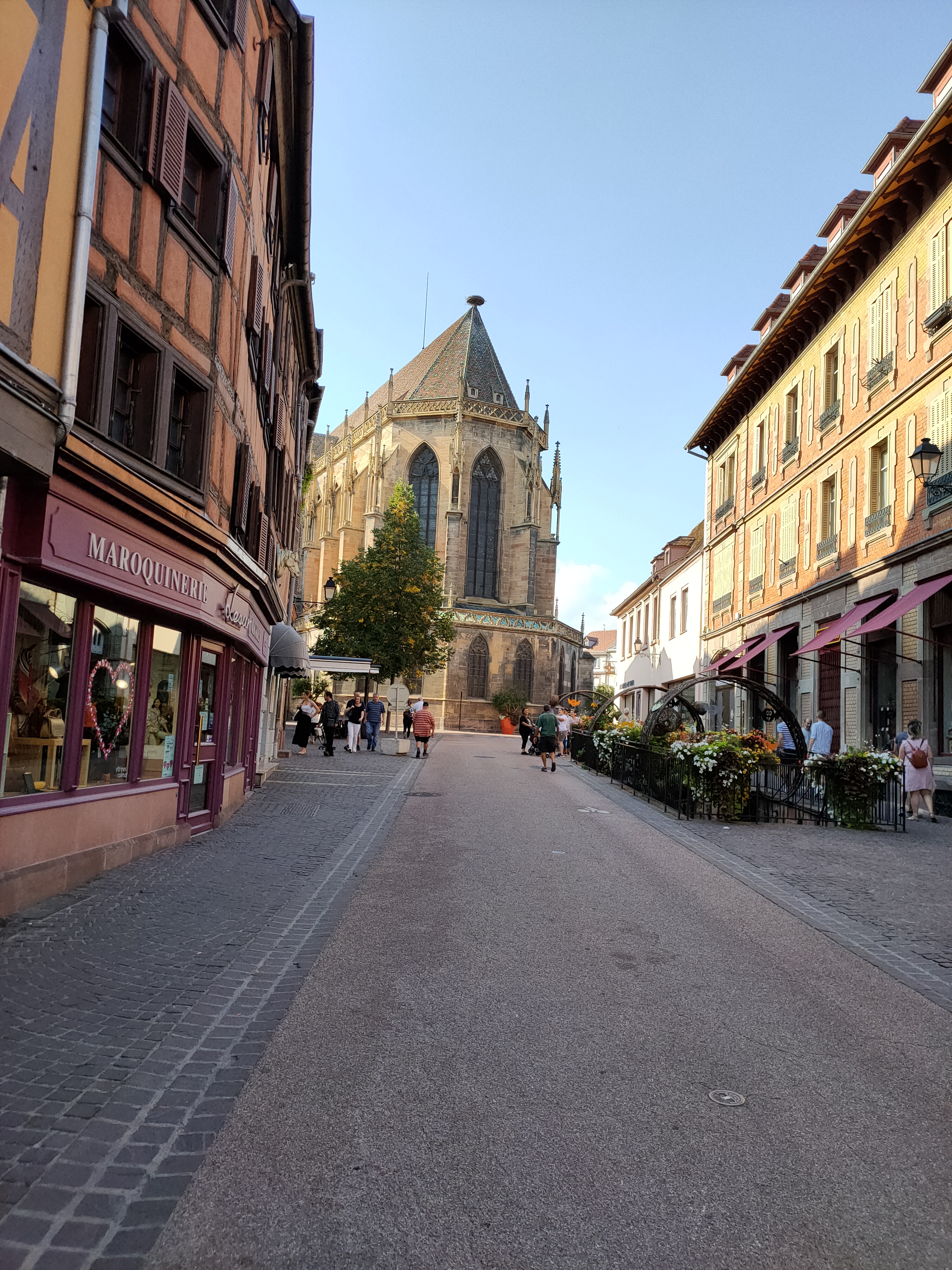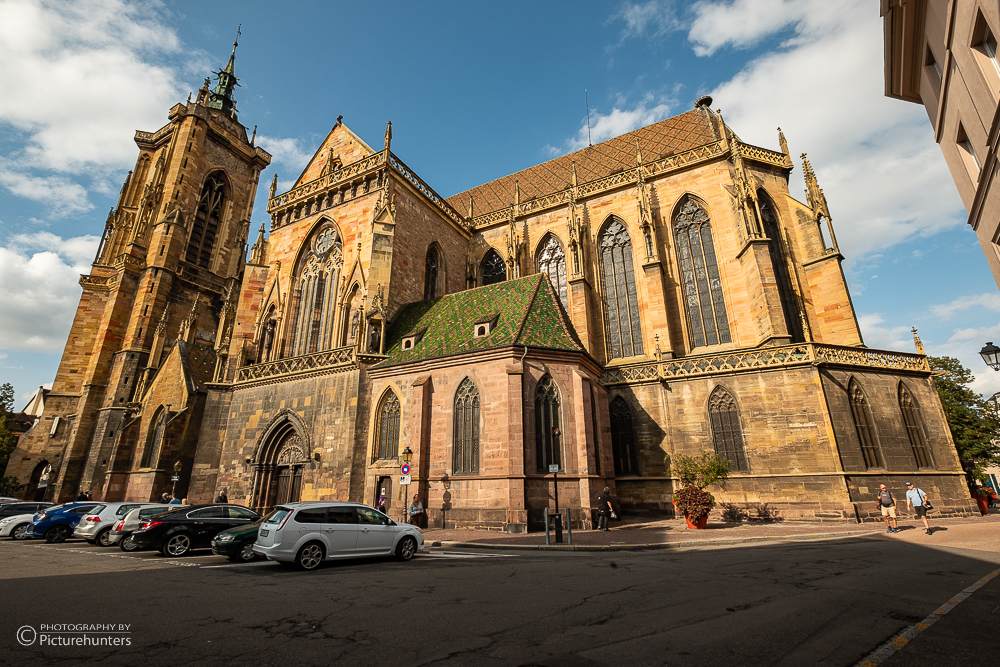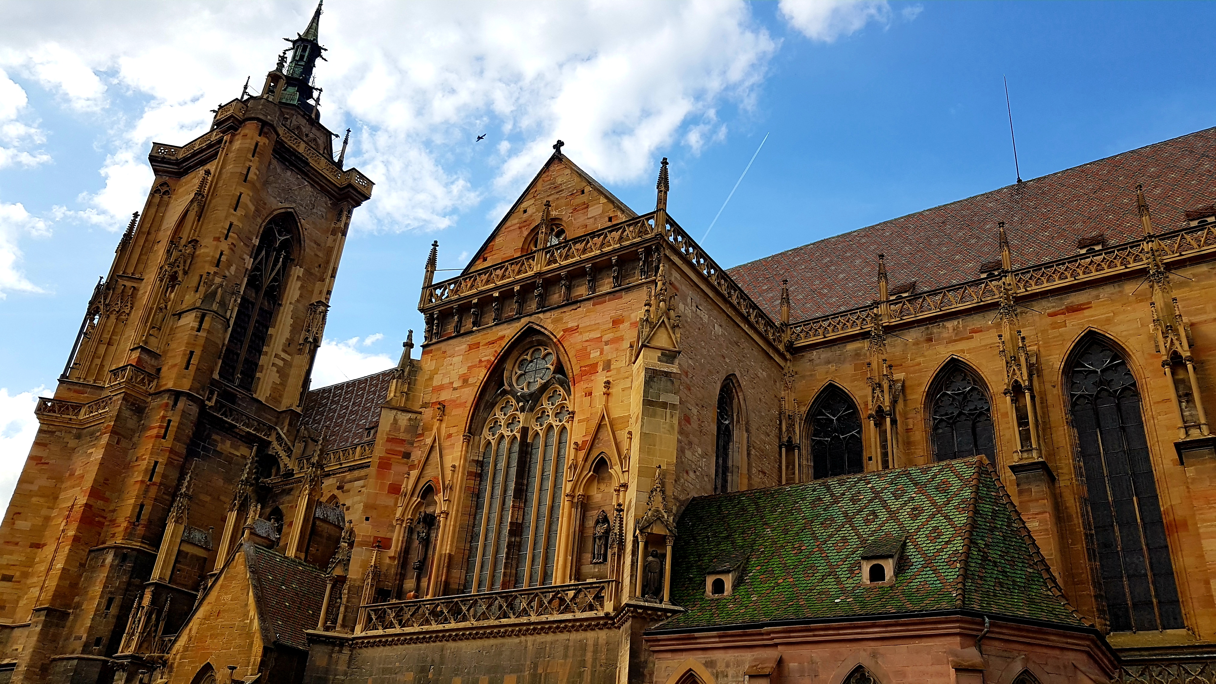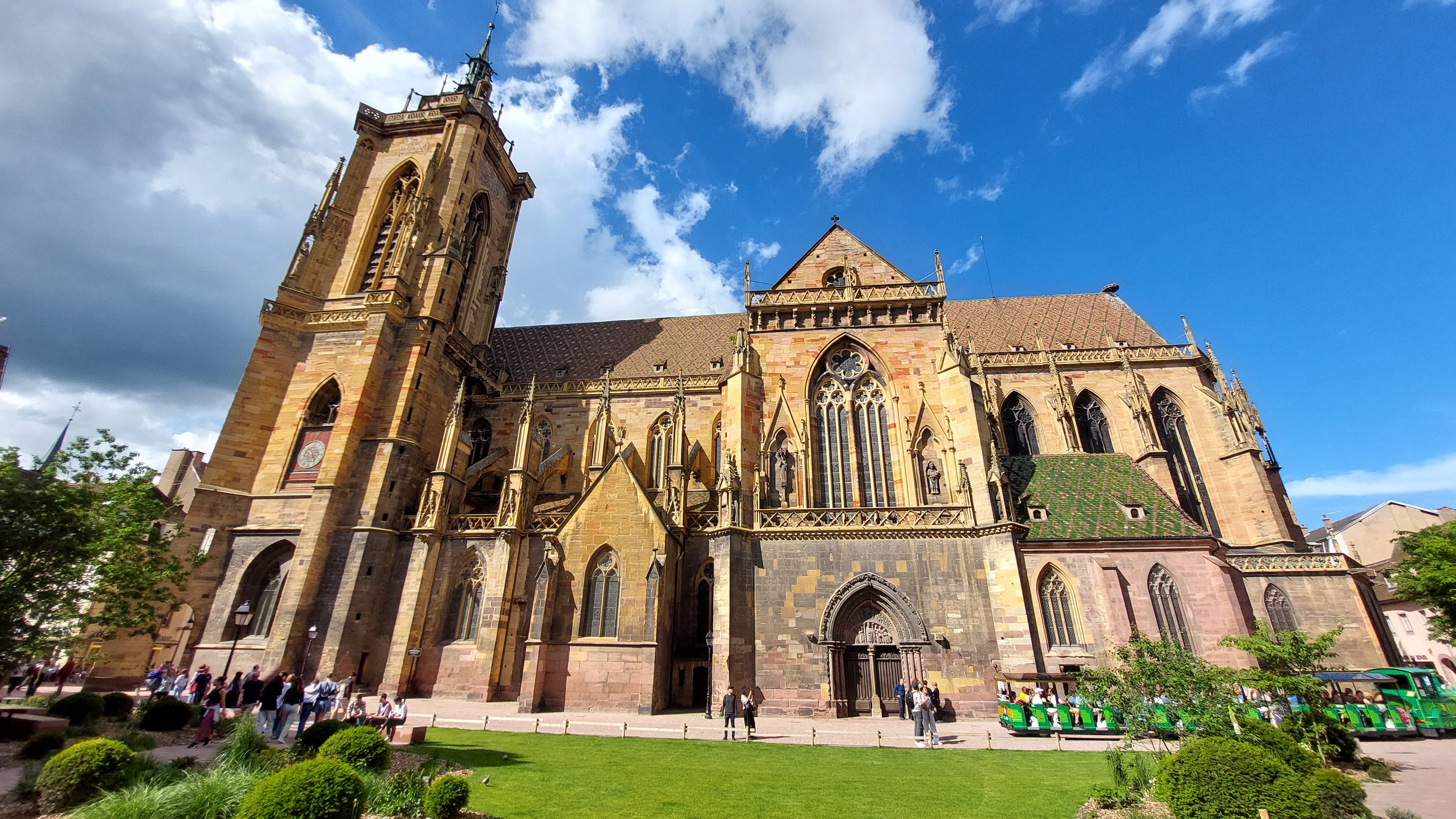 Une cathédrale assez jolie, qui ne verse pas dans l’ostensible. Une toiture originale, verte, et un édifice en plein cœur du quartier médiéval de Colmar.