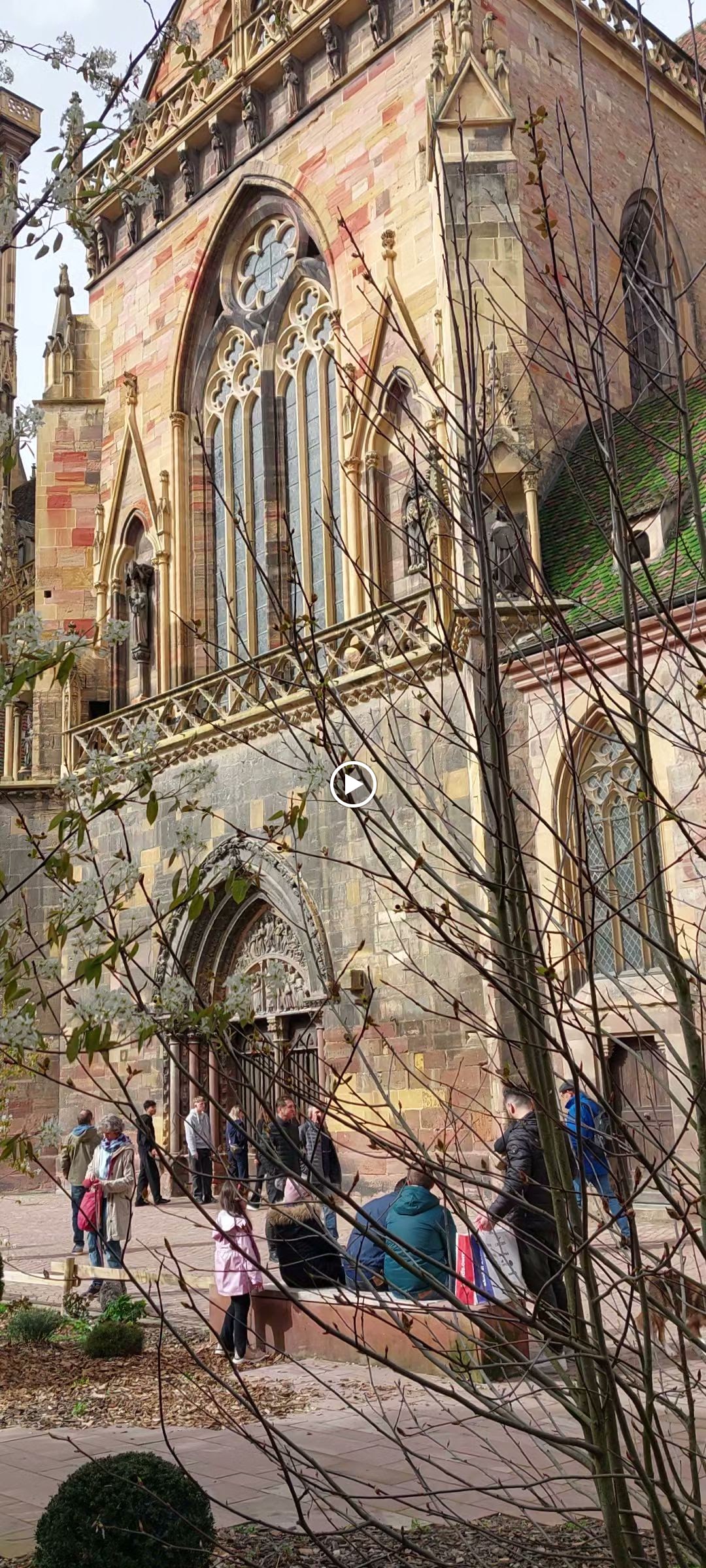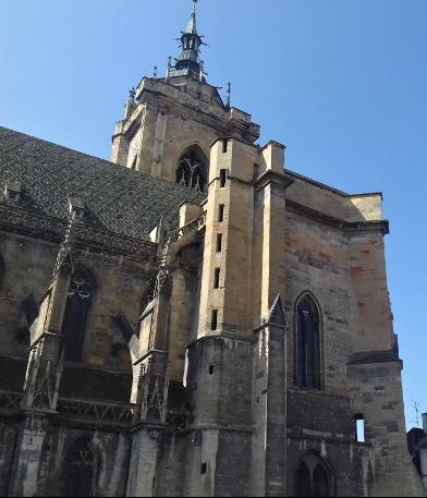 C'est une magnifique église gothique la cathédrale de Colmar où les catholiques pratiquants se recueillent et les touristes entrent pour filmer ou prendre des photos de l'endroit...