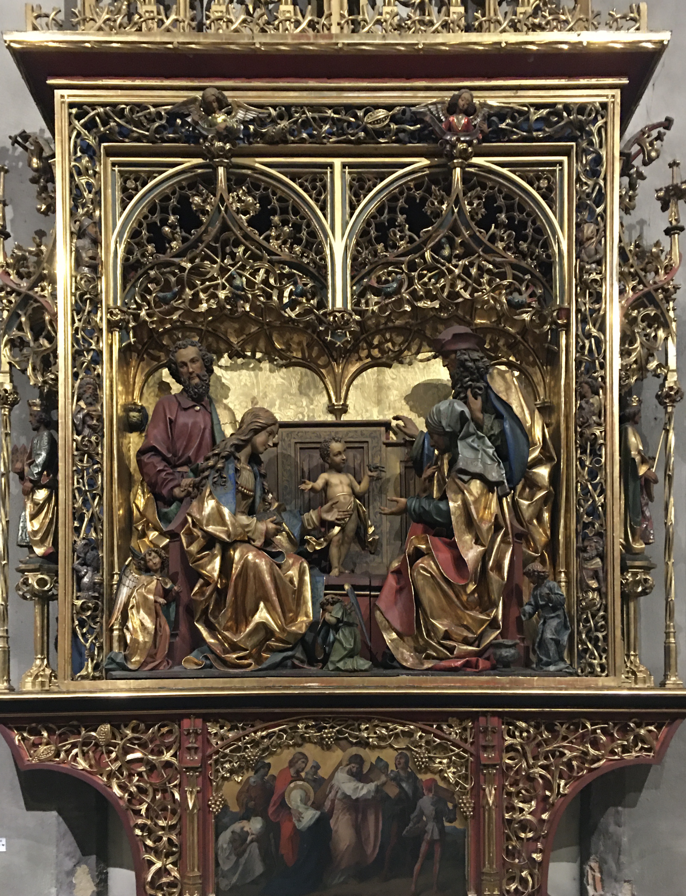 Très bel édifice de très très belles peintures sur bois dont une absolument magnifique prés du cœur. Plusieurs triptyques en bois sculpté d'une grande beauté. Nous sommes tombé en plein office pendant notre visite, nous avons essayé comme de nombreux visiteurs d'être le plus discret possible. Ce que j'ai vraiment adoré le plus lors de ma visite est d'avoir vu un nid de cigogne aménagé au fait de la collégiale qui avait fait installer une plate-forme à l'attention des volatiles, chapeau c'est top 👍👍