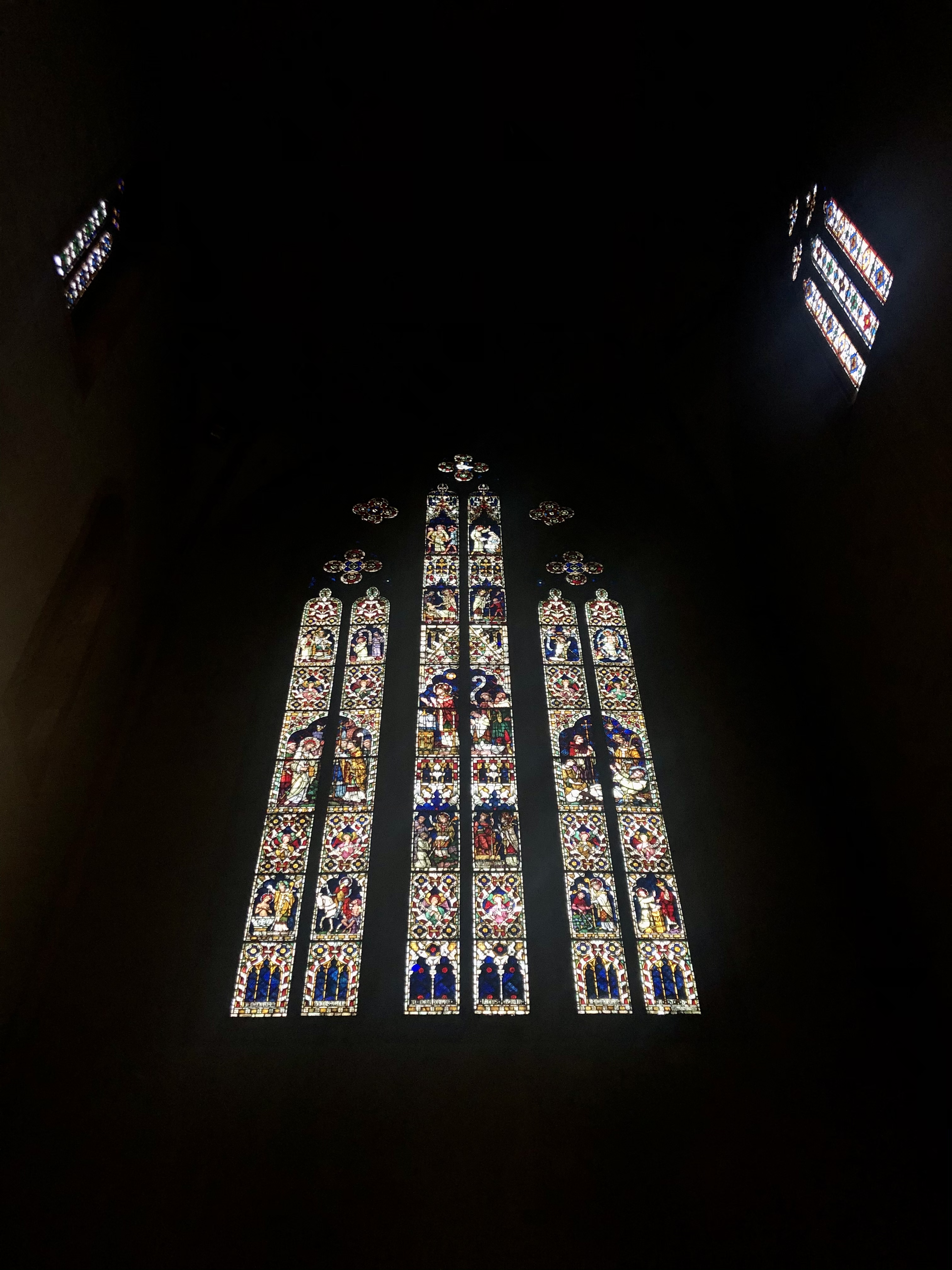 Visite sans entrée. Il y avait beaucoup d'activité ici. C'est bien qu'il y ait des panneaux d'information. Nous avons trouvé qu'il faisait assez sombre. Très belles fenêtres colorées.