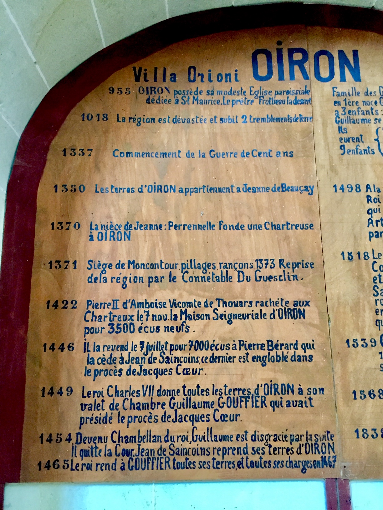 A voir en complément de la visite du château, leurs histoires sont intimement liées. Les deux édifices forment un ensemble architectural visible de loin, leurs histoires sont indissociables et cette église abrite quelques chefs-d’œuvre. Édifiée à partir de 1518, en même temps que le château d'Oiron, le projet de cette église fut l'initiative de Artus Gouffier, Chambellan de Louis XII et Hélène du Hangest, son épouse ; la fonction de cet édifice était double, chapelle du château et église paroissiale, l'ancienne tombant en ruines. Artus Gouffier décède peu de temps après le début des travaux et son épouse continuera la réalisation de ce projet jusqu'en 1550. Somptueux monument funéraire de la famille des châtelains, les gisants en marbre sont magnifiques, de même que les chapelles. Le retable est remarquable.