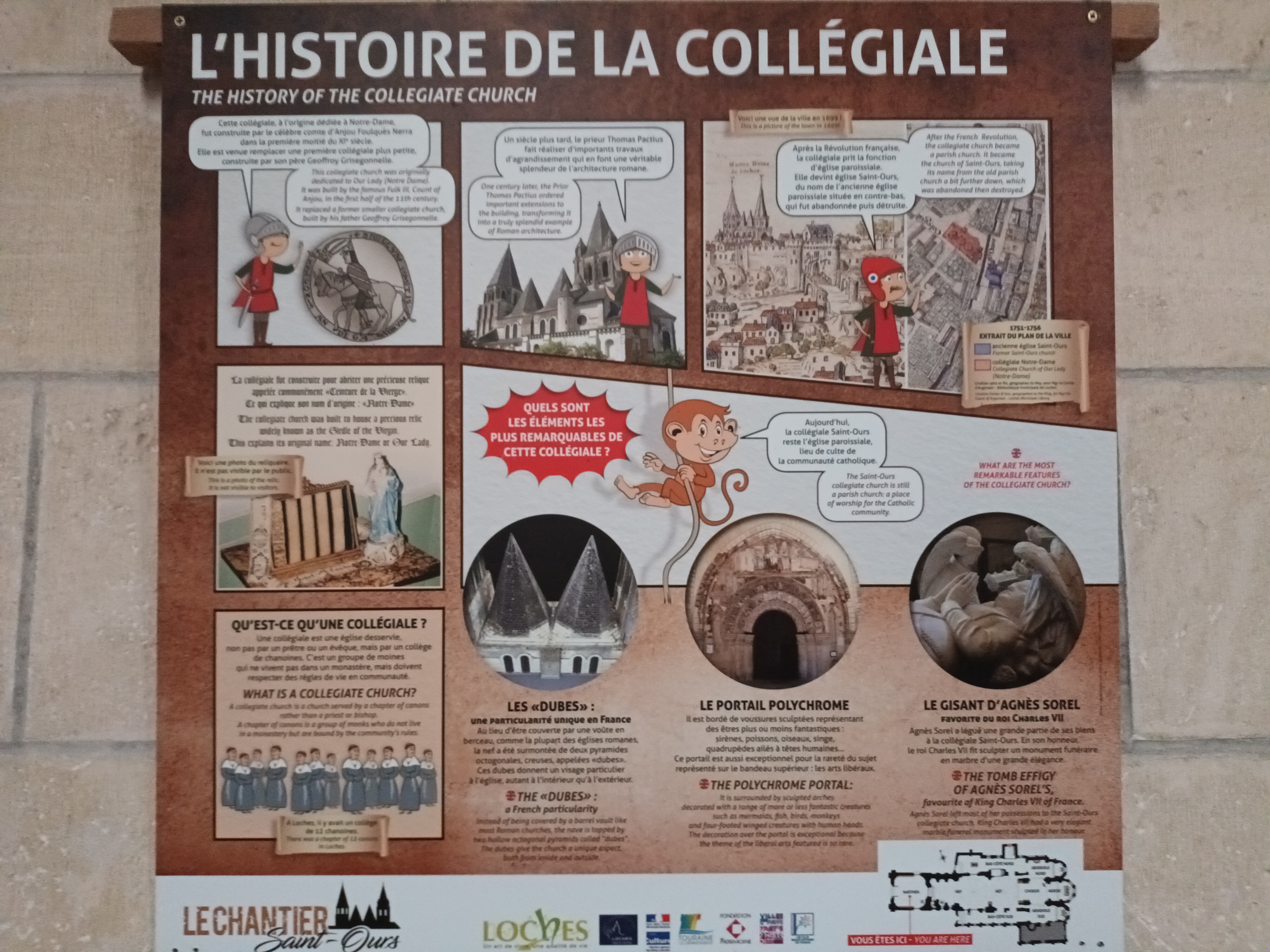 Superbe église très ancienne au sommet de la vieille ville à côté du logis royal. Architecte atypique. Il faut absolument y entrer et voir le tombeau d'Agnès sorel. Le portail d'entrée est également Superbe.