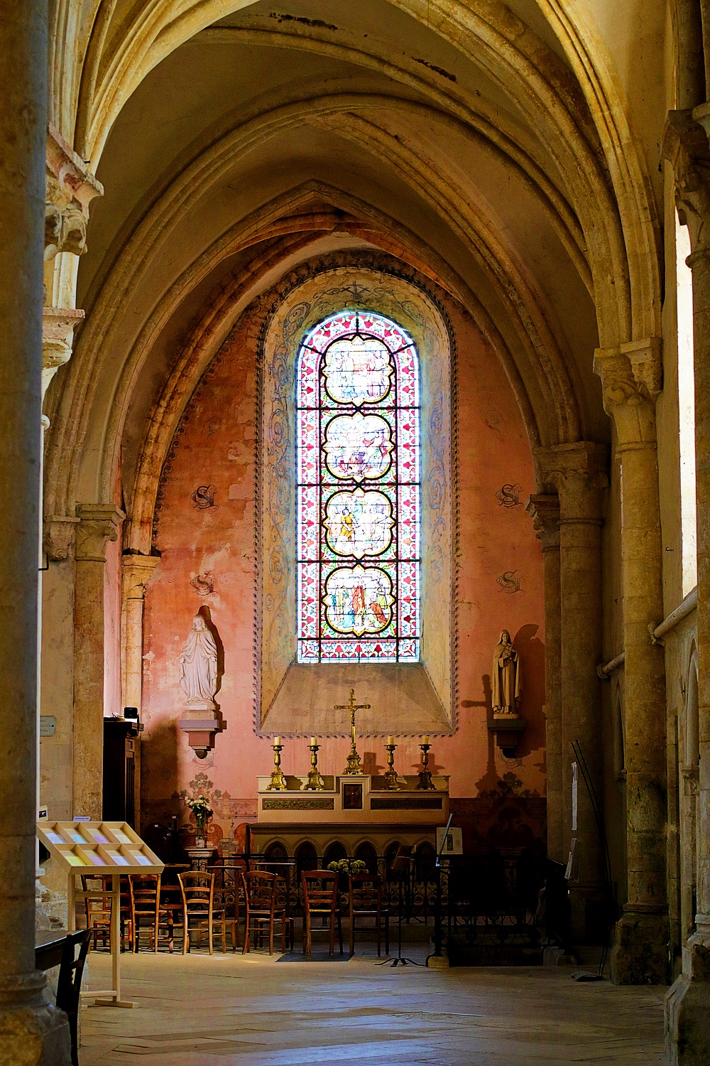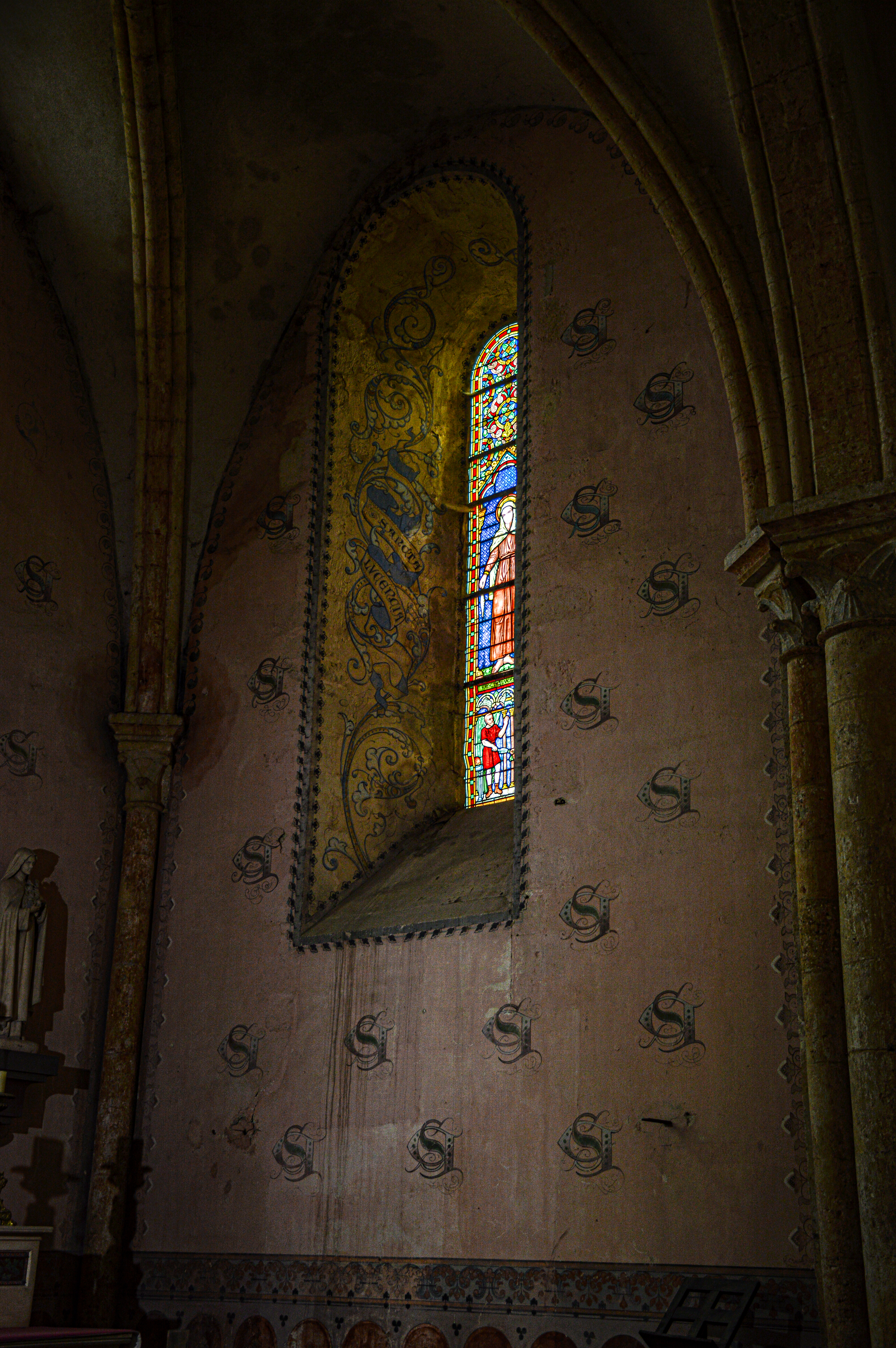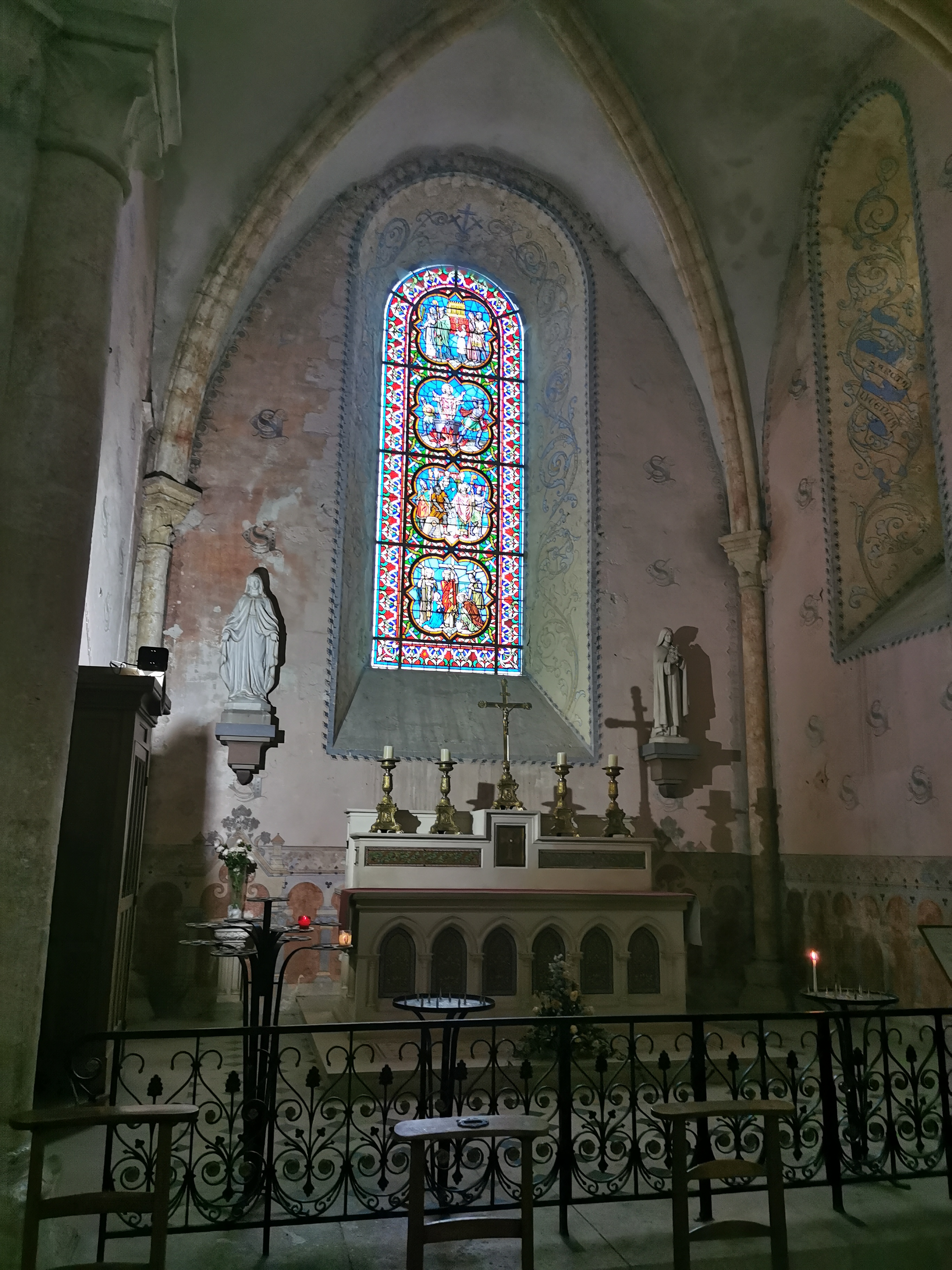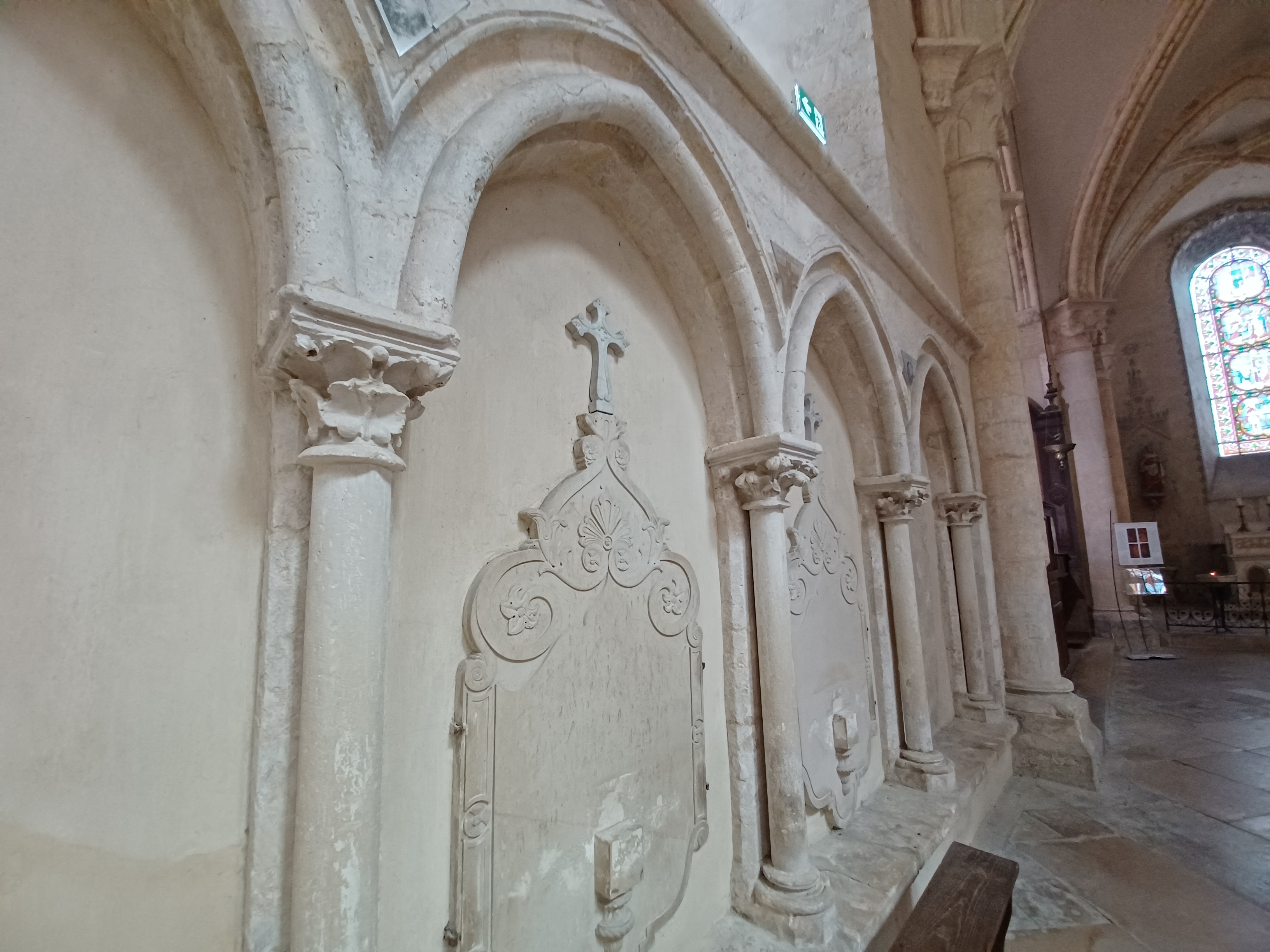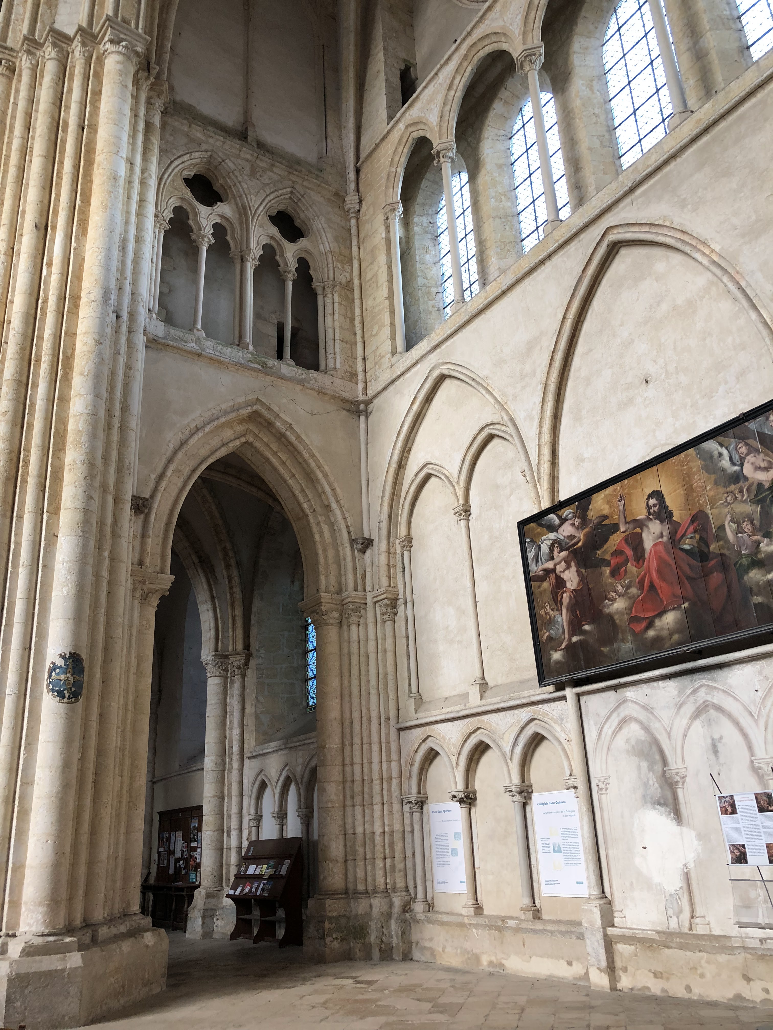 Collégiales très dépouillé à l'intérieur sauf sur les parties qui ce trouve derrière la nef ou il y a encore des décors sur les mur et autour des vitraux
