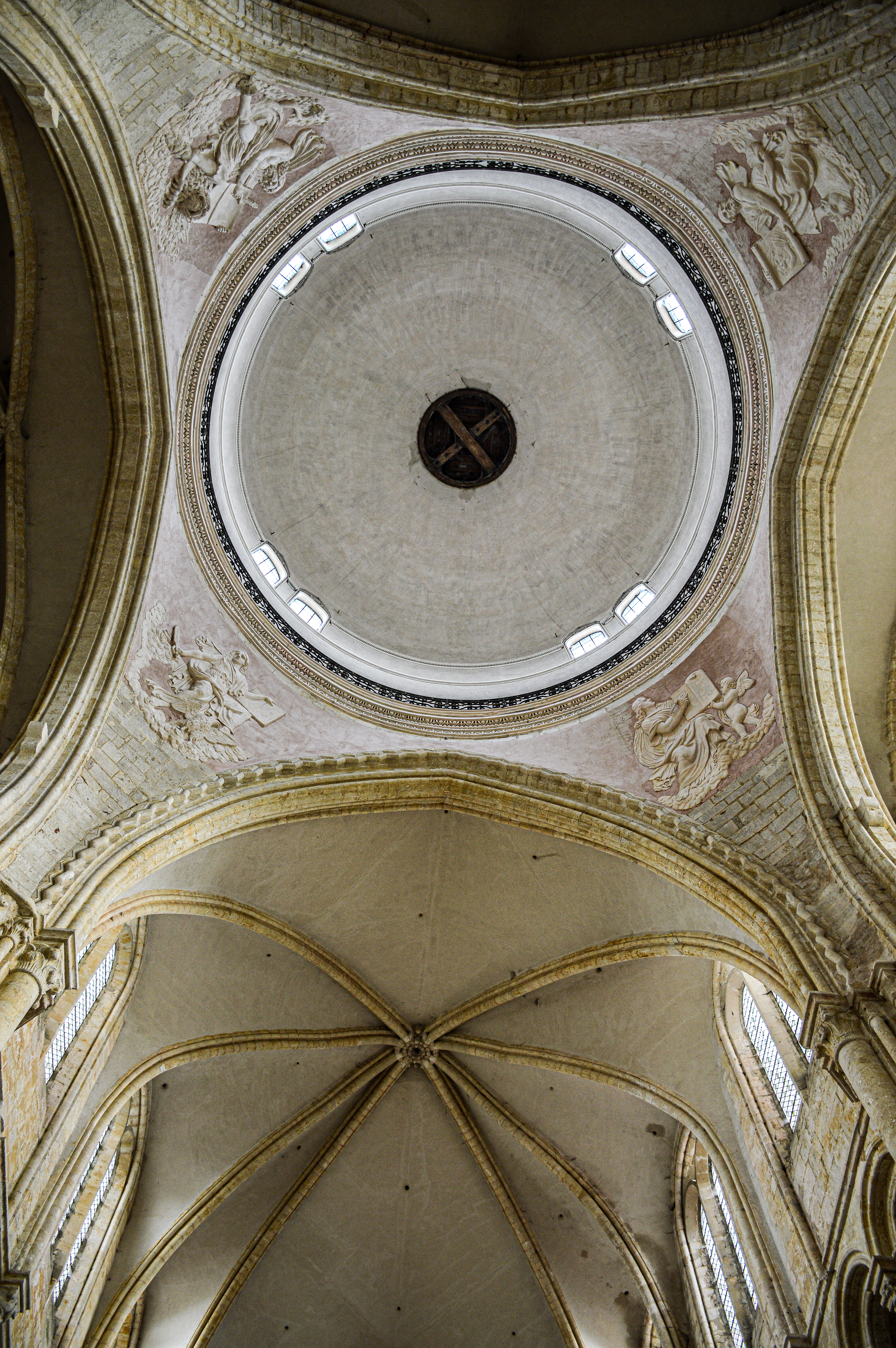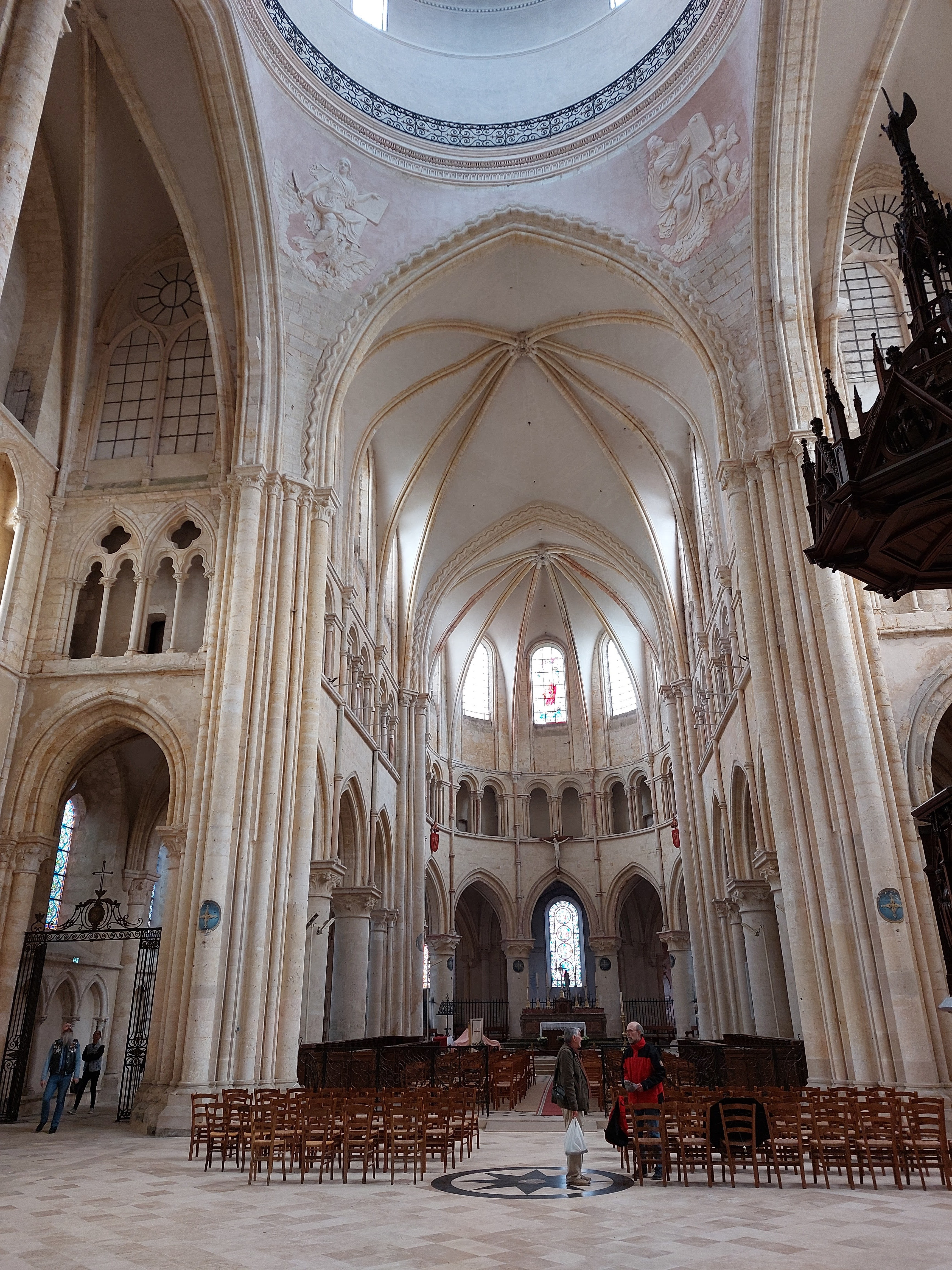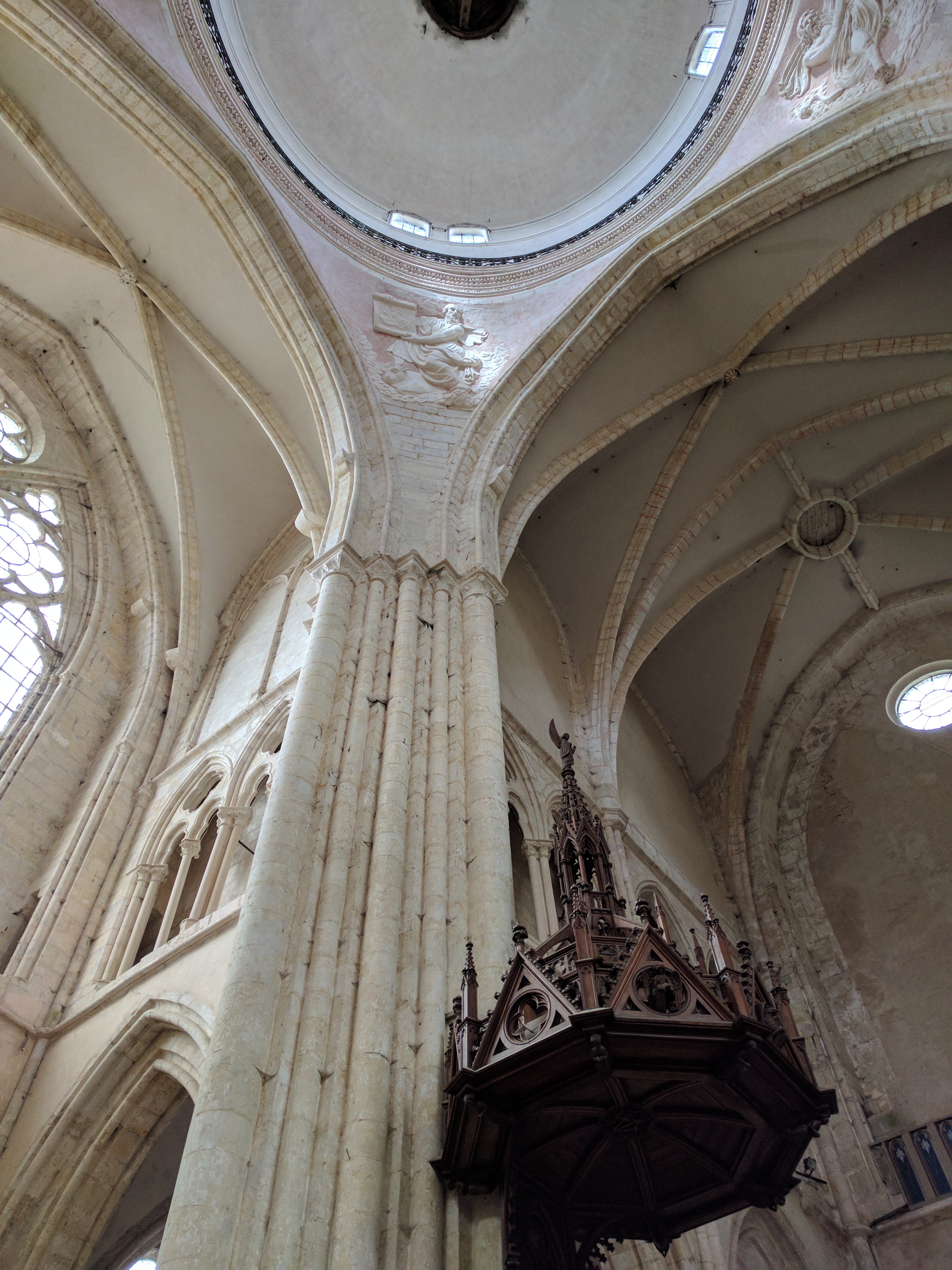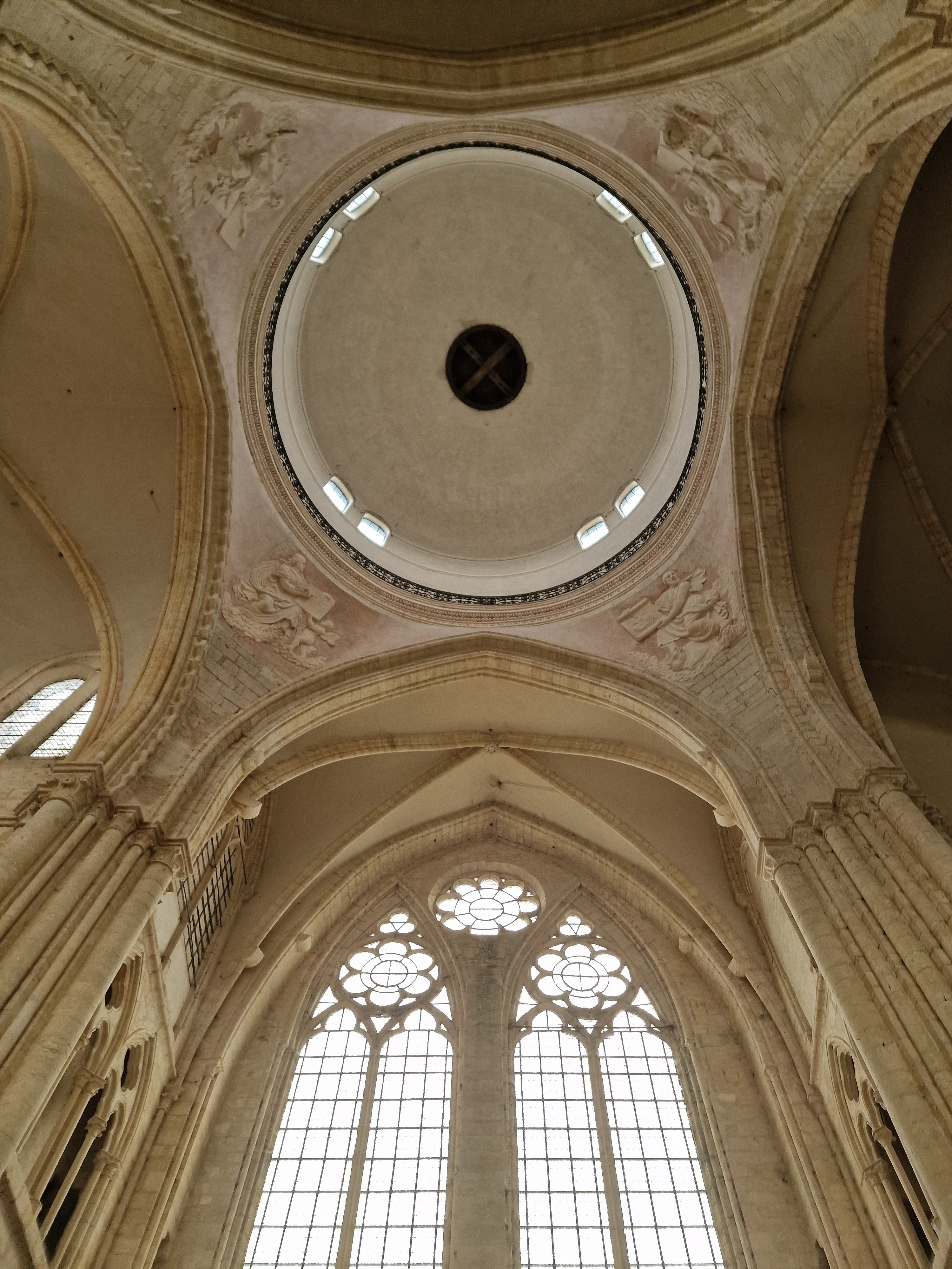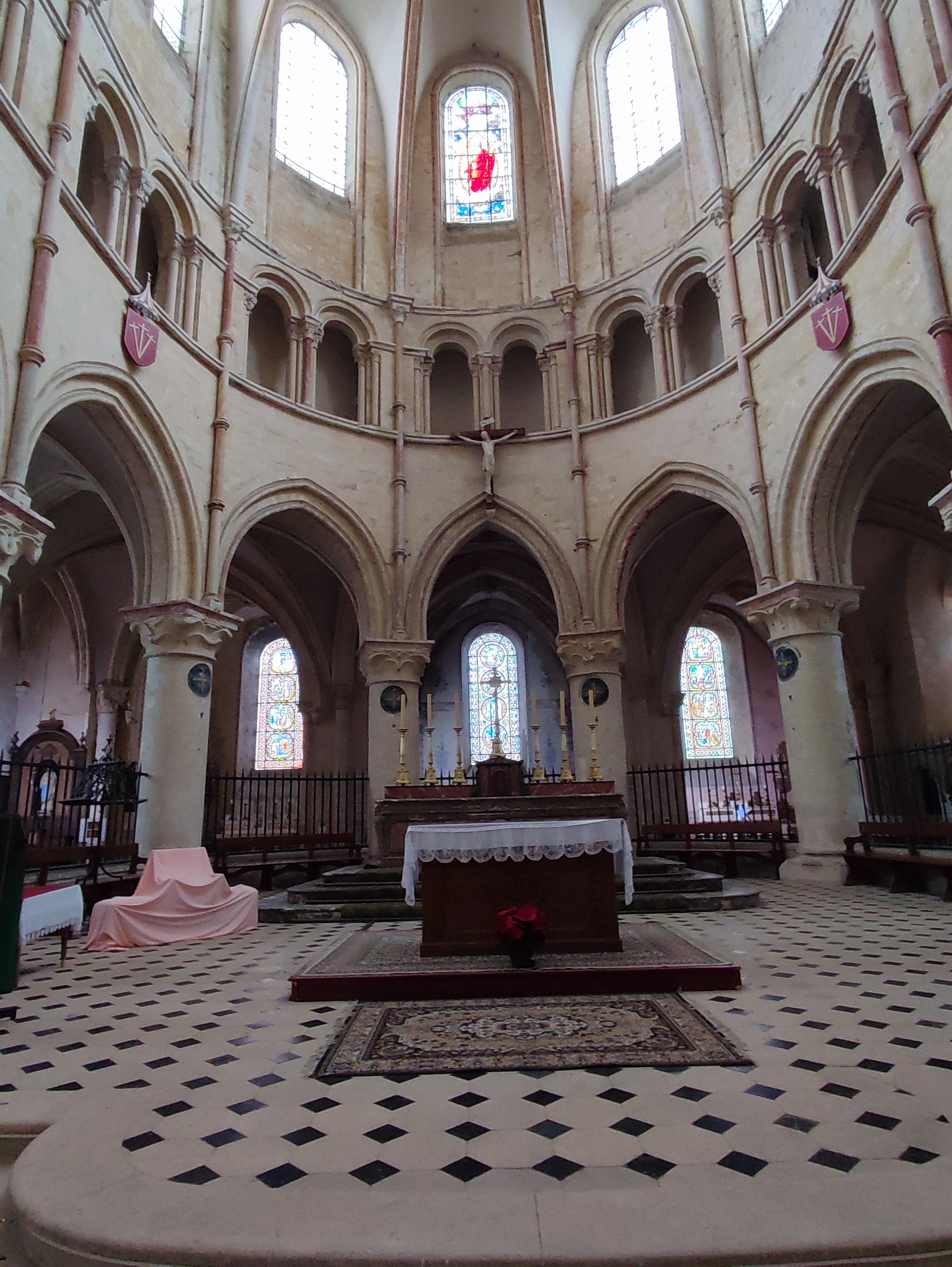 Collégiales très dépouillé à l'intérieur sauf sur les parties qui ce trouve derrière la nef ou il y a encore des décors sur les mur et autour des vitraux