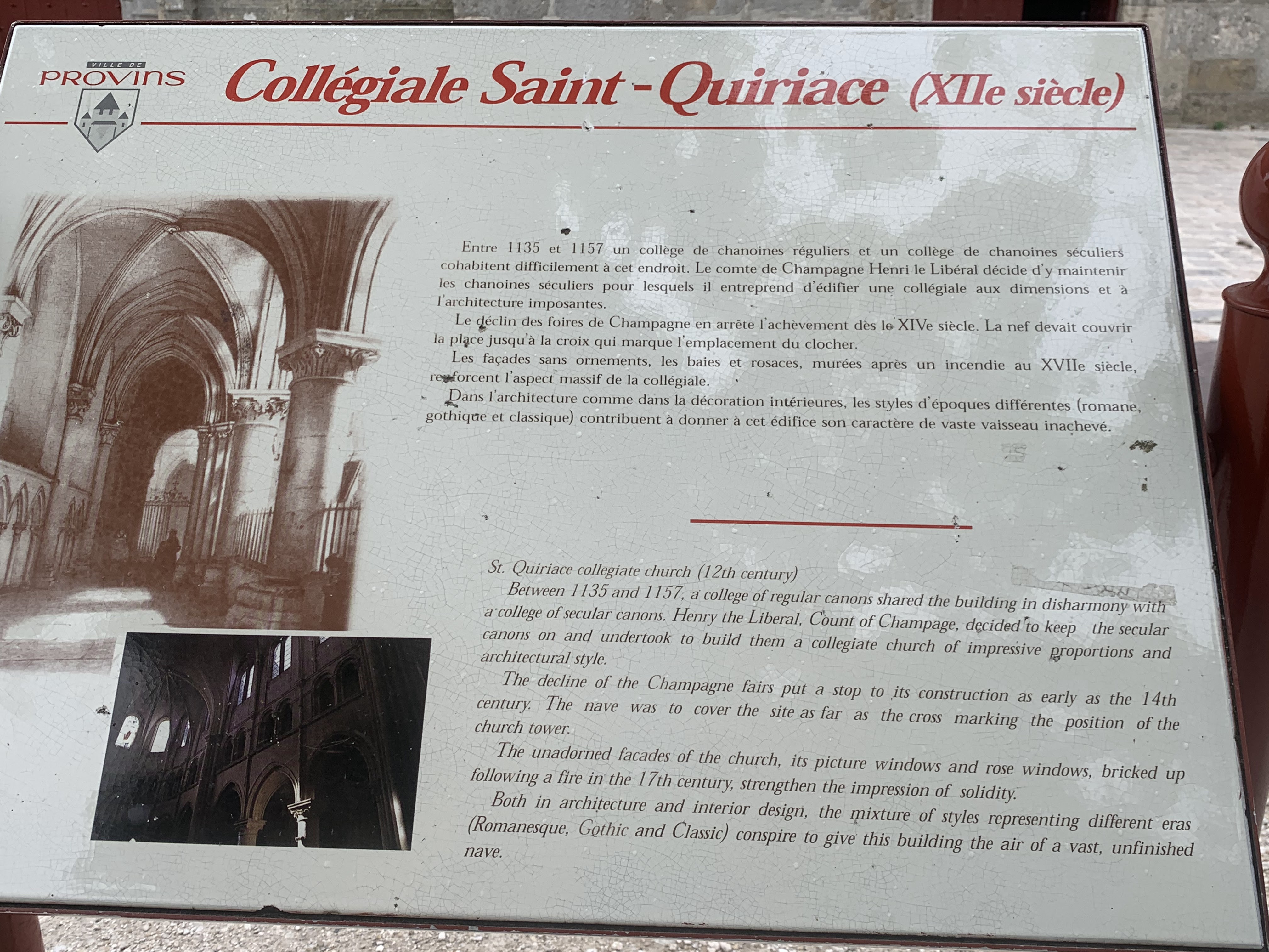 Il serait intéressant de signaler que la collégiale est fermée et il me semble qu'elle est comprise dans le prix du billet pass provins qui devient plutôt pass ton chemin...