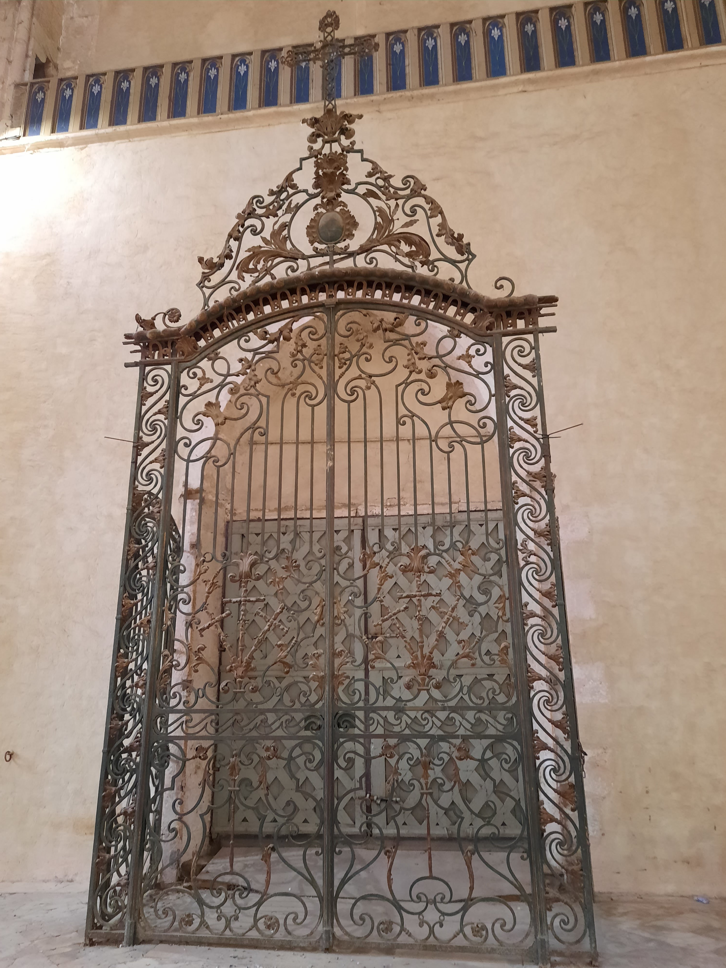 Église spacieuse, encore en activité et pas très bien entretenue. Dès l'entrée les vitraux sont noircis.