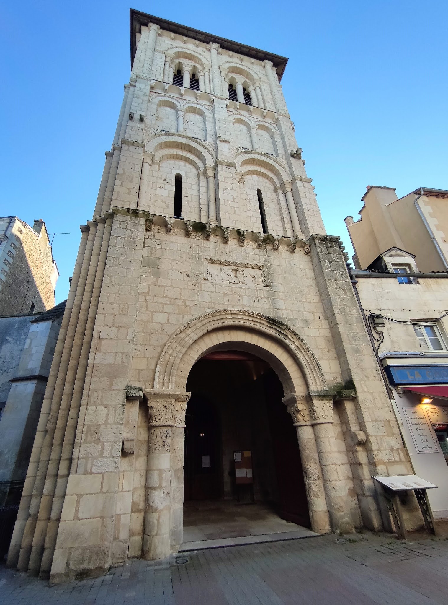 C’est l’une des églises prestigieuses de la ville de Poitiers. Austère au premier abord, c’est un endroit charmant et original. Vaste espace intérieur qui reçoit des chorales et des musiciens, cet édifice original coincé entre deux immeubles mérite que l'on y rentre. Un clocher porche en forme de tour que l'on aperçoit de loin (c'est d'ailleurs la seule partie visible de l'église si l'on ne se risque pas à l'intérieur) une double nef et deux très beaux retables pour les deux chœurs. Mais c'est aussi un des prestigieux chef-d ’œuvres de l'art roman parmi ceux que compte la ville de Poitiers.