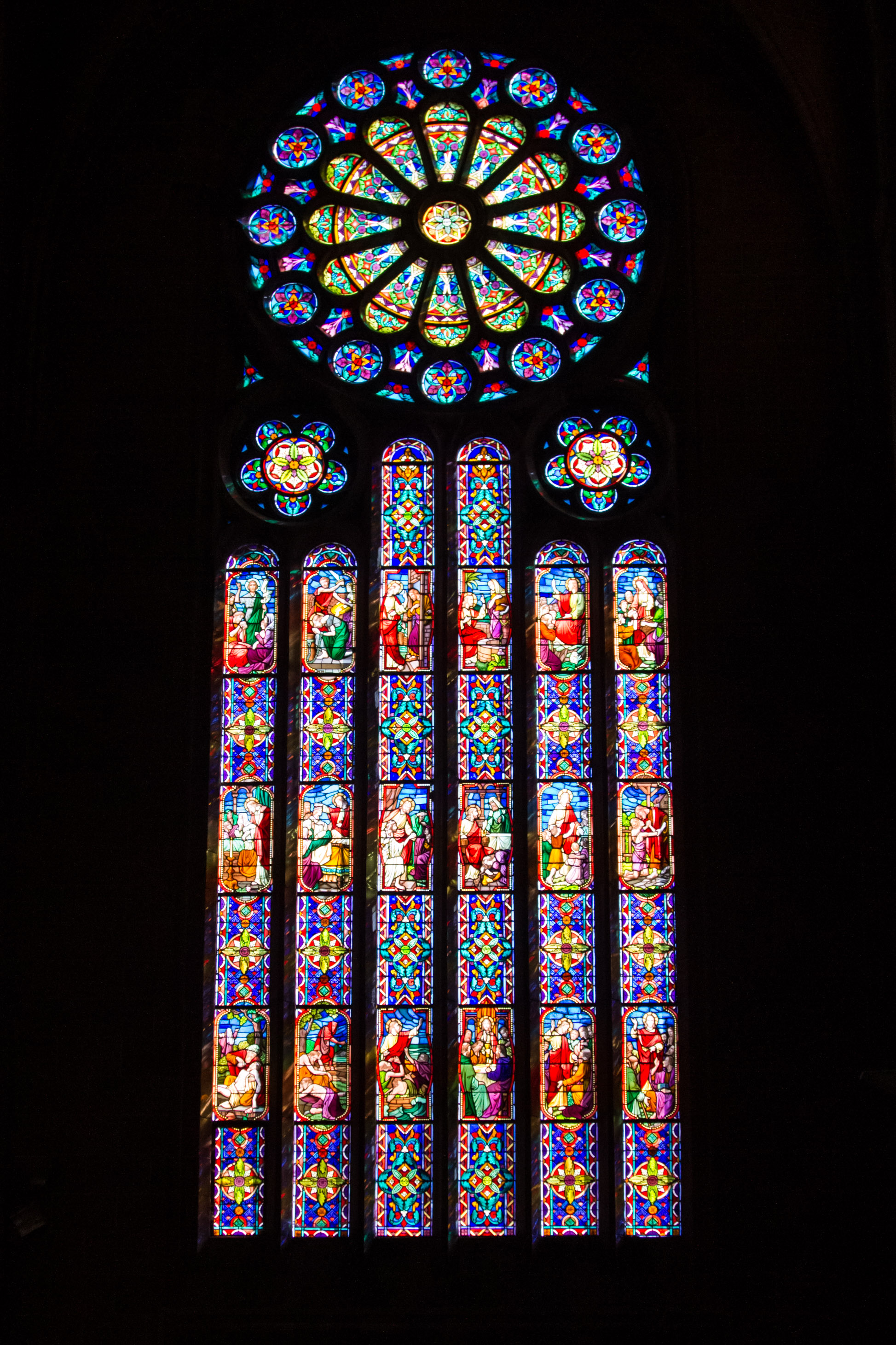 Décoration raffinée et beaucoup de couleurs dans les images des fenêtres. Ouvert à ceux qui s'abritent d'un terrible orage et peuvent en profiter de manière inattendue.