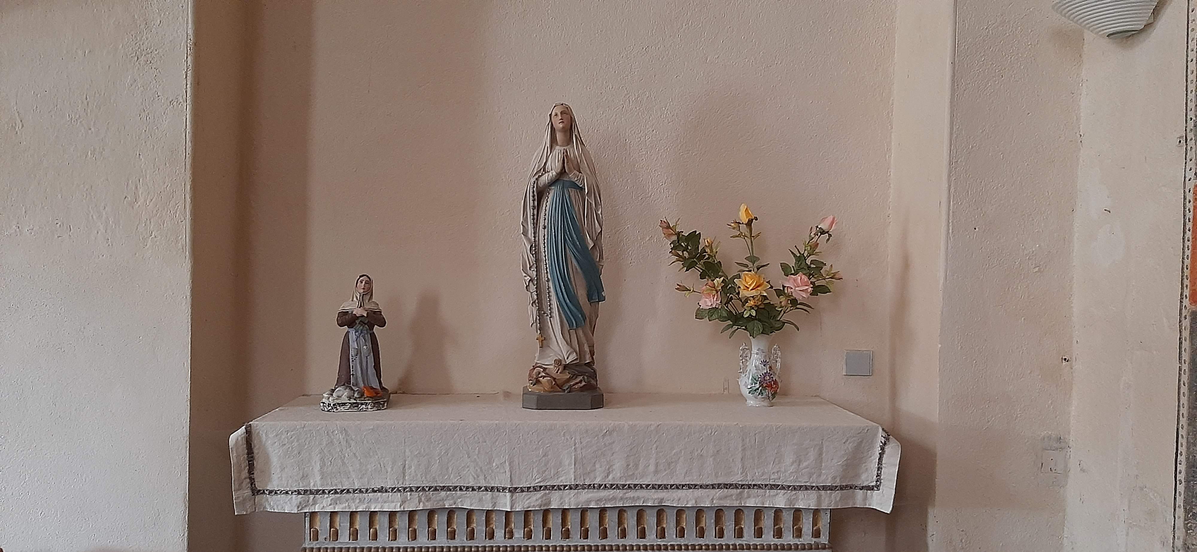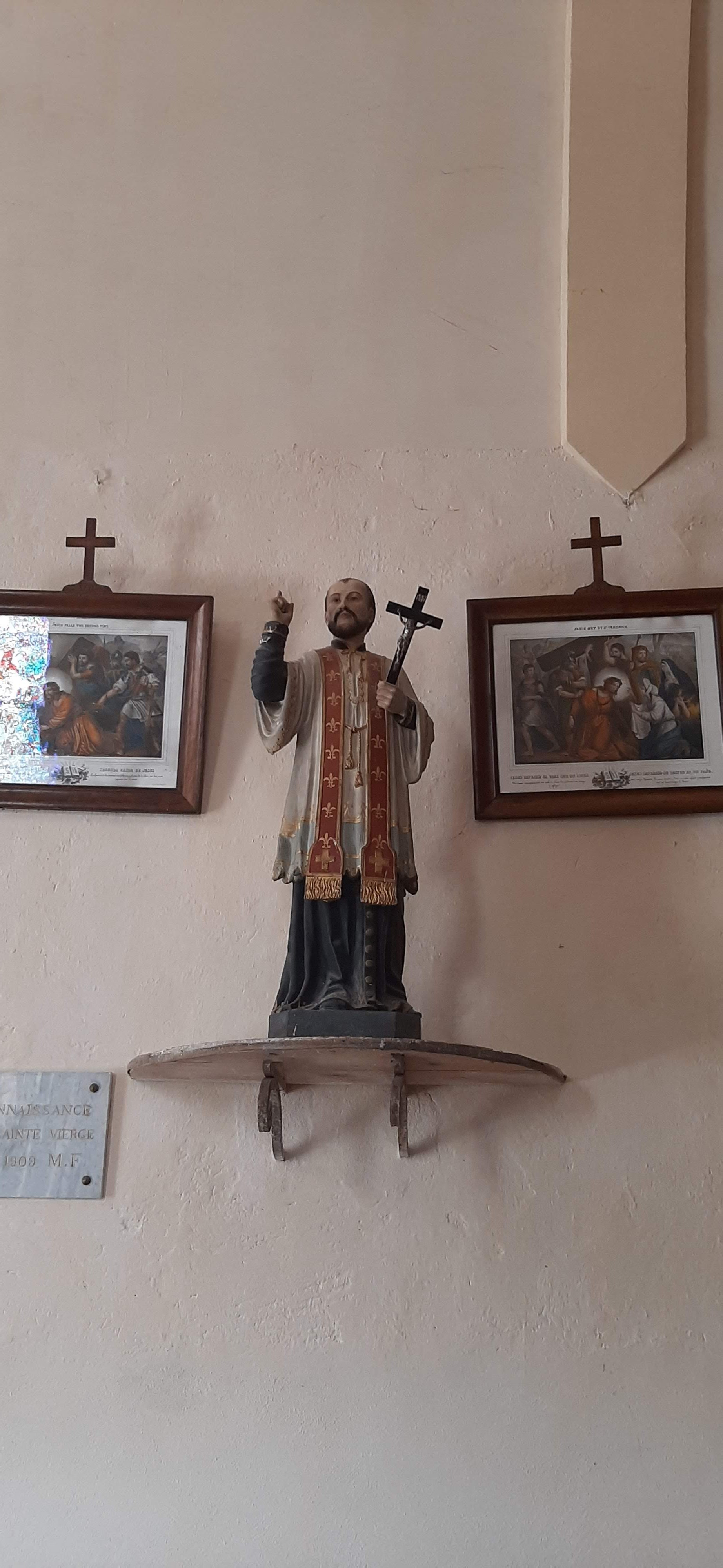 Nous avons eu la chance d'y être le vendredi quand la petite mairie est ouverte et ils gardent la clé de cette église moyenâgeuse. Chapelle de Saint-Loup. A l'intérieur il y a des peintures du toit et collonnes bien à la manière du moyen âge. Y compris le rat noir percé d'une épée évoquant la lutte contre la peste noire. Il n'y a que trois églises qui possèdent ce dessin dramatique en haut de sa coupole.