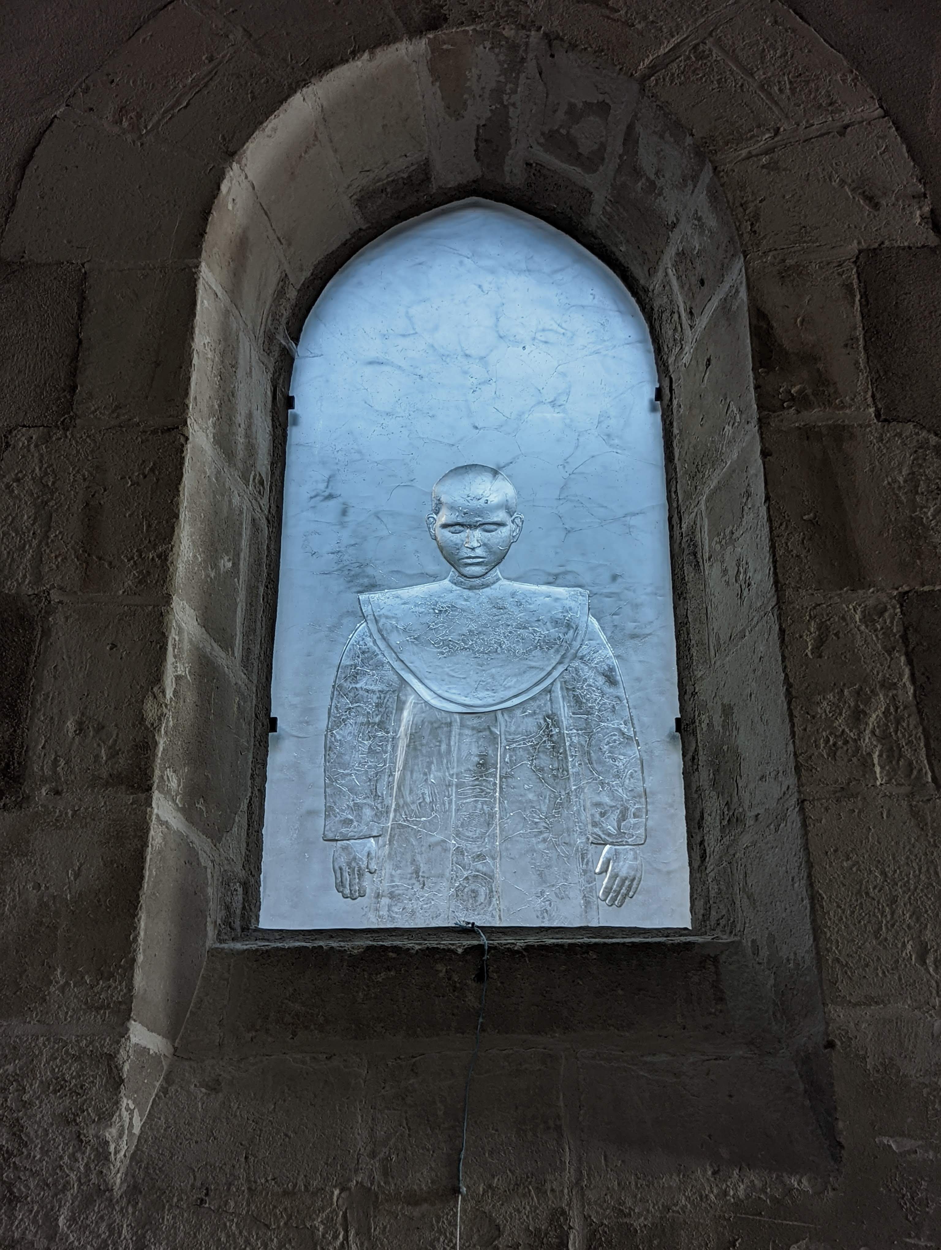 Meilleure ambiance avec les vitraux de l'artiste Pascal Convert, des enfants sculptés dans le verre semblent vous regarder quand vous vous déplacez. Inquiétant !