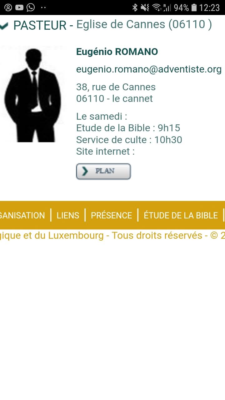 Lorsque vous regardez sur le site SDA, l'adresse de votre église est à Cannes. J'ai également essayé d'appeler le numéro mais cela ne fonctionnait pas. Lorsque j'ai trouvé cette adresse à Antibes, c'était trop tard pour voyager. Je pense que vous devez modifier les détails sur le site Web. Je viens du Royaume-Uni