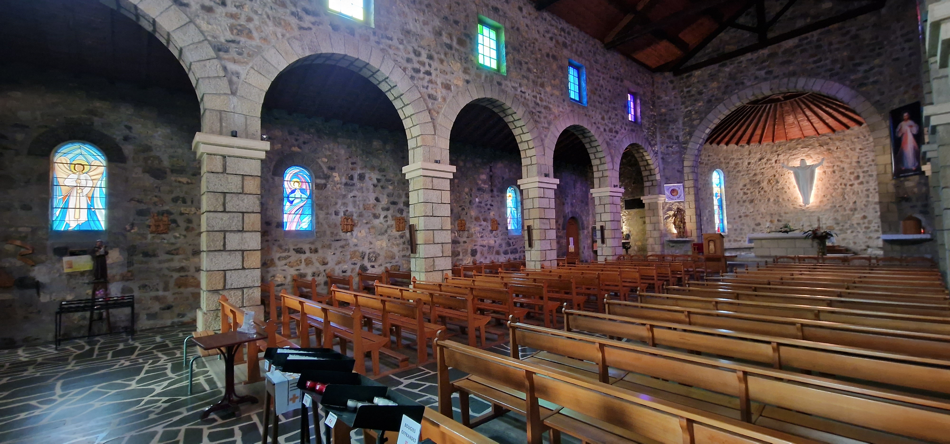 Très bel ensemble architectural avec de magnifiques vitraux , caractéristique de la construction des années 50 , le chœur est magnifique de simplicité et de lumière une vraie réussite à voir