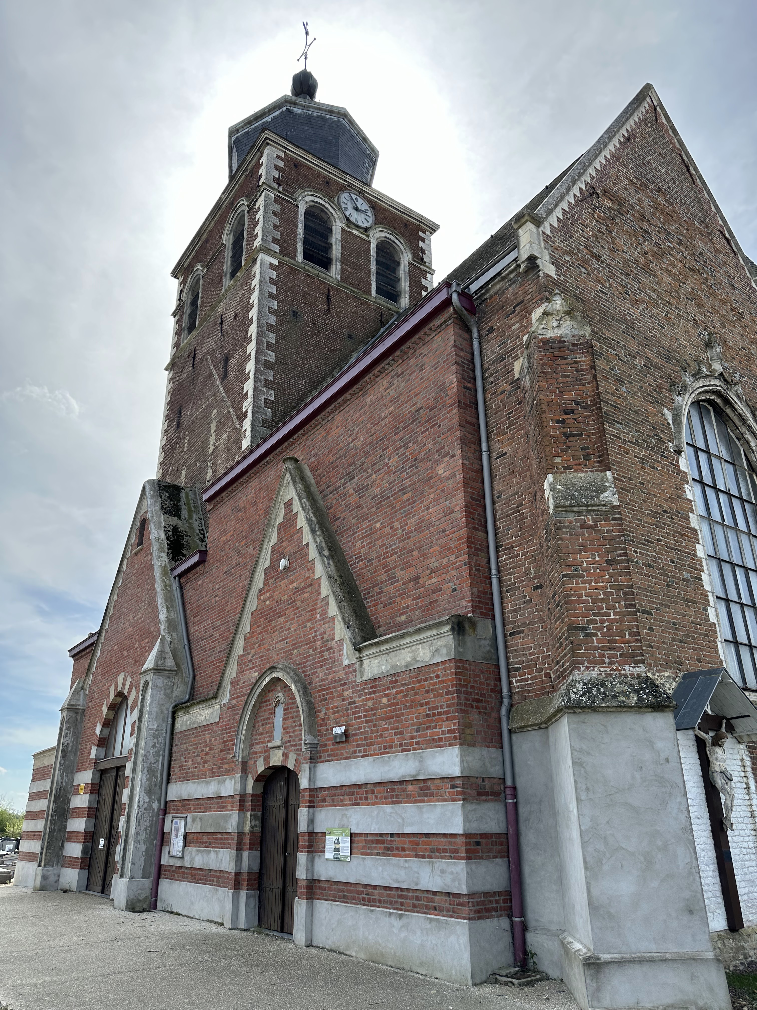 Une des églises de la paroisse Notre Dame des Tilleuls. Sa particularité : une église avec 2 nefs. Comme souvent elle est entourée du cimetière. Parking à quelques pas. Le presbytère/maison paroissiale est situé juste en face.