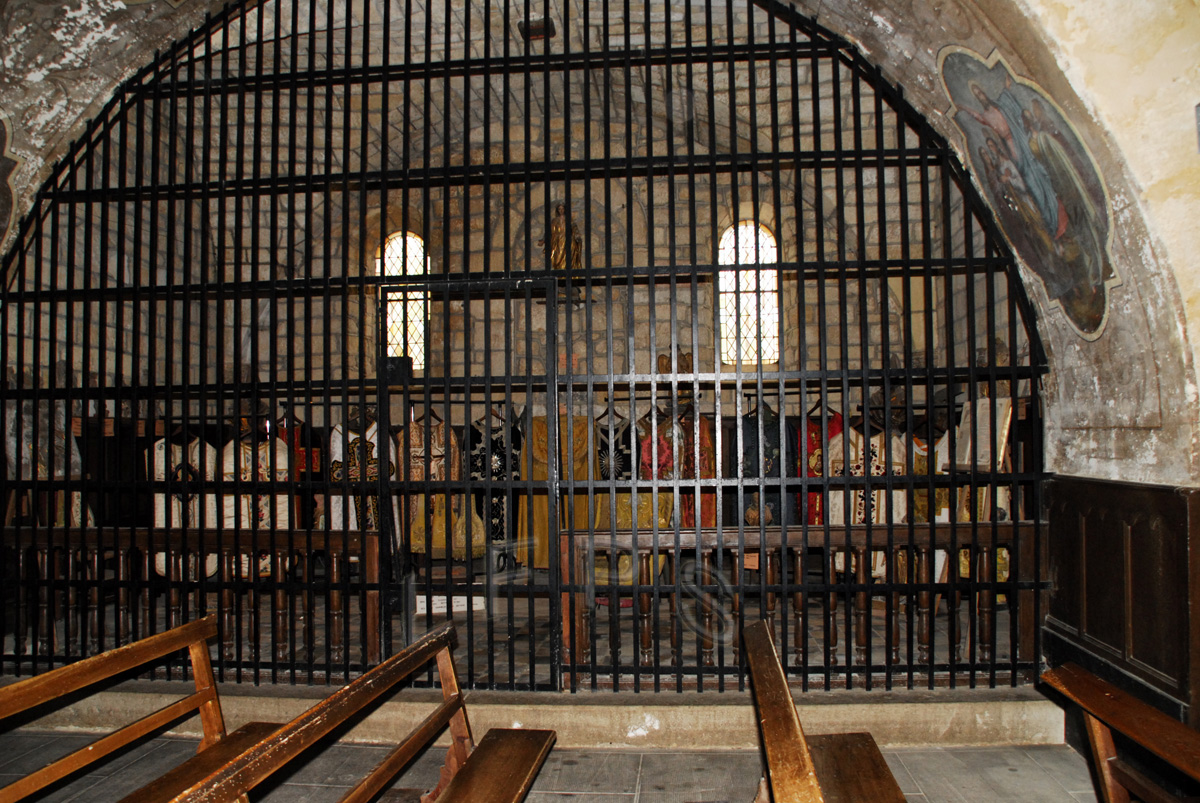 Très jolie église, avec de beaux panneaux et de belles peintures ainsi que des sculptures. De dehors sur la façade avant nous voyons le clocher. L'architecture de cette église continue à nous faire voyager dans le temps et s'intègre dans l'esprit du village médiéval.