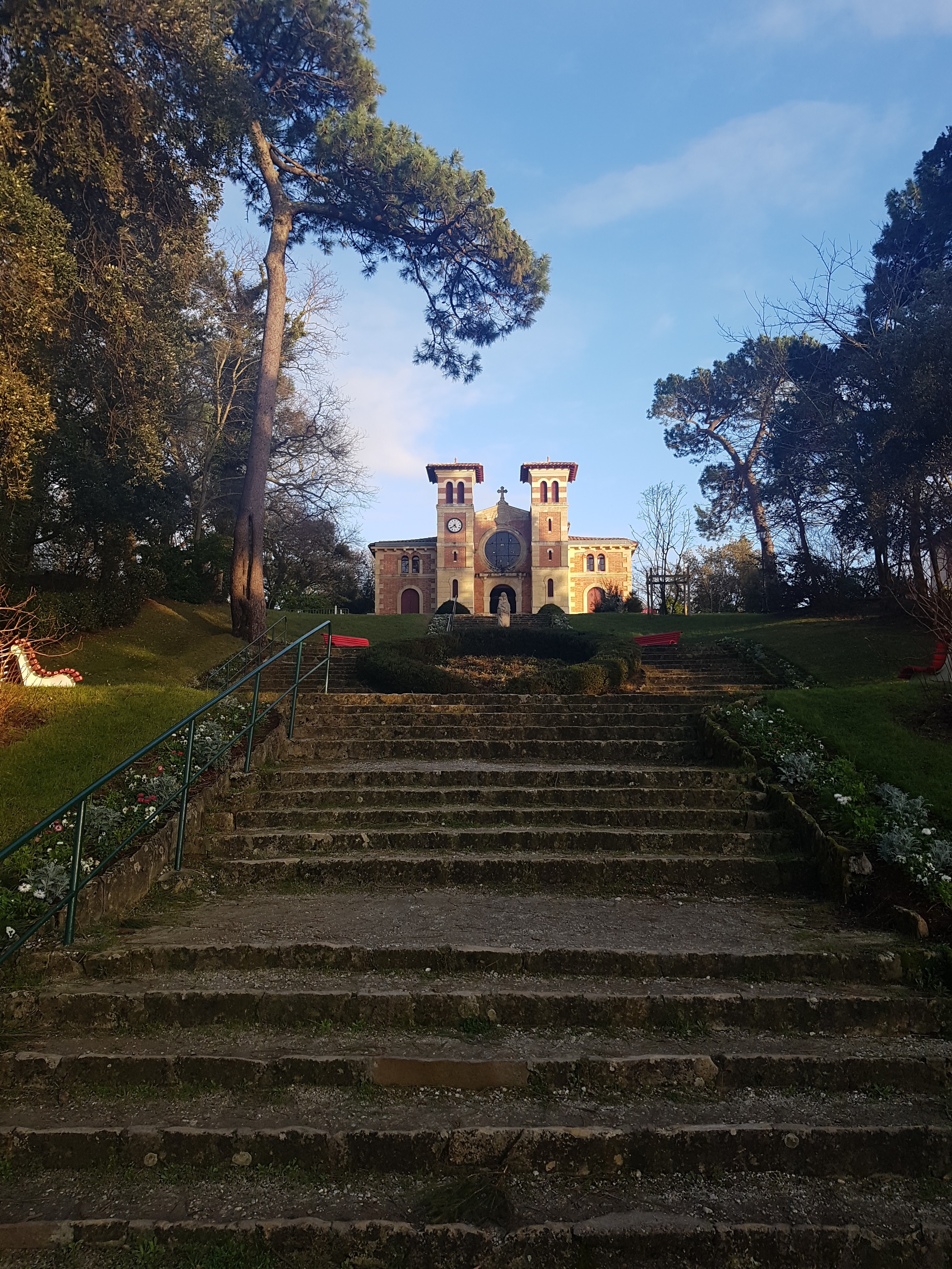 Curieux emplacement face au bassin d'Arca chon. Curieuse architecture de style byzantin qui étonne mais ne laisse pas indifférent. Arrivé devant l'entrée on ne regrette pas l'effort consenti pour gravir les marches.