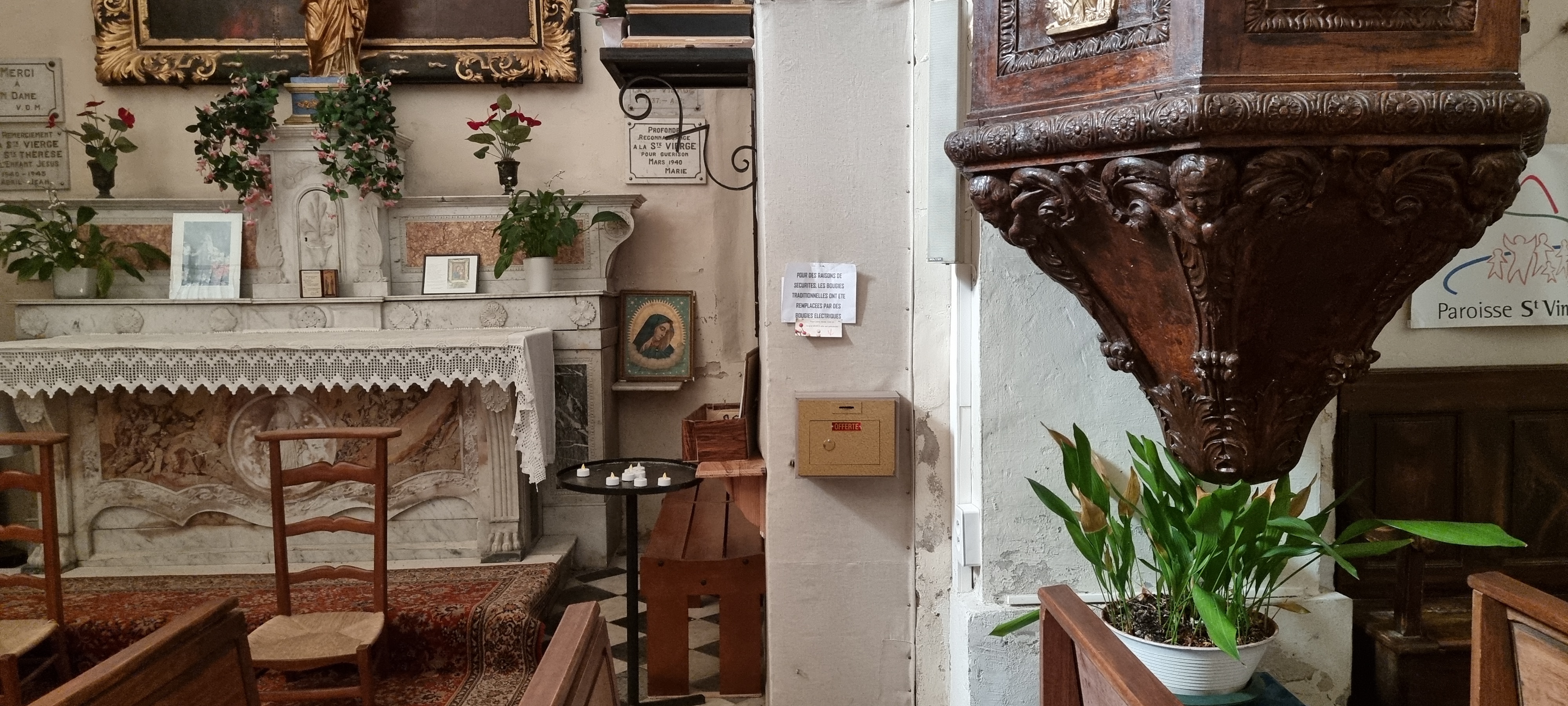 Les travaux de l’Eglise Saint Antoine ont débuté en 1717 pour s’achever en 1724. Elle fut construite au sommet du village, avec des pierres récupérées sur place, puis, après épuisement, avec celles provenant de la démolition de la chapelle Saint-Sauveur tombée en ruines. Les cloches de l’ancienne église ont également été transférées dans le nouveau clocher. Deux milles pins ont été abattus dans la forêt de Peygros pour permettre le financement de sa construction. Dès l’achèvement de la nouvelle Eglise, l’ancienne Eglise de Notre Dame fut interdite. La Communauté la convertie en Presbytère, au moyen d’un exhaussement de deux étages achevé en janvier 1733. L’Eglise de Notre Dame forme ainsi le rez de chaussée du dit Presbytère qui existe toujours sous forme de cave voutée communiquant avec l’impasse de la Cure. ( Source saintvincentdelerins point org )😉👌
