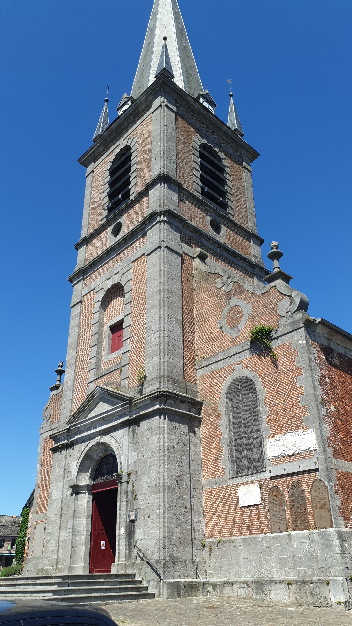 Église de style néoclassique construite en brique et en pierre (sous-bassement) au dix-huitième siècle. A l’intérieur de l’édifice, un beau buffet d’orgue et un maître autel du dix-huitième. Malheureusement fermée lors de notre passage. (Traduction Google) Neoclassical church built of brick and stone (underbasement) in the eighteenth century. Inside the building, a beautiful organ buffet and an eighteenth-century high altar. Unfortunately closed during our visit.